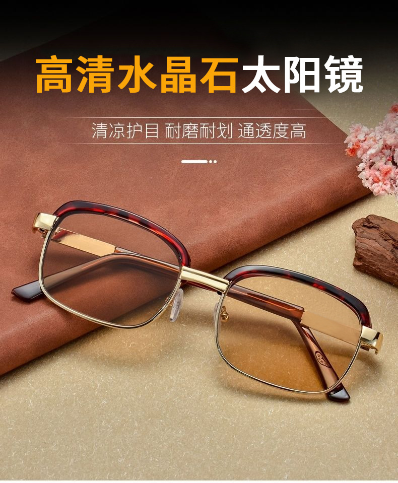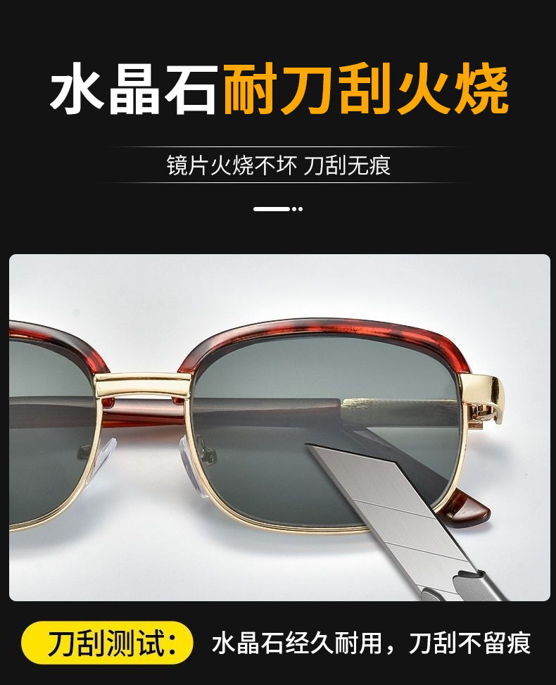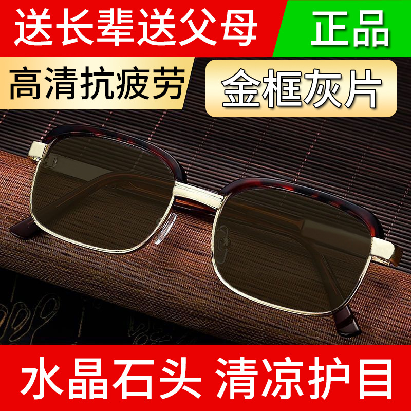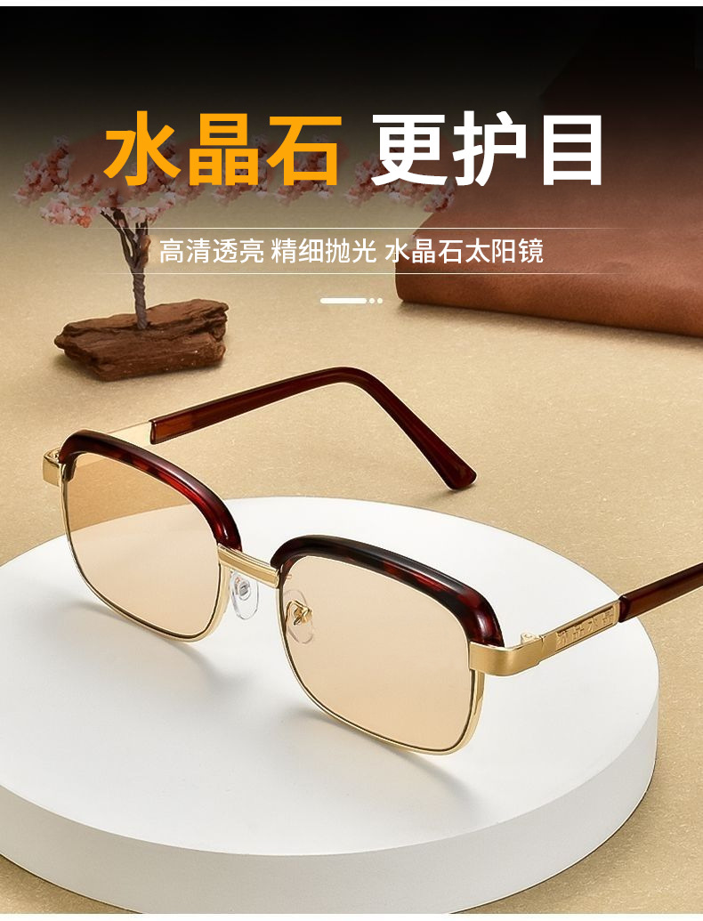 새로운 천연 크리스탈 스톤 쿨링 아이 프로텍션 선글라스 크리스탈 스톤 미러 눈썹 대형 프레임 HD 원석 안경 도매