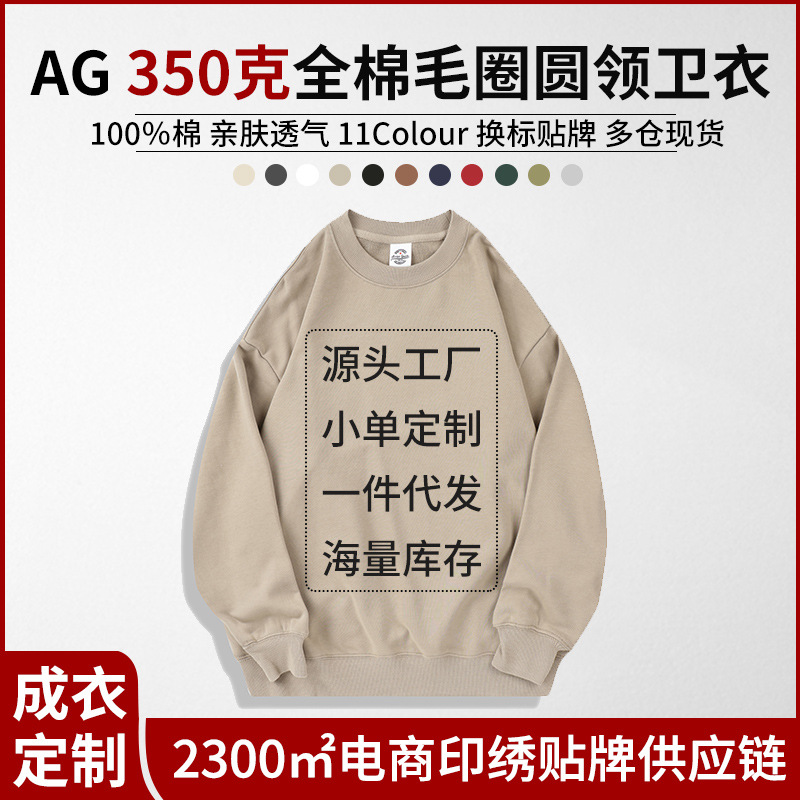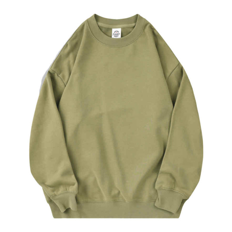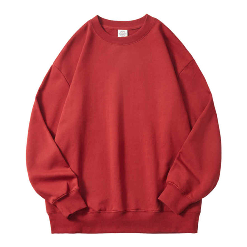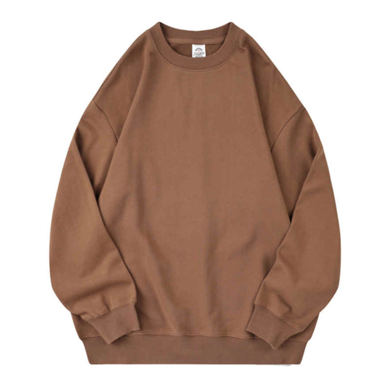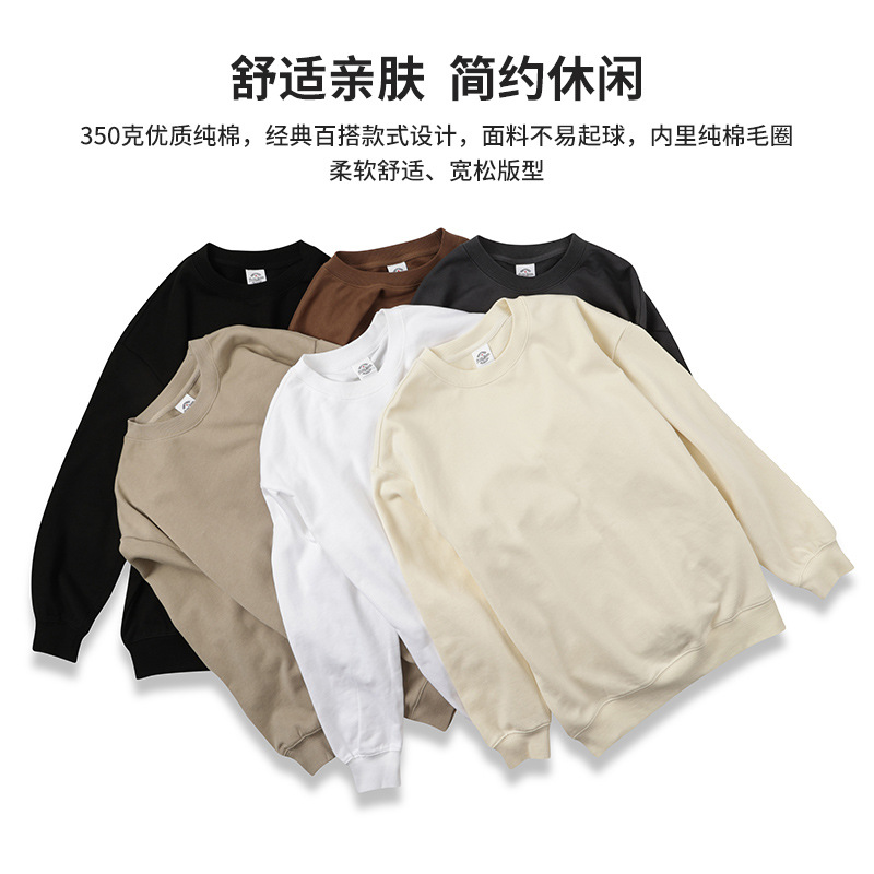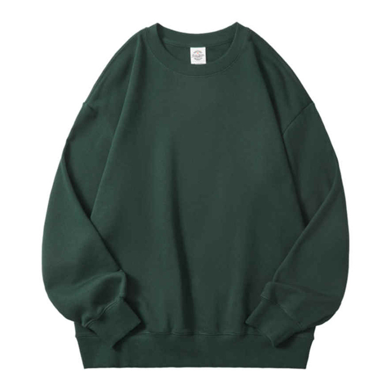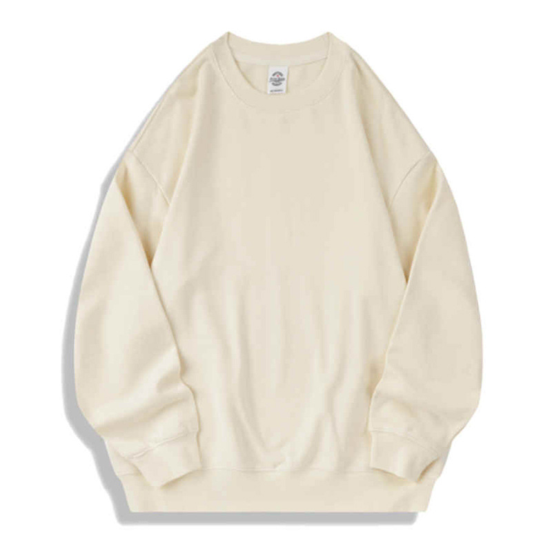 대외 무역 350g 대형 버전 코튼 테리 풀오버 라운드 넥 솔리드 컬러 루즈 숄더 트렌디 브랜드 기본 스웨트 셔츠 프린트