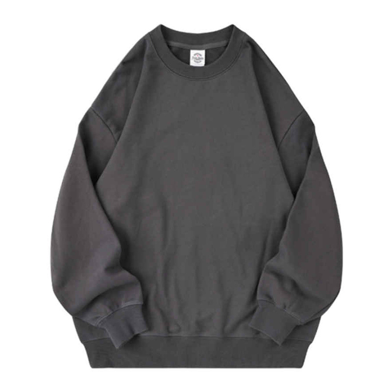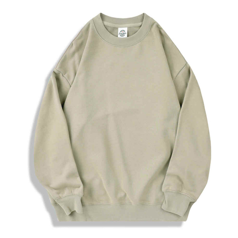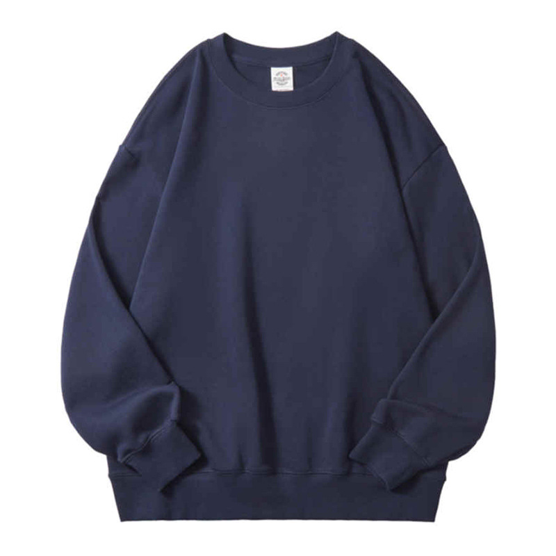 대외 무역 350g 대형 버전 코튼 테리 풀오버 라운드 넥 솔리드 컬러 루즈 숄더 트렌디 브랜드 기본 스웨트 셔츠 프린트스토어 가기
