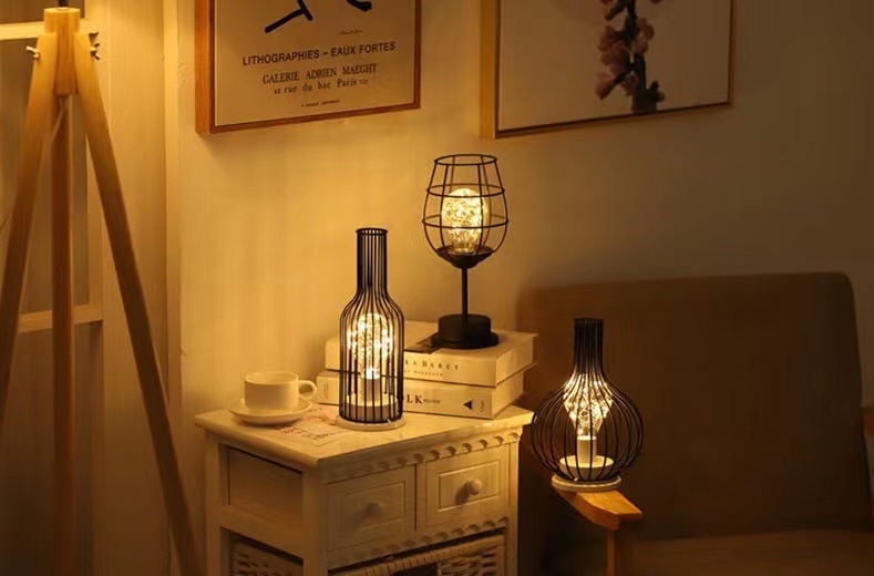 철 나이트 라이트 장식품 데스크탑 촛대 창조적 인 홈 디너 바 테이블 램프 야시장 장식 랜턴
