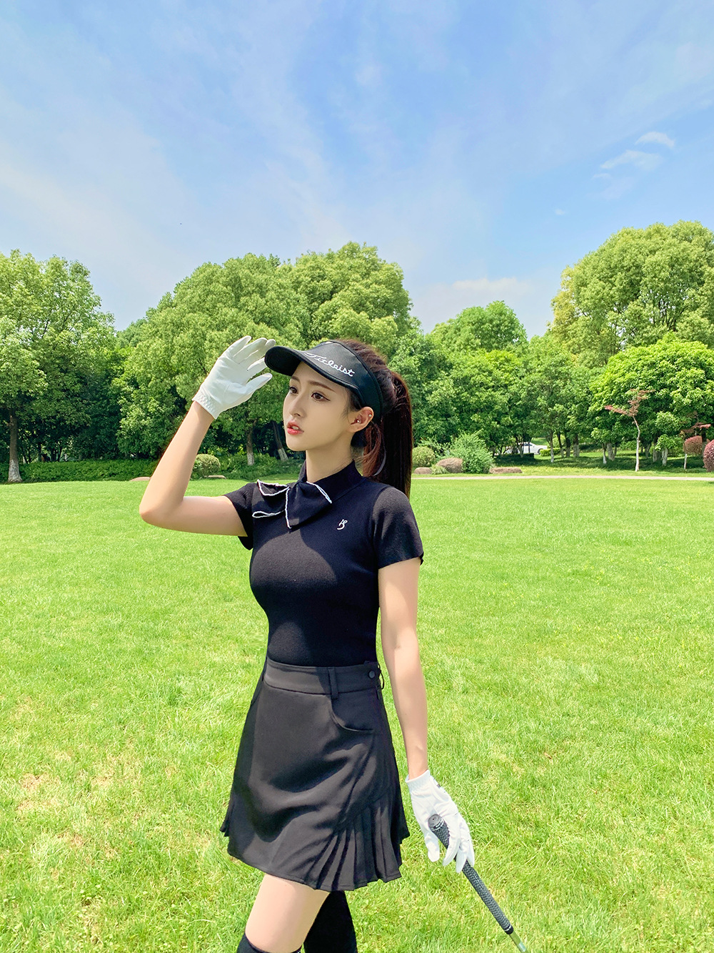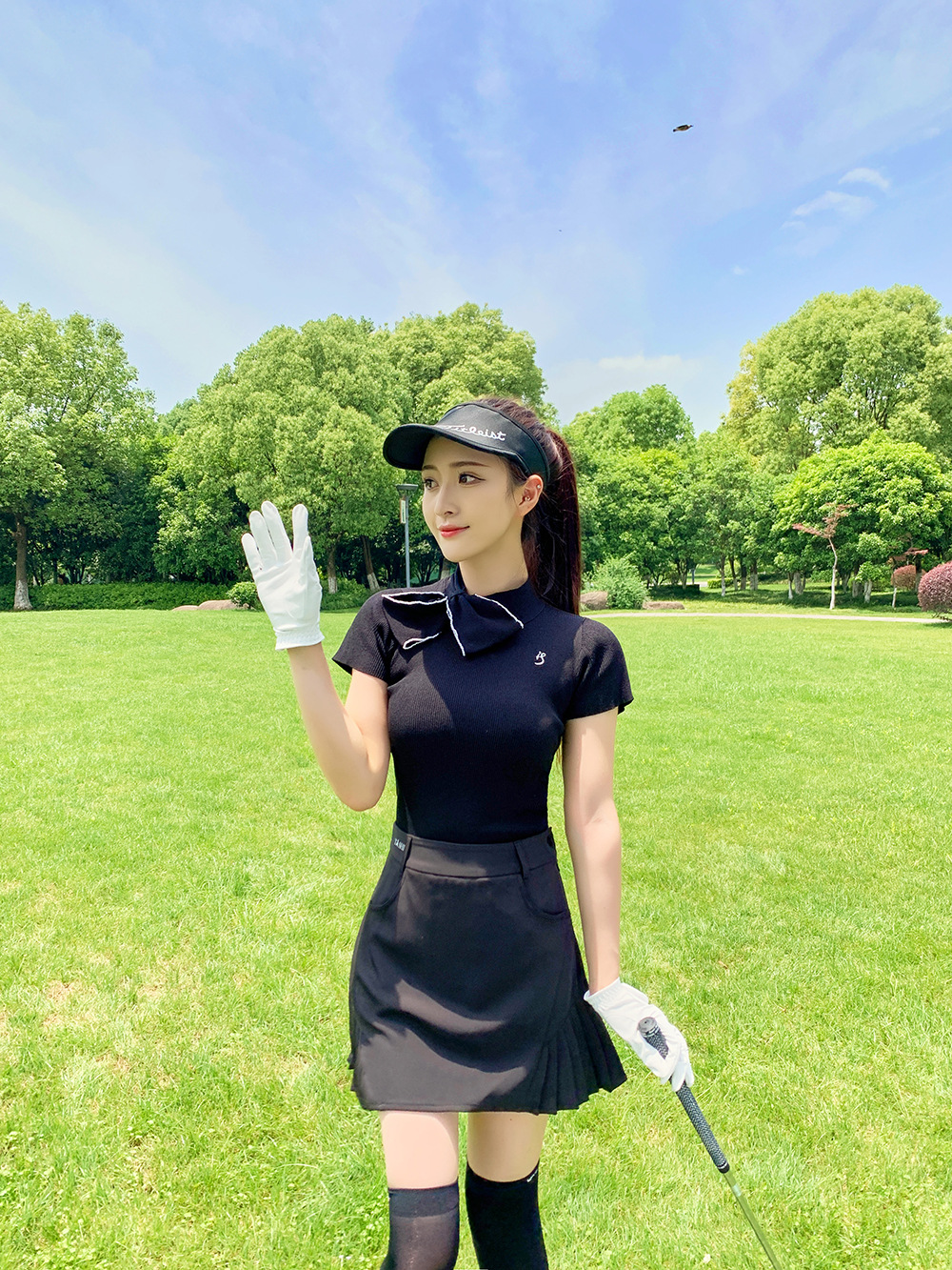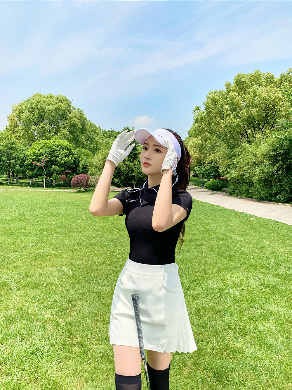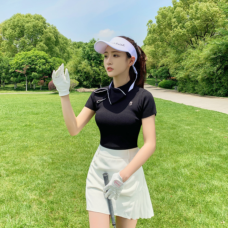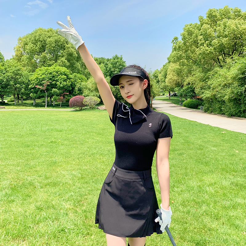 골프 의류 여성 한국식 반팔 탑 슬림 탄성 속건 스포츠 플리츠 짧은 스커트 골프 슈트스토어 가기