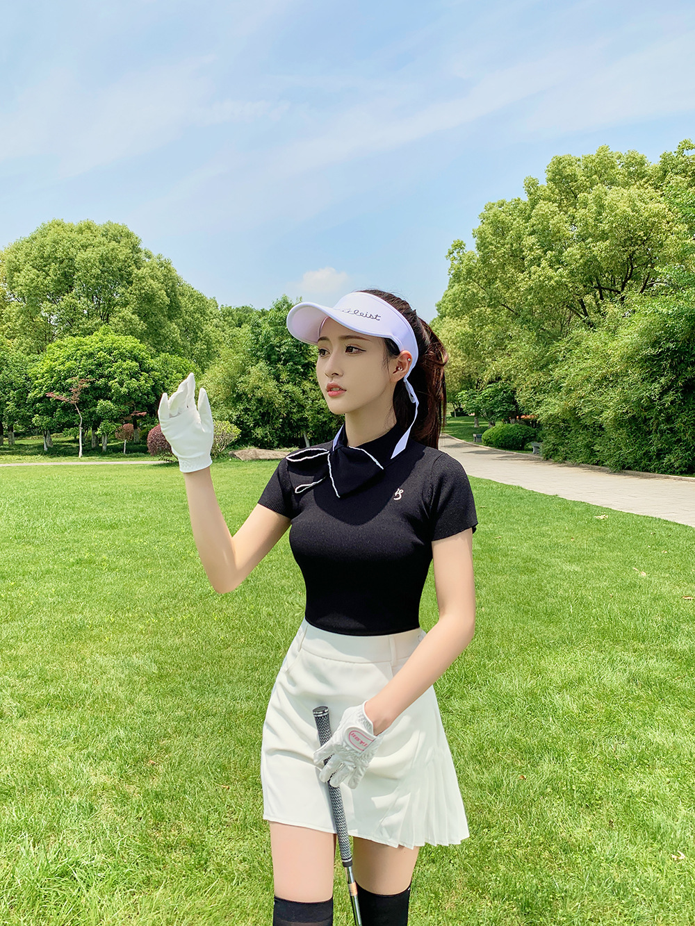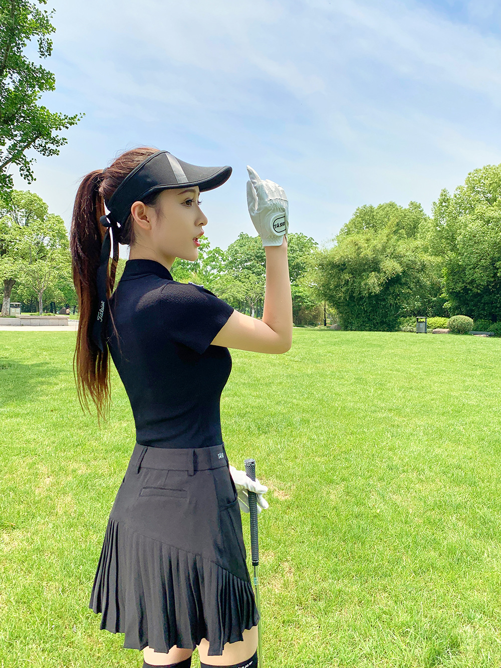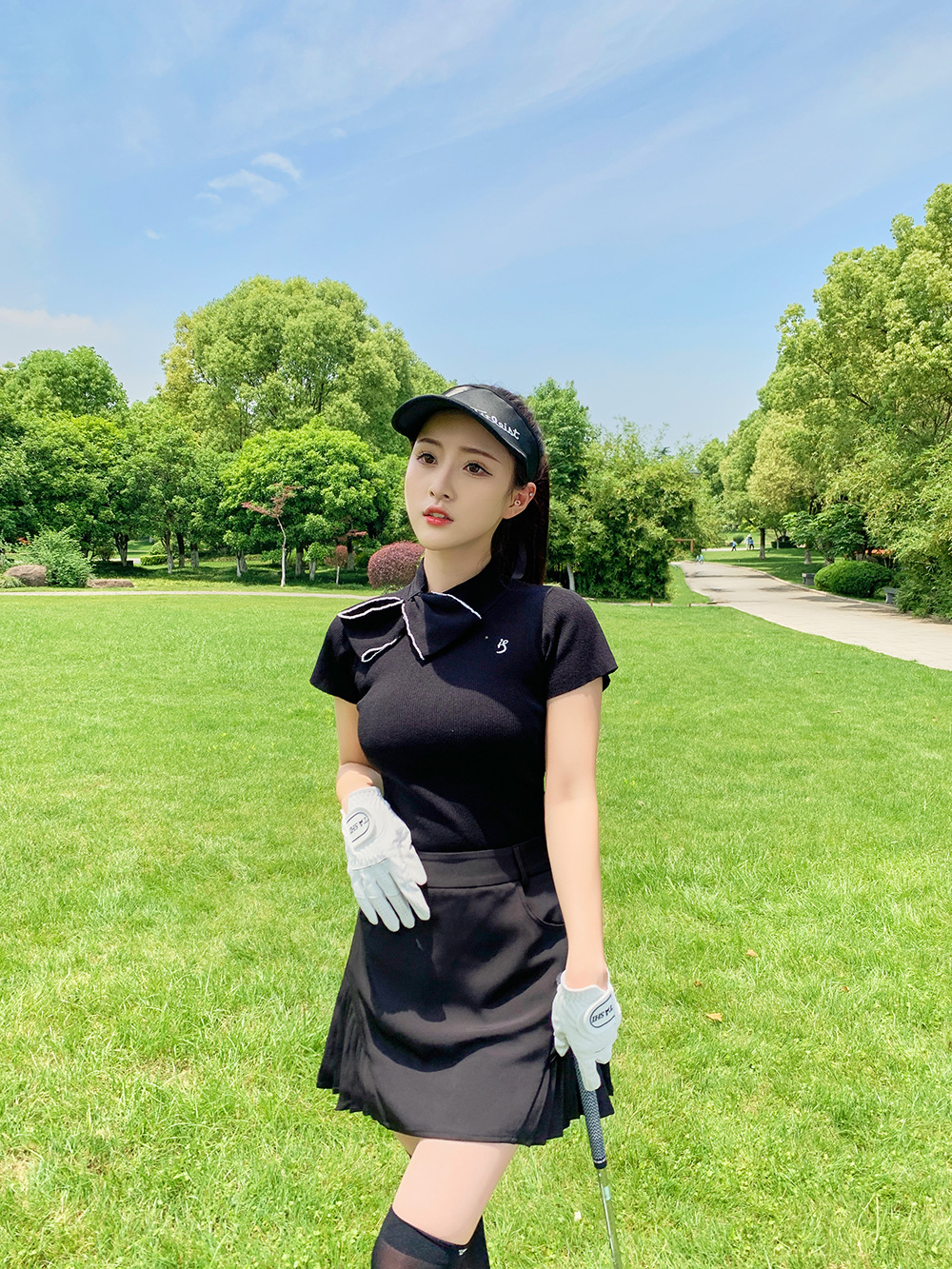 골프 의류 여성 한국식 반팔 탑 슬림 탄성 속건 스포츠 플리츠 짧은 스커트 골프 슈트스토어 가기