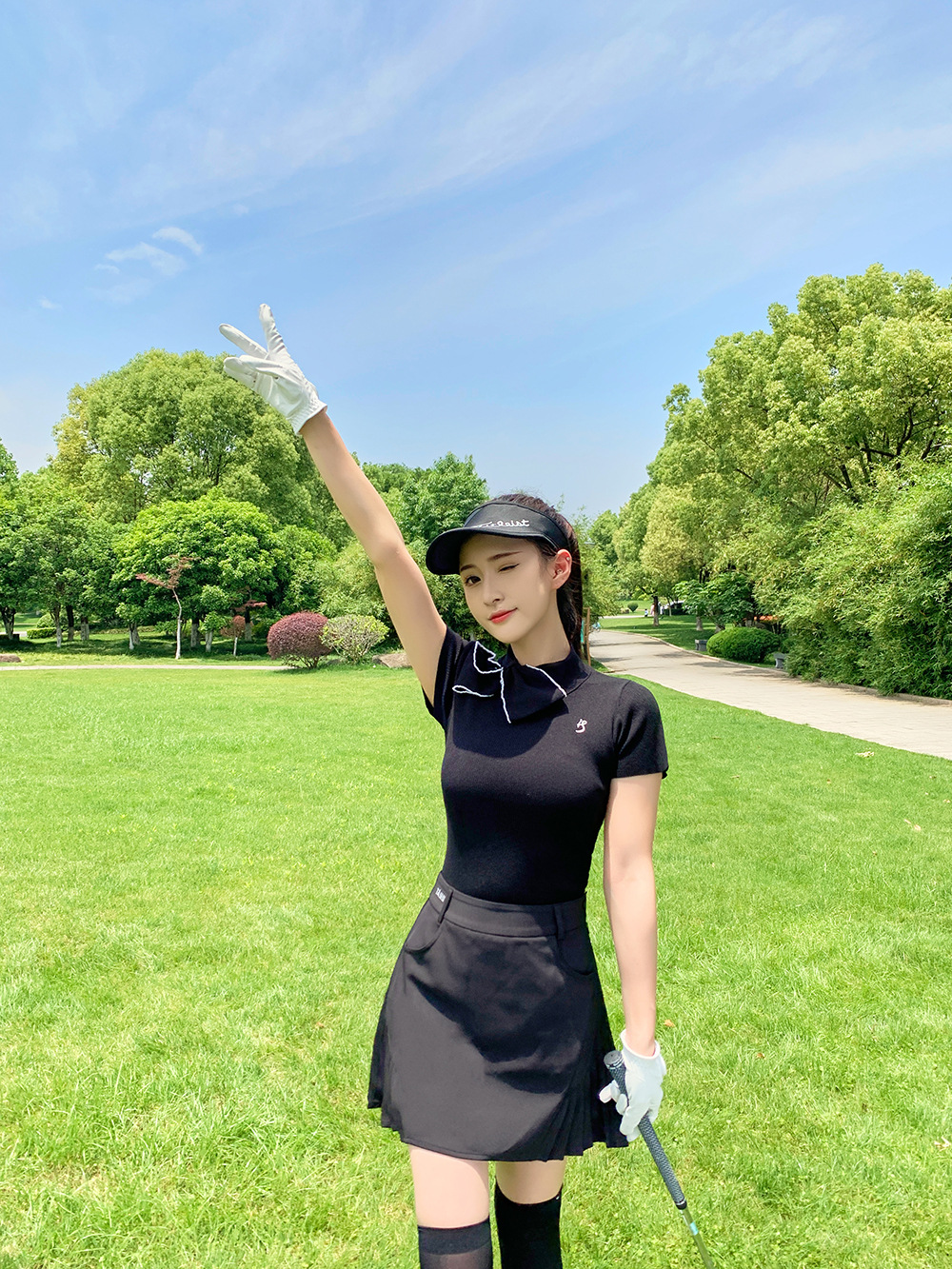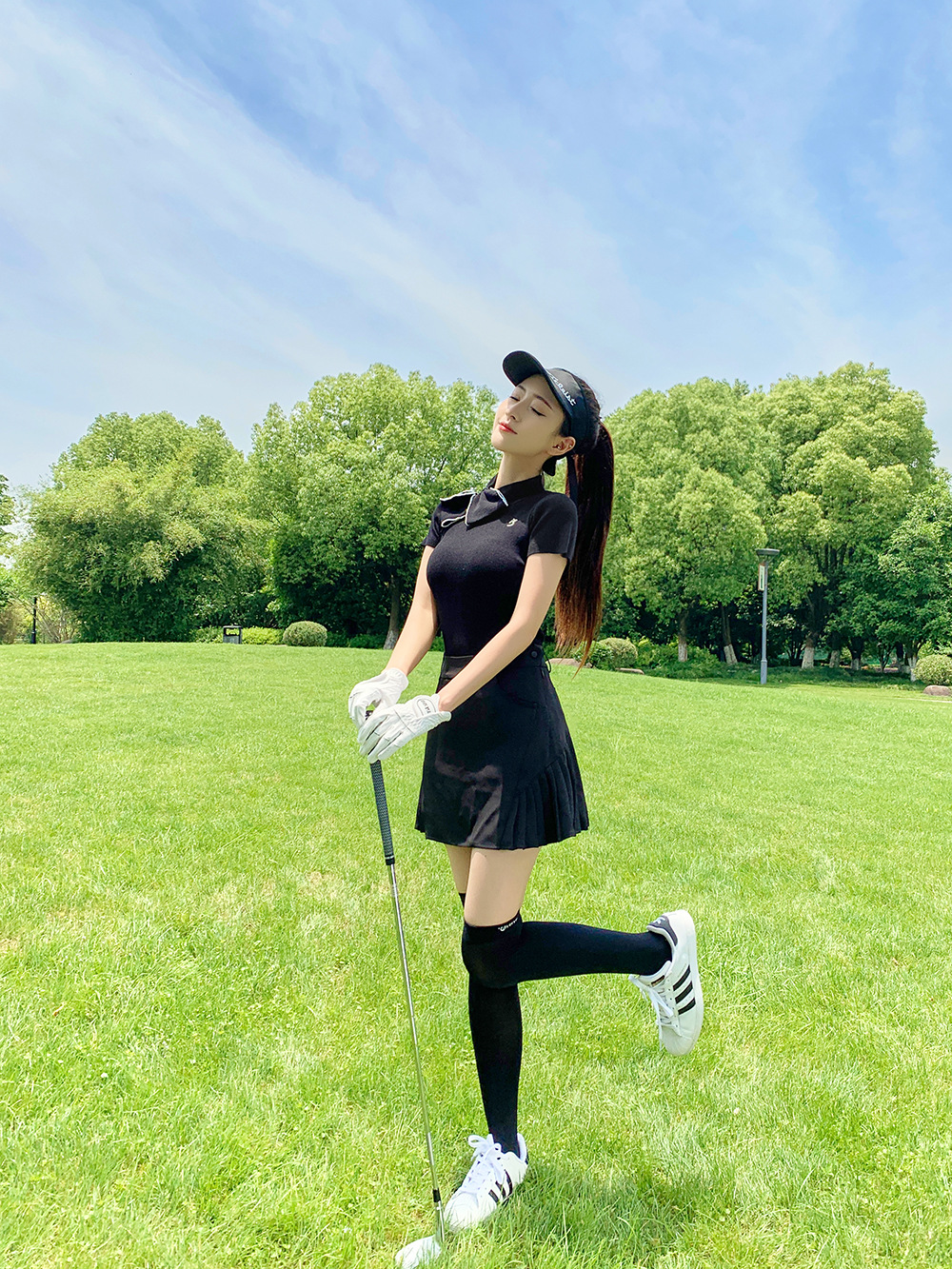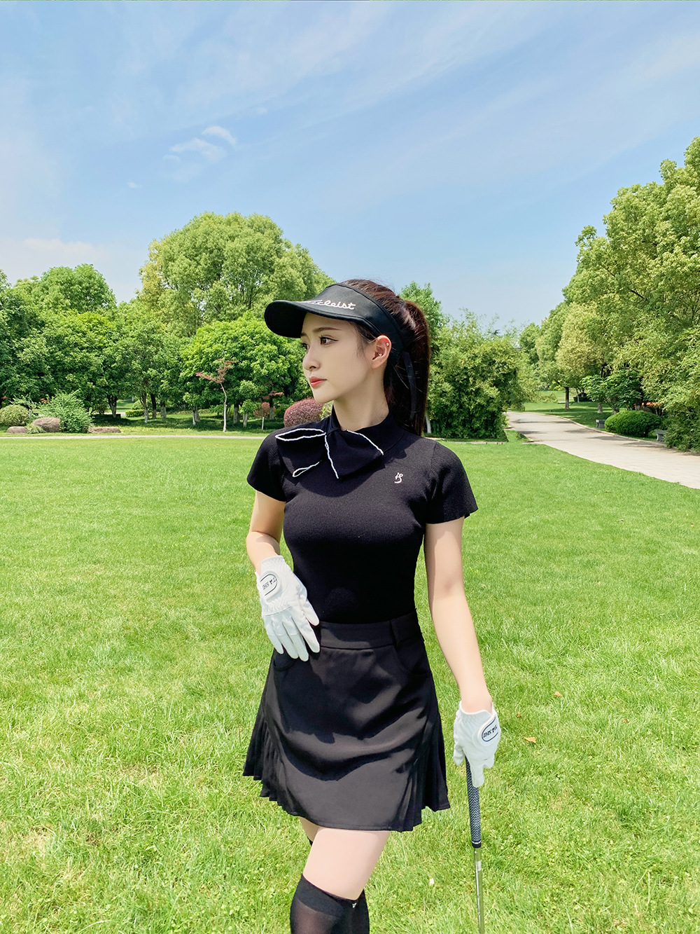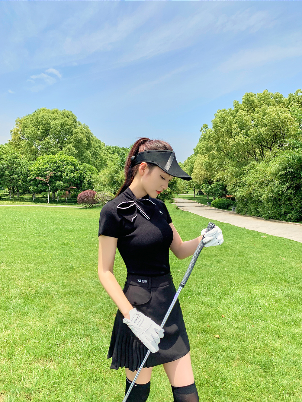 골프 의류 여성 한국식 반팔 탑 슬림 탄성 속건 스포츠 플리츠 짧은 스커트 골프 슈트스토어 가기