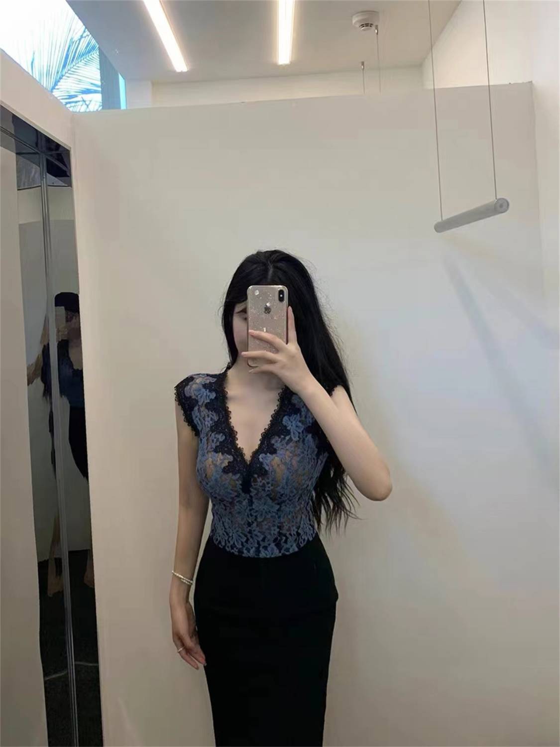 [국경 간 도매] 여성용 가짜 투피스 셔츠 여름 순수한 욕망 달콤한 핫 소녀 폴로 칼라 카디건 탑 베이스 레이어스토어 가기