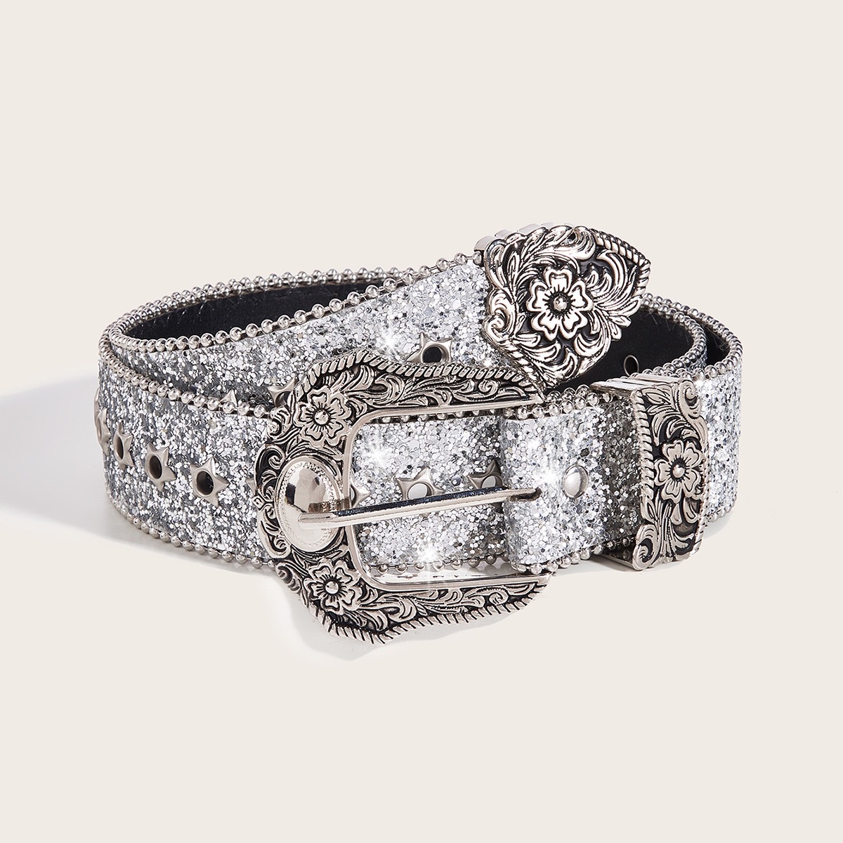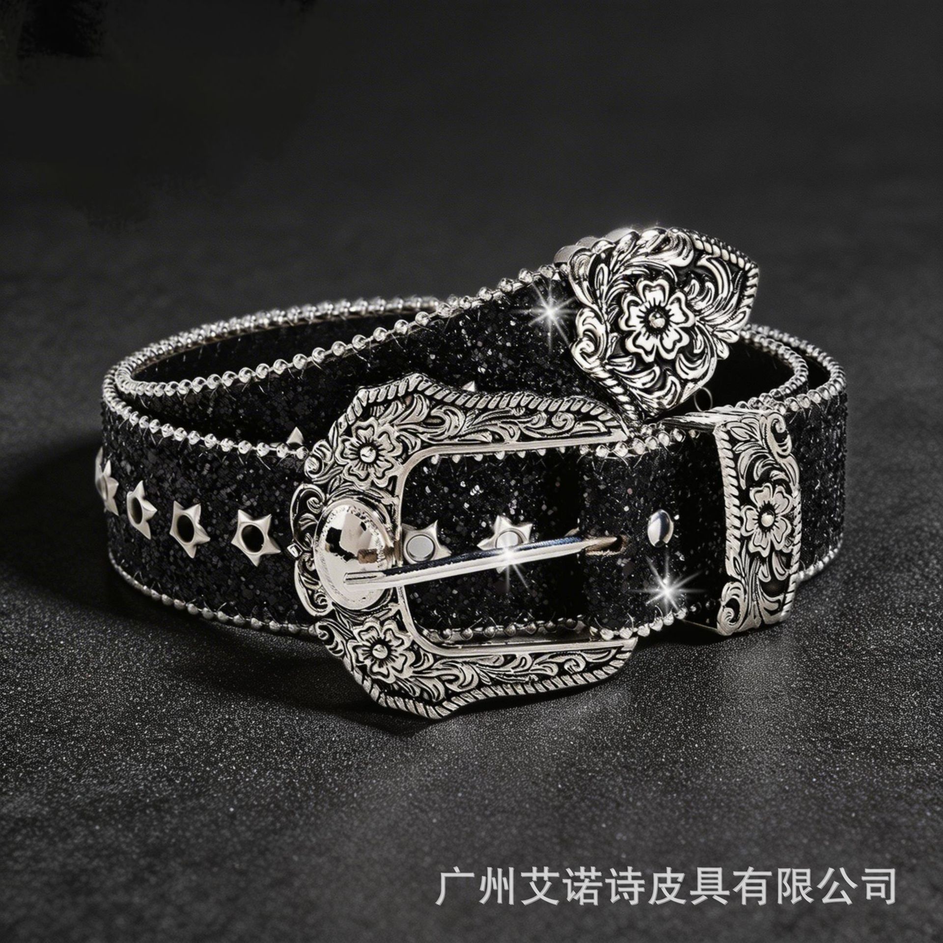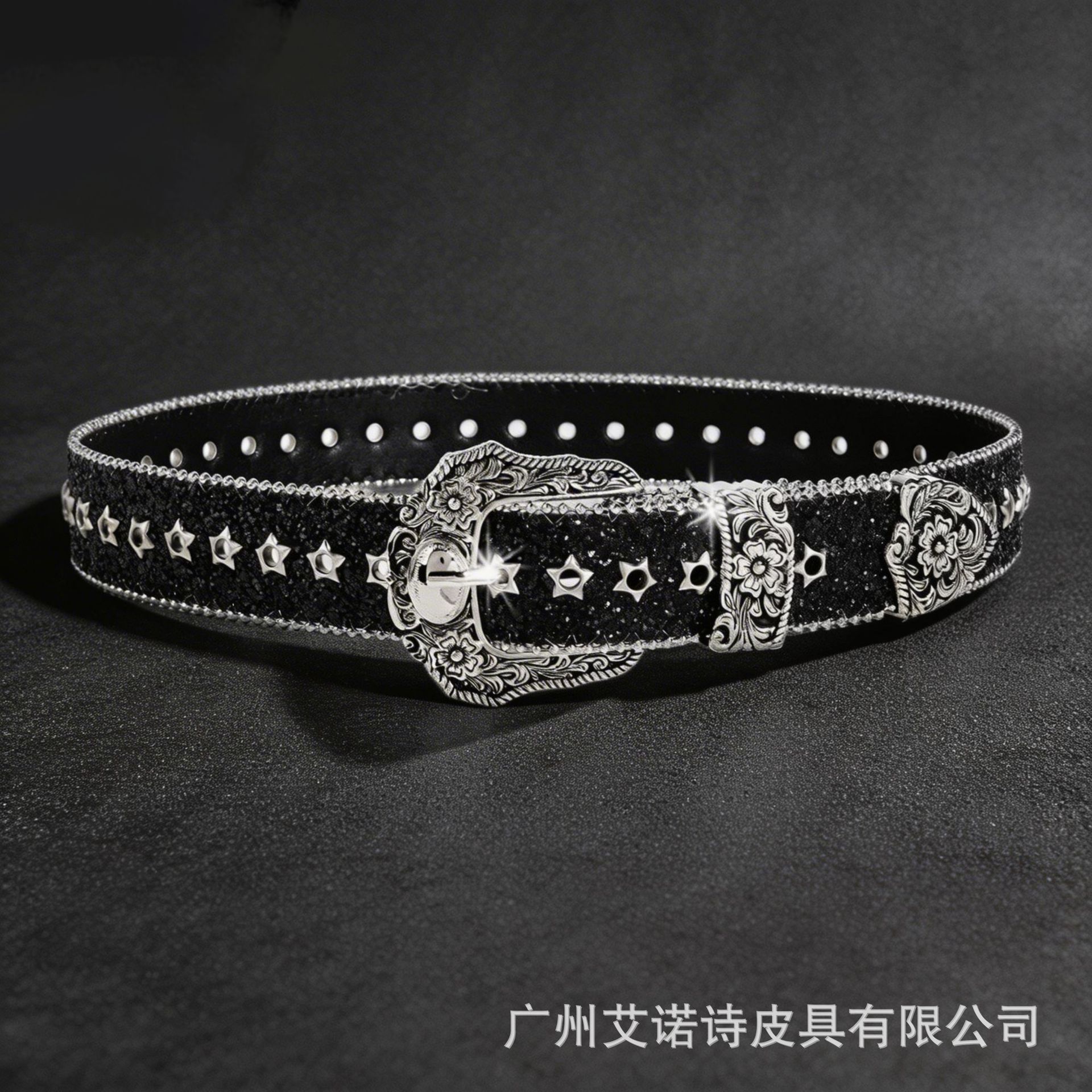 • 실버 잉곳 버클(스타 풀 버튼홀 자동차 가장자리 비즈) 블랙 파우더