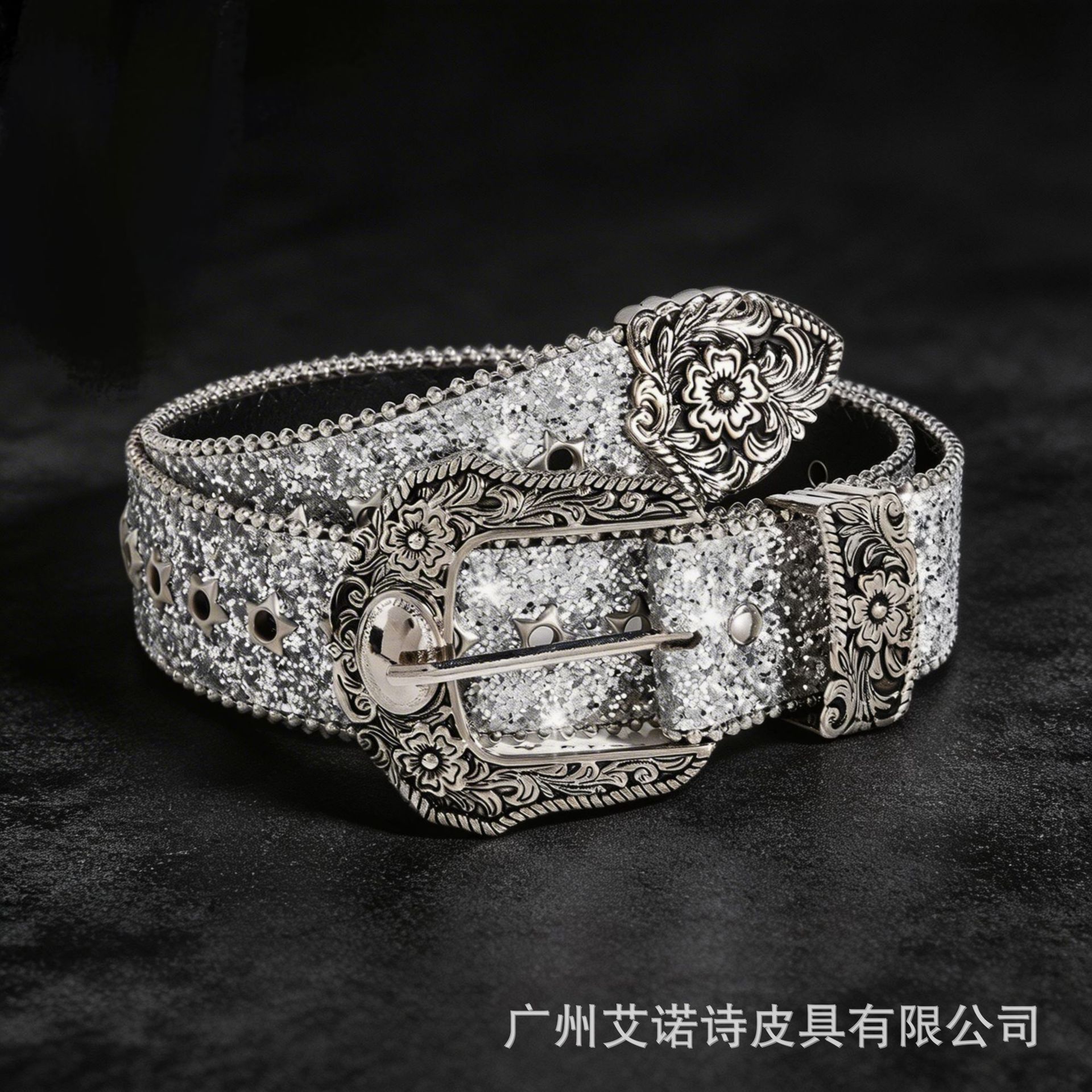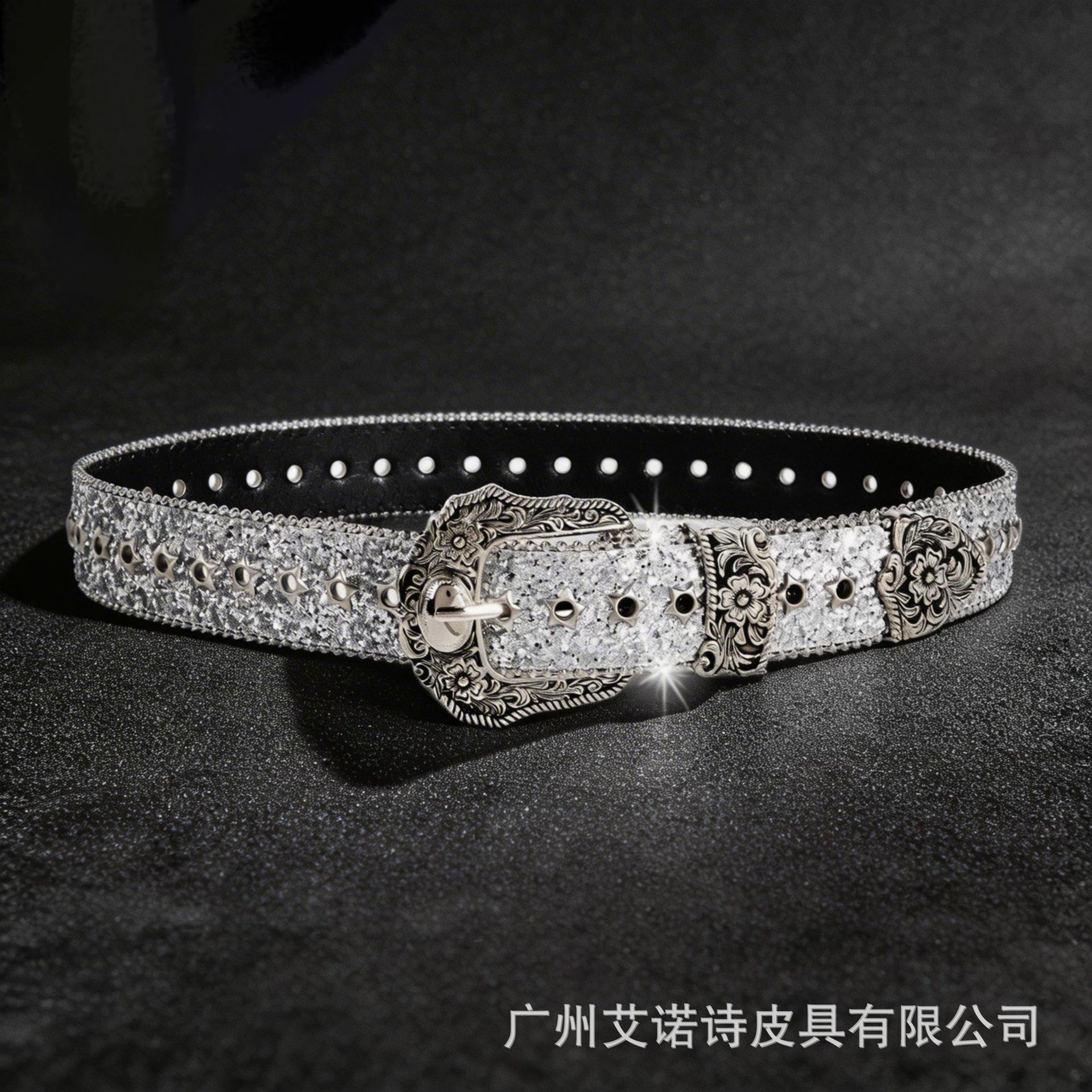 Ins Sense Wide Women's Rhinestone Jeans 독특한 스타일 유행 유럽과 미국의 벨트 벨트와 모든 매치 데님 디자인 바지스토어 가기
