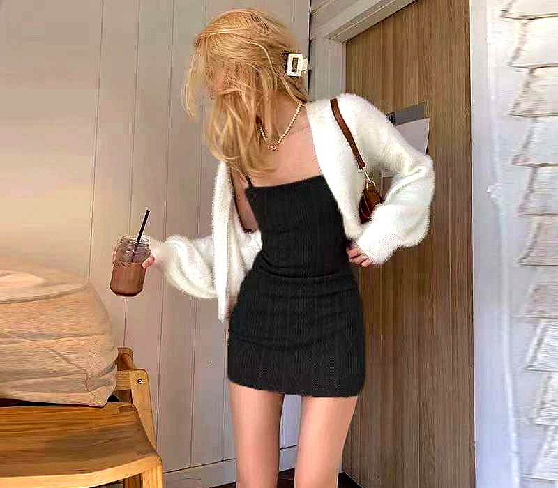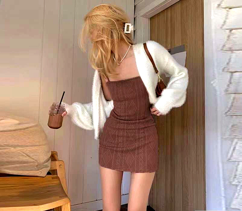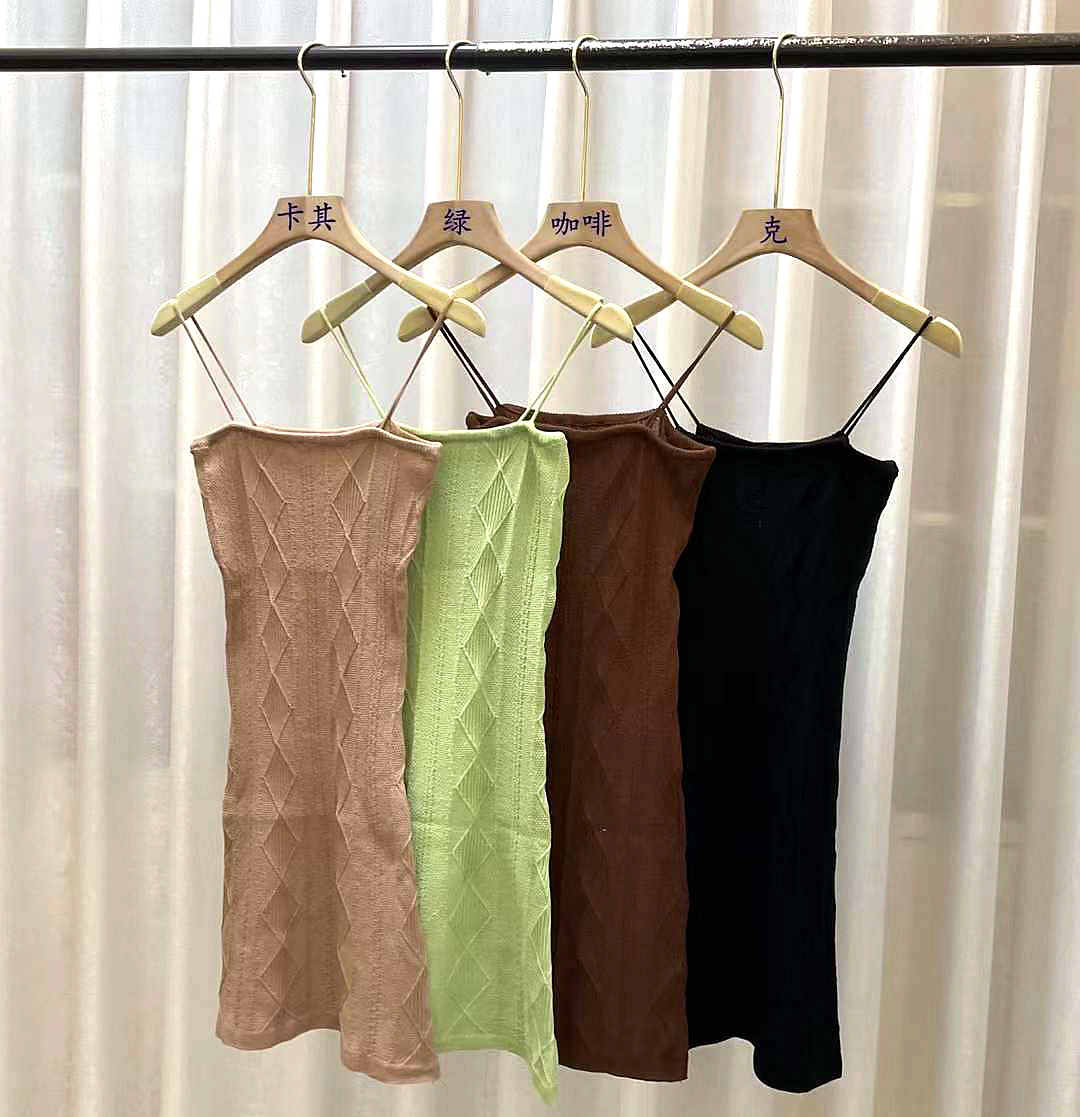 2025 여름 프렌치 아보카도 그린 레트로 다크 패턴 허리 힙 스커트 니트 서스펜더 스커트 여성 다용도 드레스