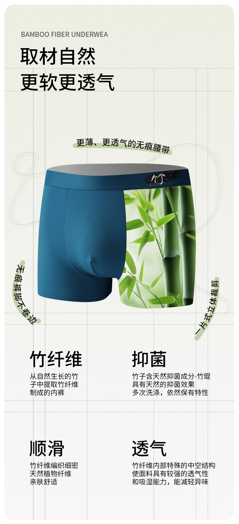 대나무 섬유 남성 속옷 10A 항균 가랑이 중간 허리 부드럽고 통기성이 뛰어난 Traceless Ice Silk Boxer Shorts 대형스토어 가기