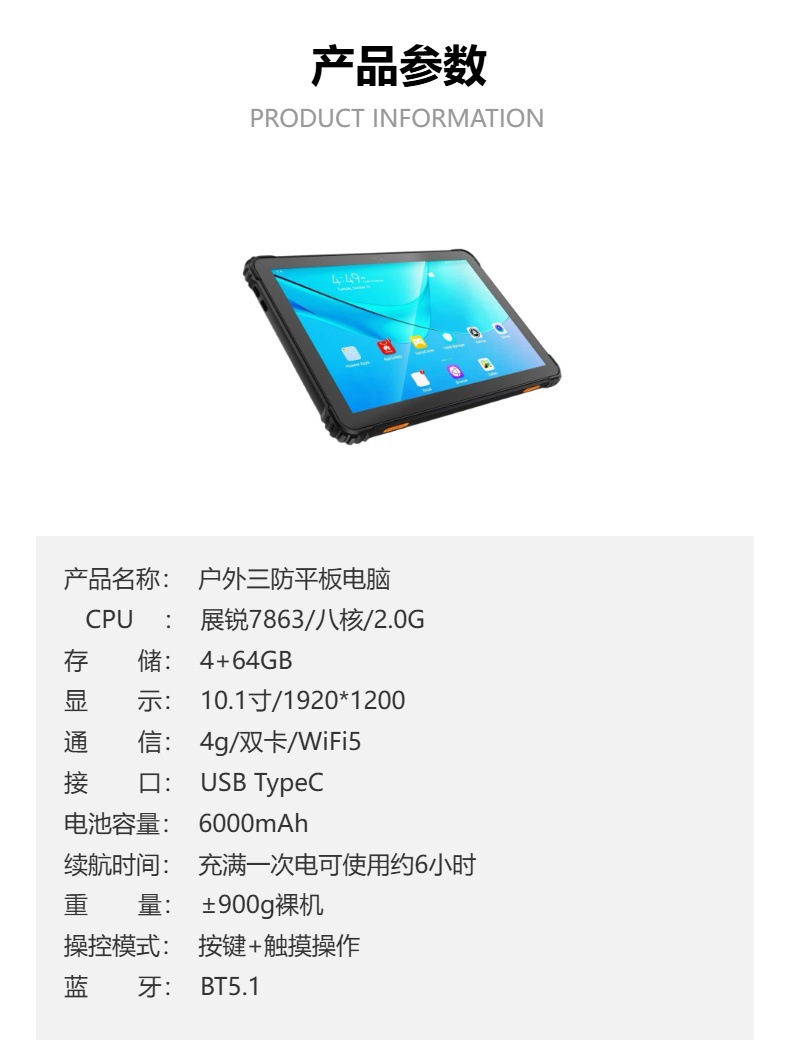 10 인치 재고 방수 및 방진 방지 야외 태블릿 GPS 포지셔닝 고화질 듀얼 카메라 8 코어 야외 태블릿
