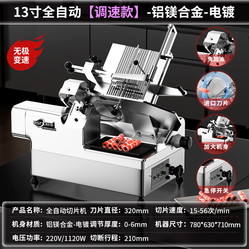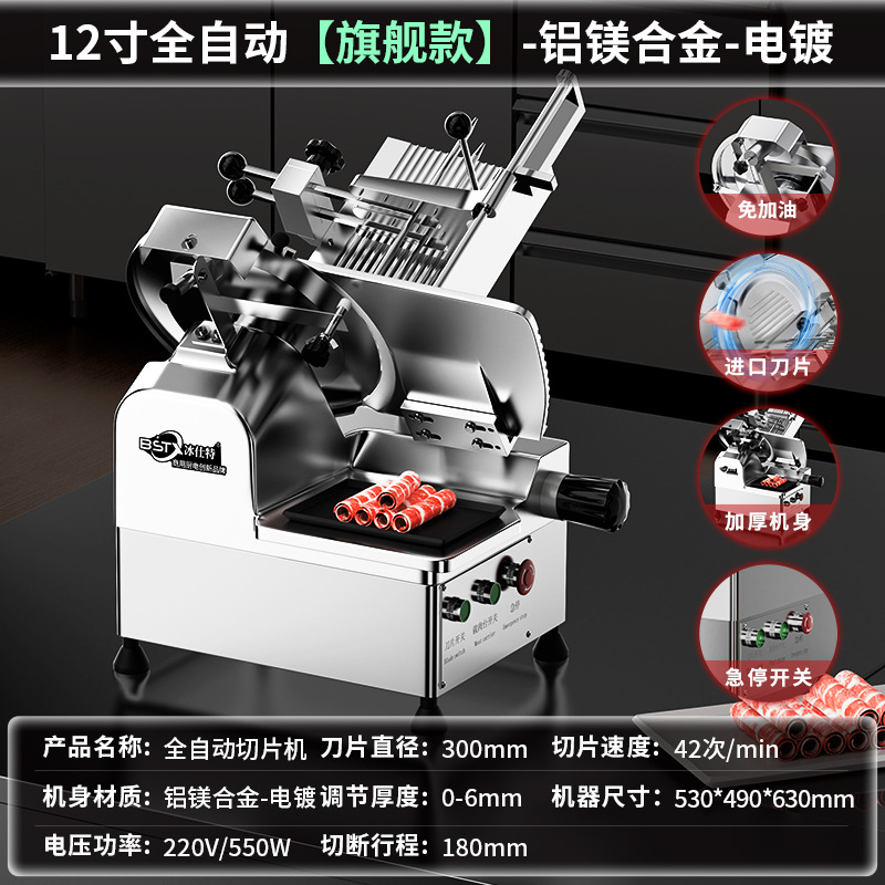 Bingshite 완전 자동 전기 슬라이서 상업용 전골 레스토랑 쇠고기와 양고기 롤 가정용 고기 슬라이서스토어 가기