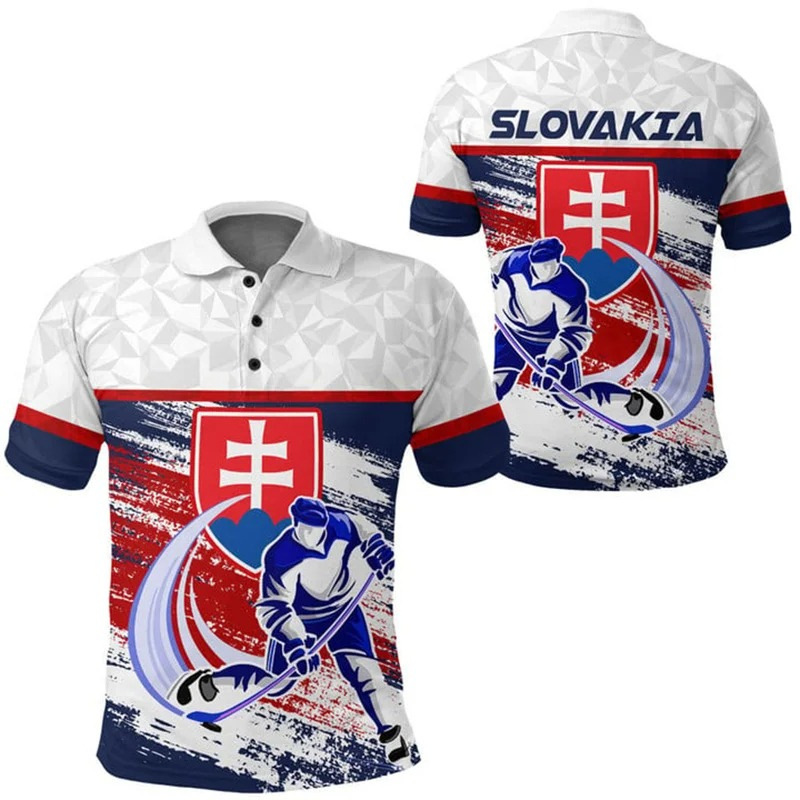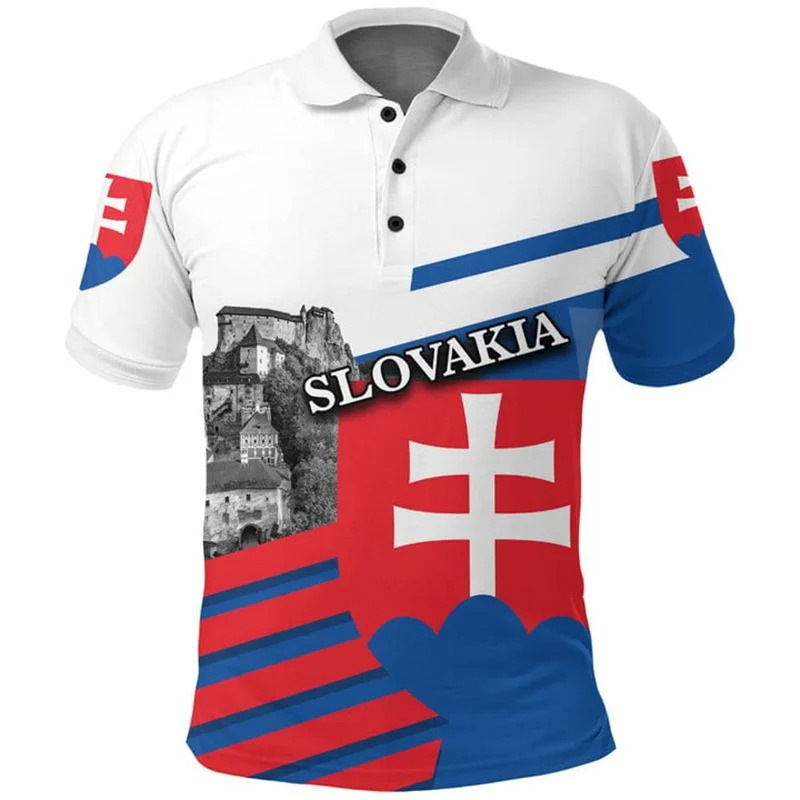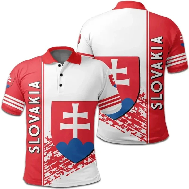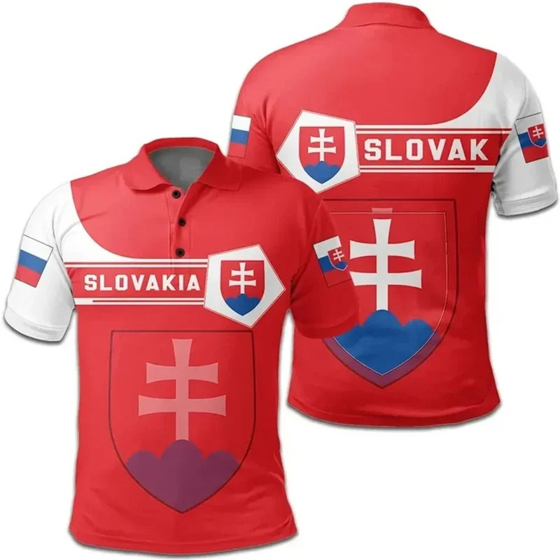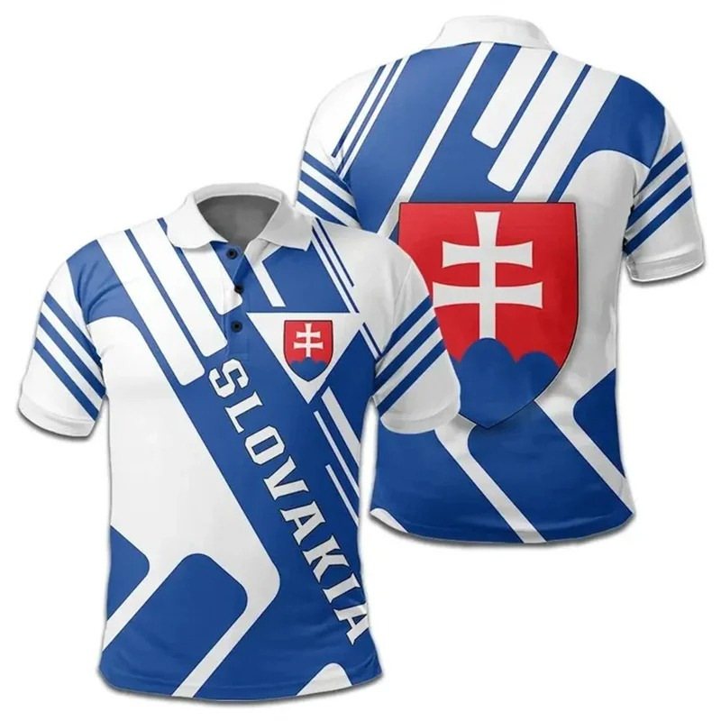 슬로바키아 국기 3D 프린트 폴로 셔츠 남성 의류 캐주얼 반소매 골프 셔츠 패션 스트리트 하라주쿠 트렌드 남성스토어 가기