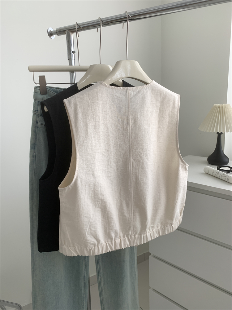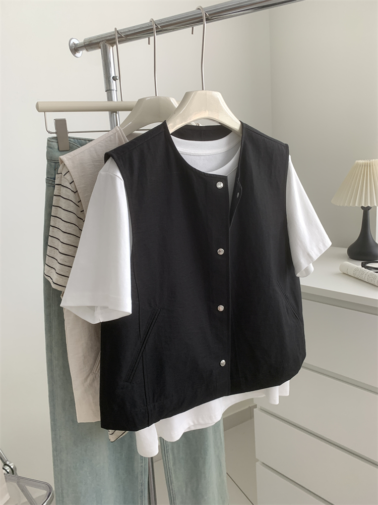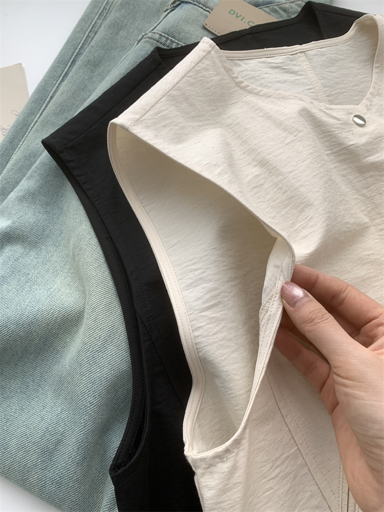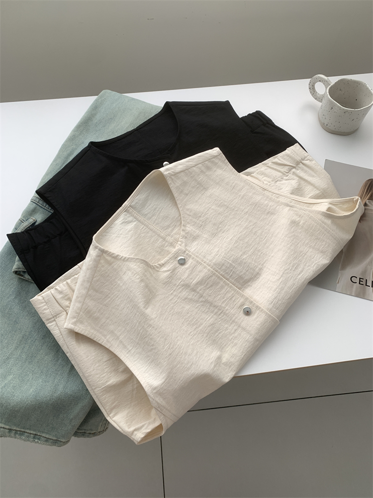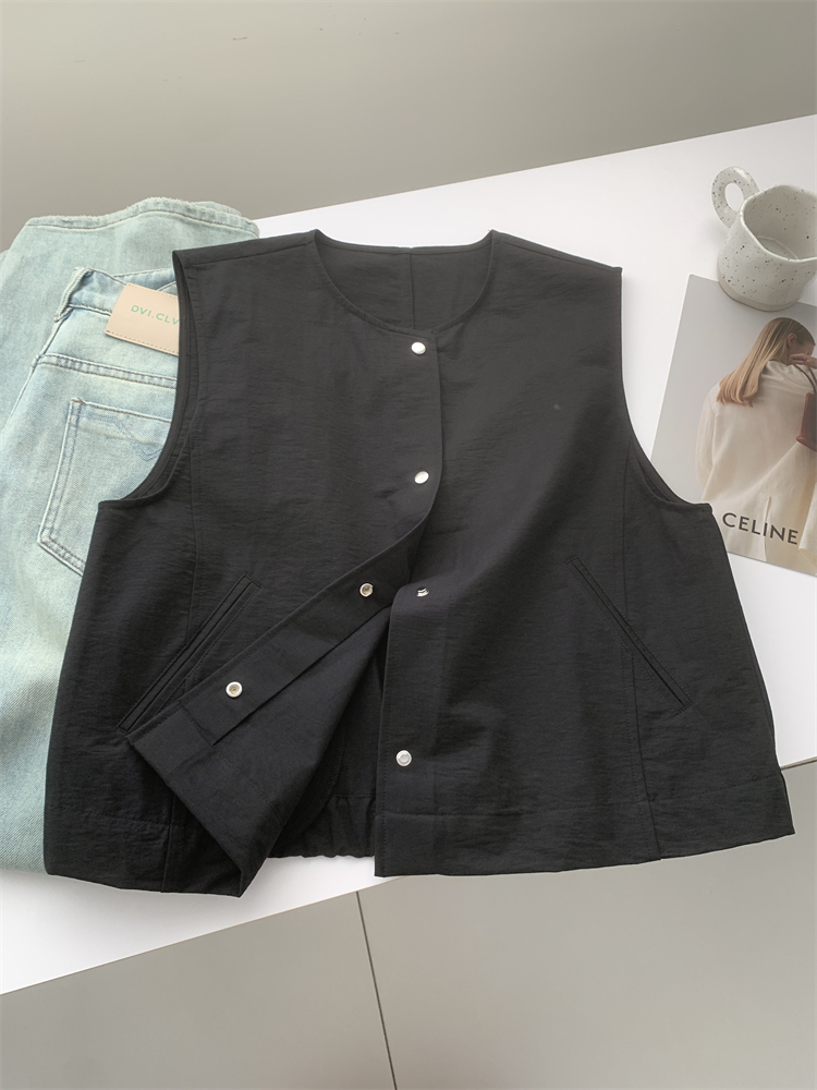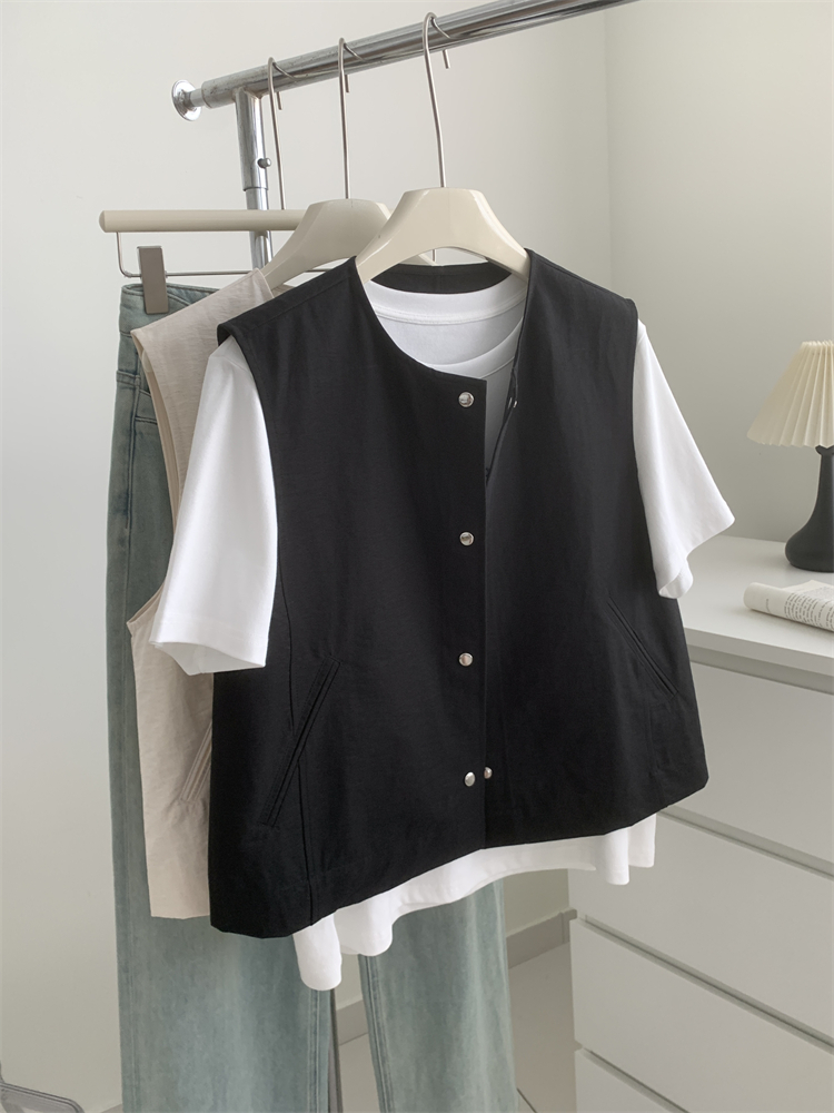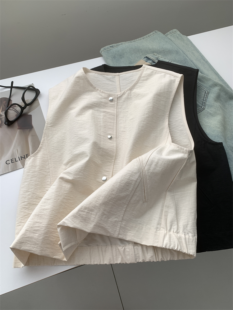 올드 머니 스타일 대각선 포켓 라운드 넥 레이어드 조끼 여성용 한국 복고풍 단순 다용도 봄 여름 얇은 민소매 조끼스토어 가기