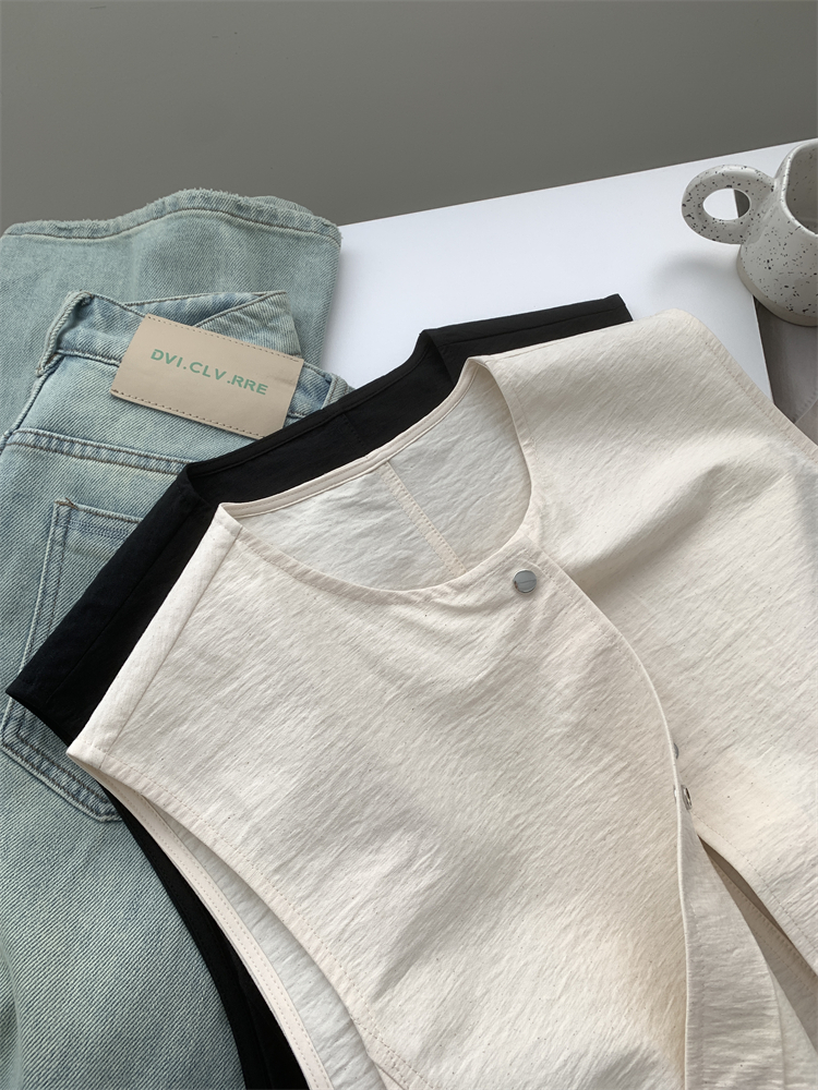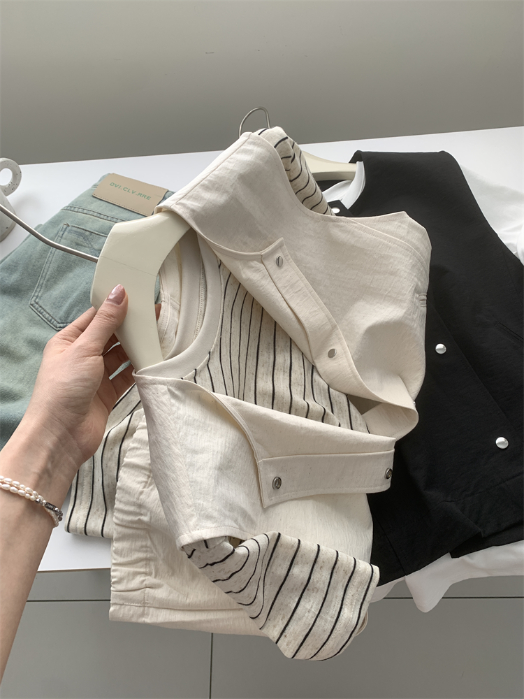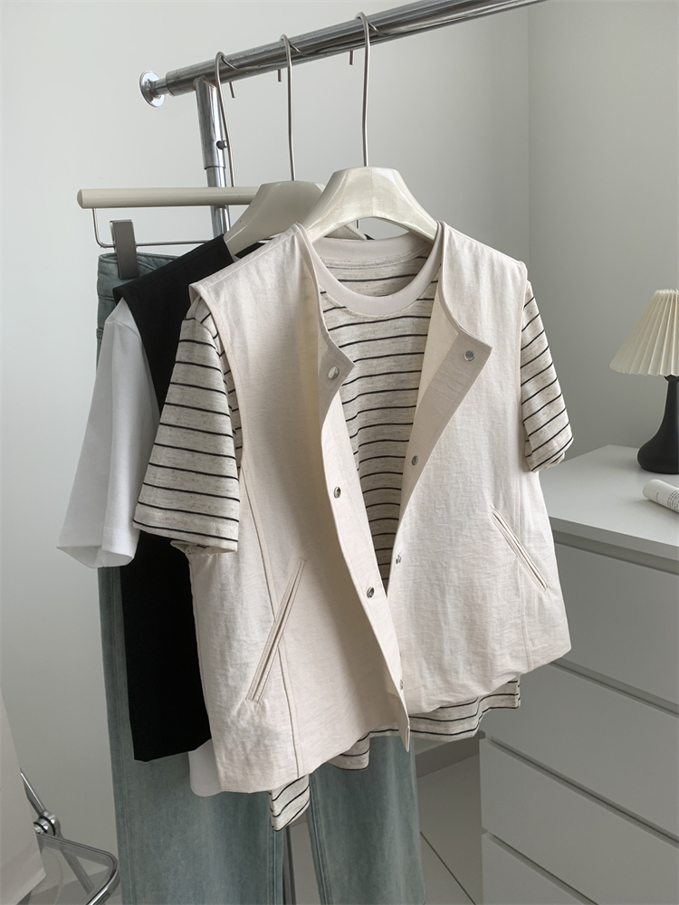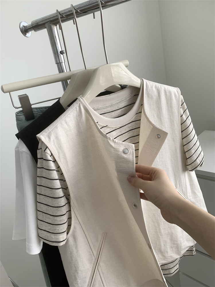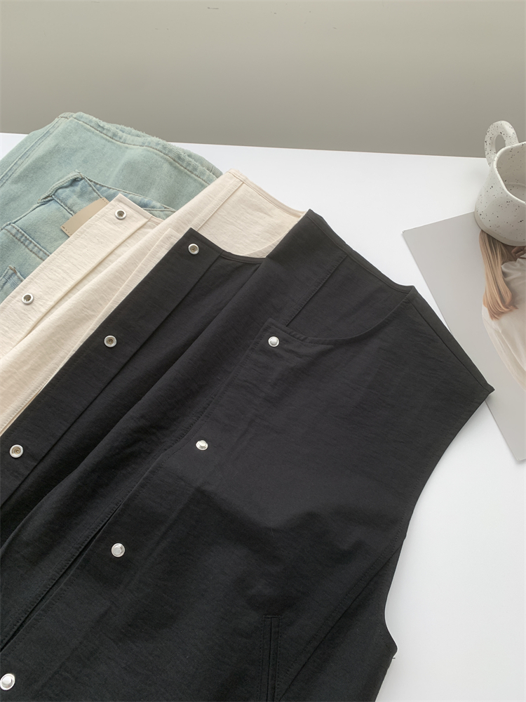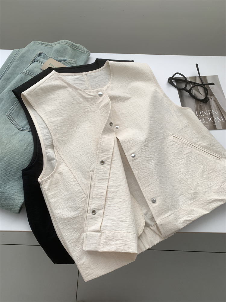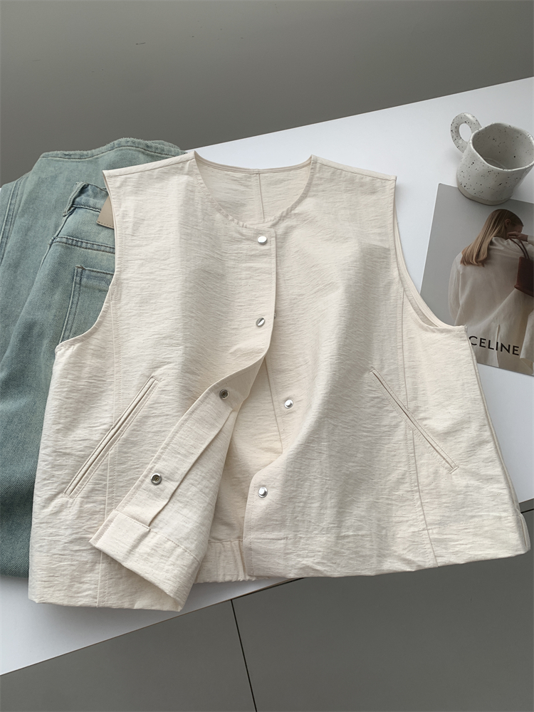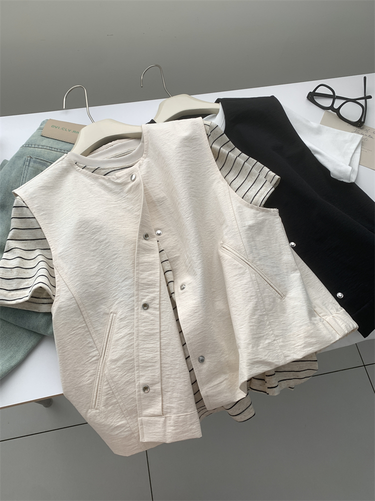 올드 머니 스타일 대각선 포켓 라운드 넥 레이어드 조끼 여성용 한국 복고풍 단순 다용도 봄 여름 얇은 민소매 조끼스토어 가기