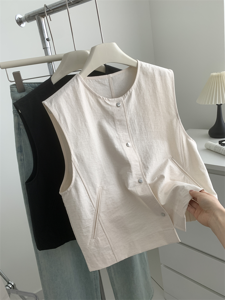 올드 머니 스타일 대각선 포켓 라운드 넥 레이어드 조끼 여성용 한국 복고풍 단순 다용도 봄 여름 얇은 민소매 조끼
