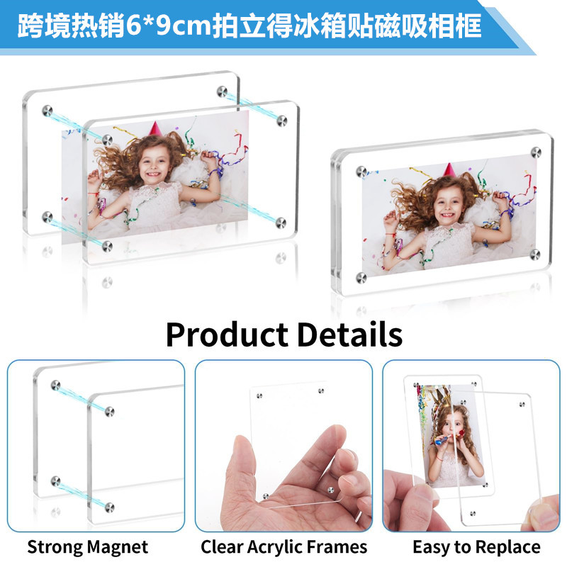 [국경 간 인기 모델] 폴라로이드 6*9cm 자석 사진 프레임 냉장고 자석 사진 프레임 아크릴 투명 자석 사진 프레임 2