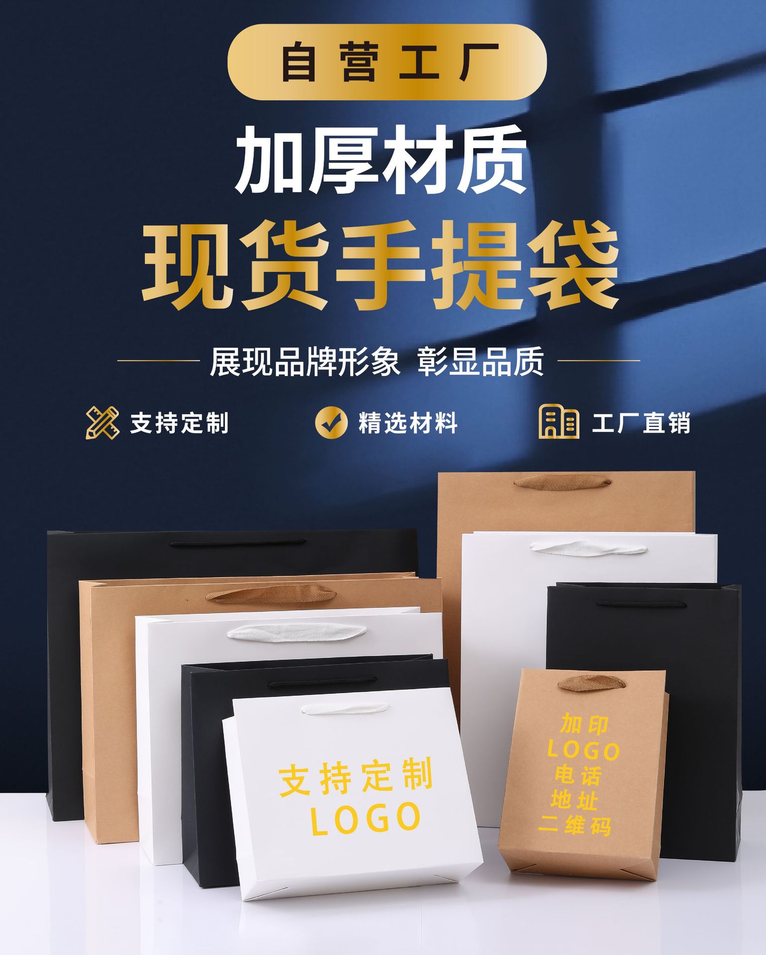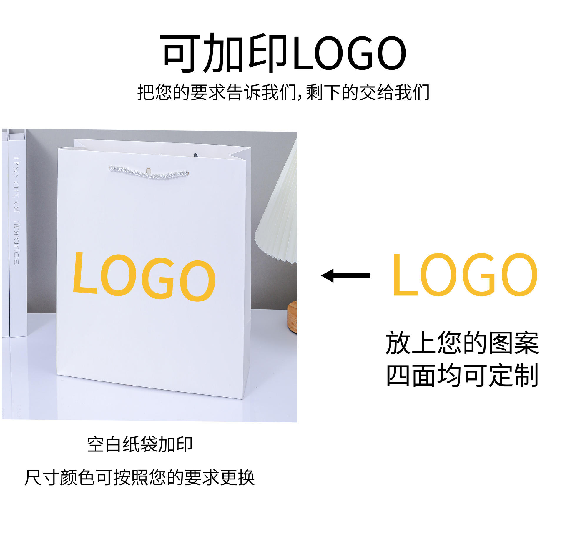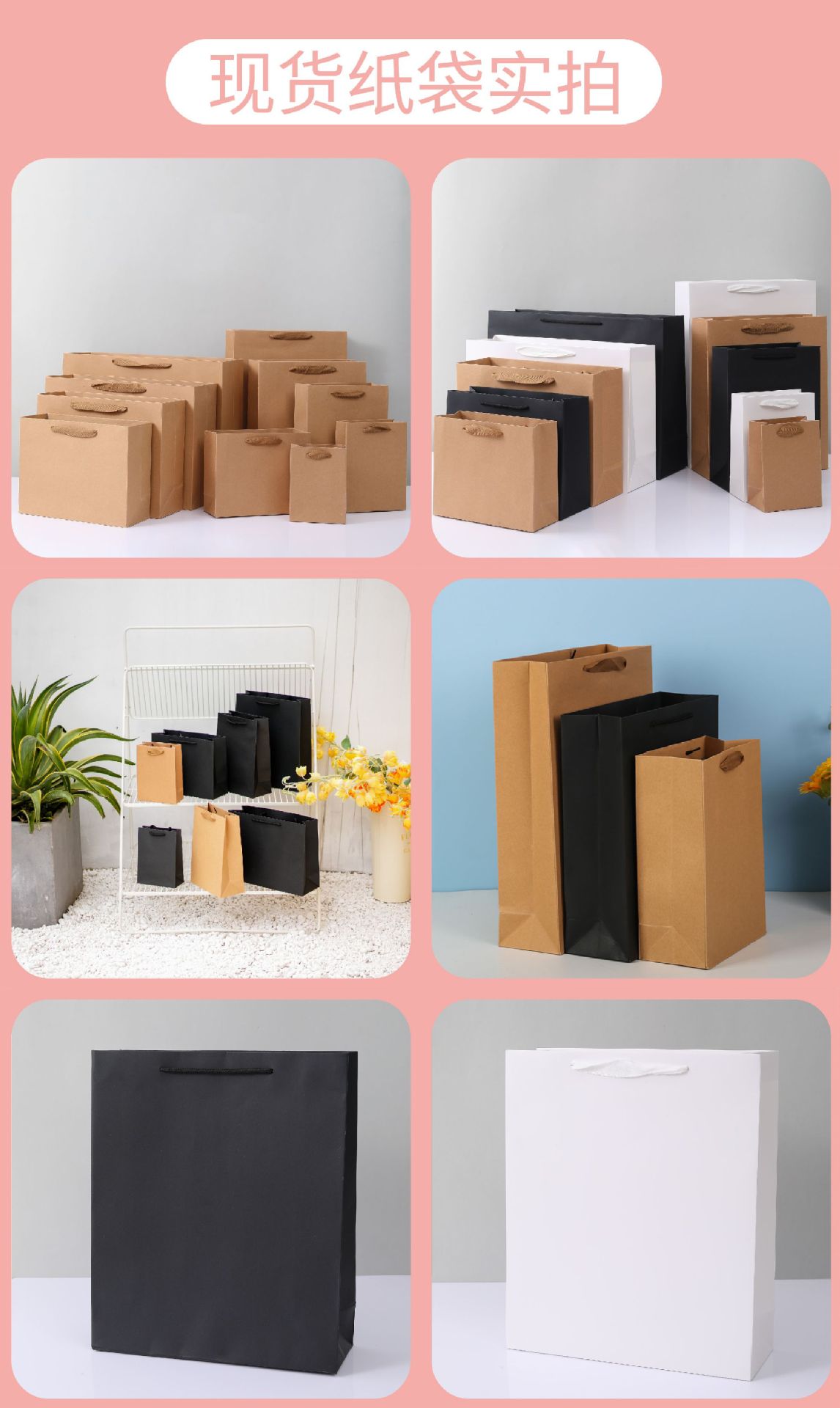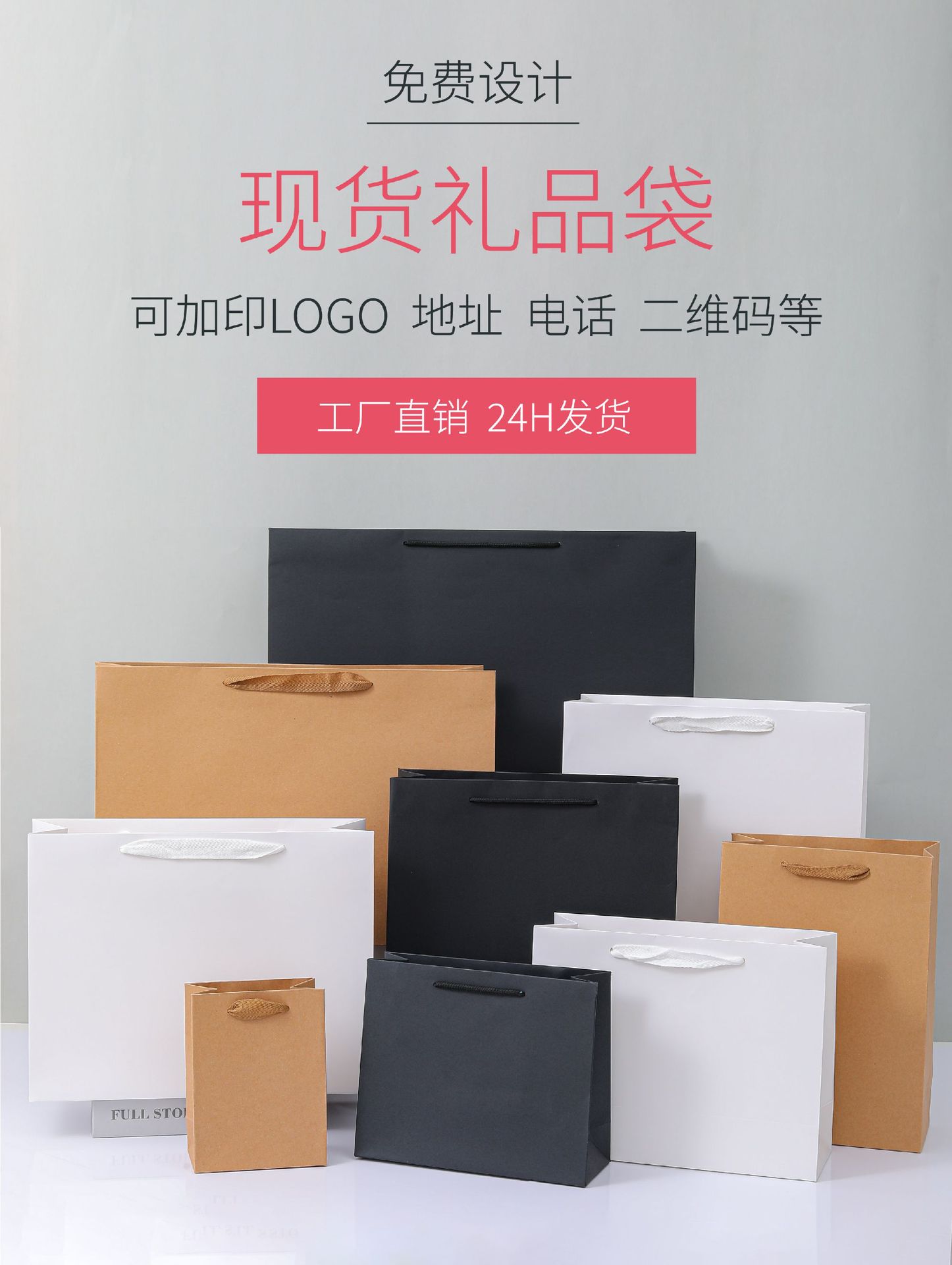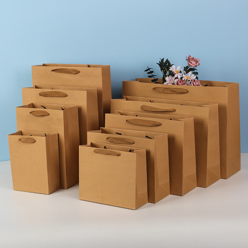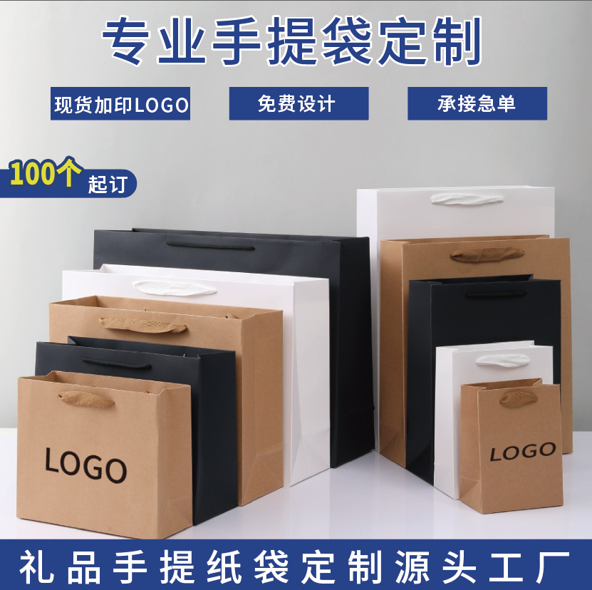 재고 크래프트 종이 가방 단색 선물 가방 흰색 판지 고급 의류 토트 백 기업 광고 가방 로고 인쇄스토어 가기