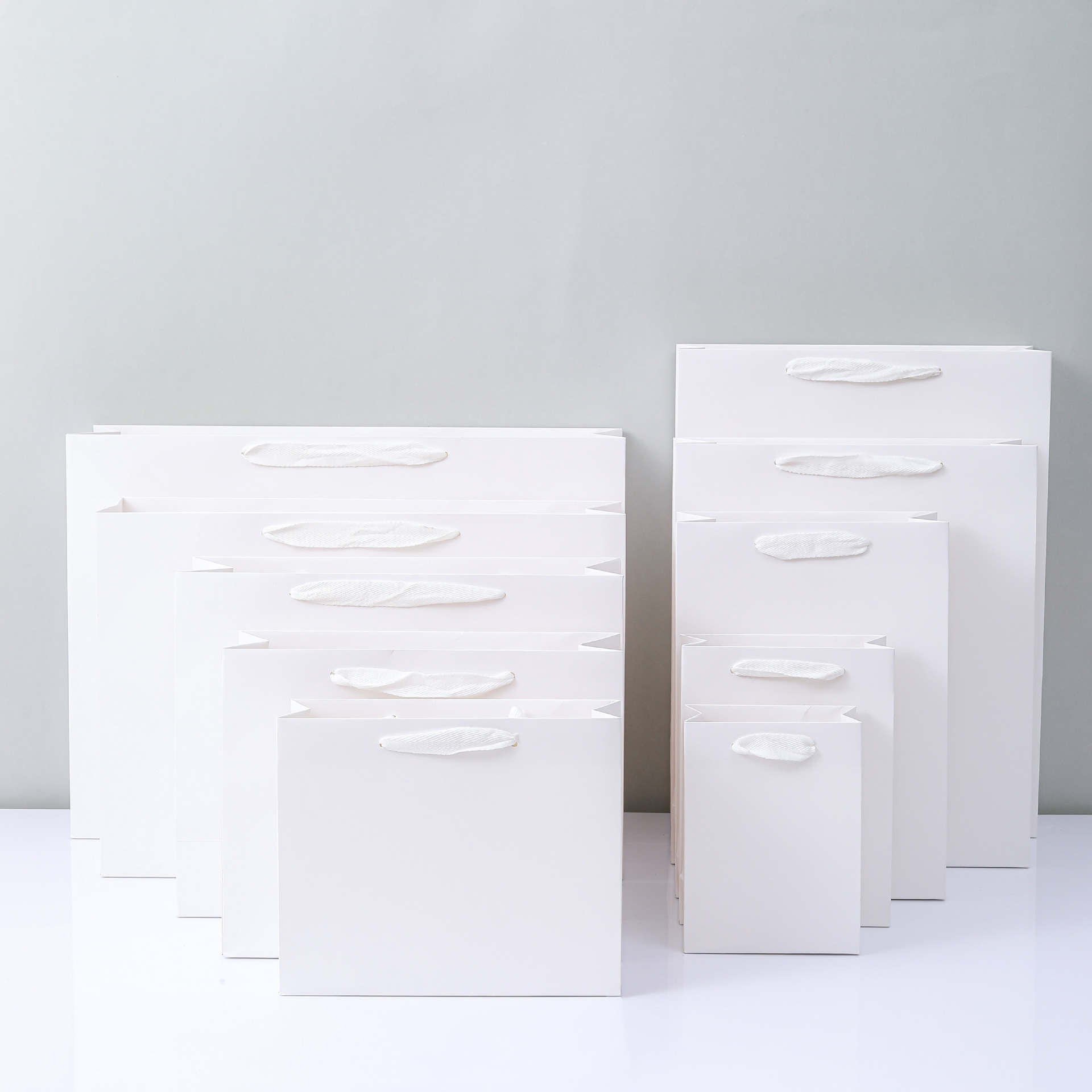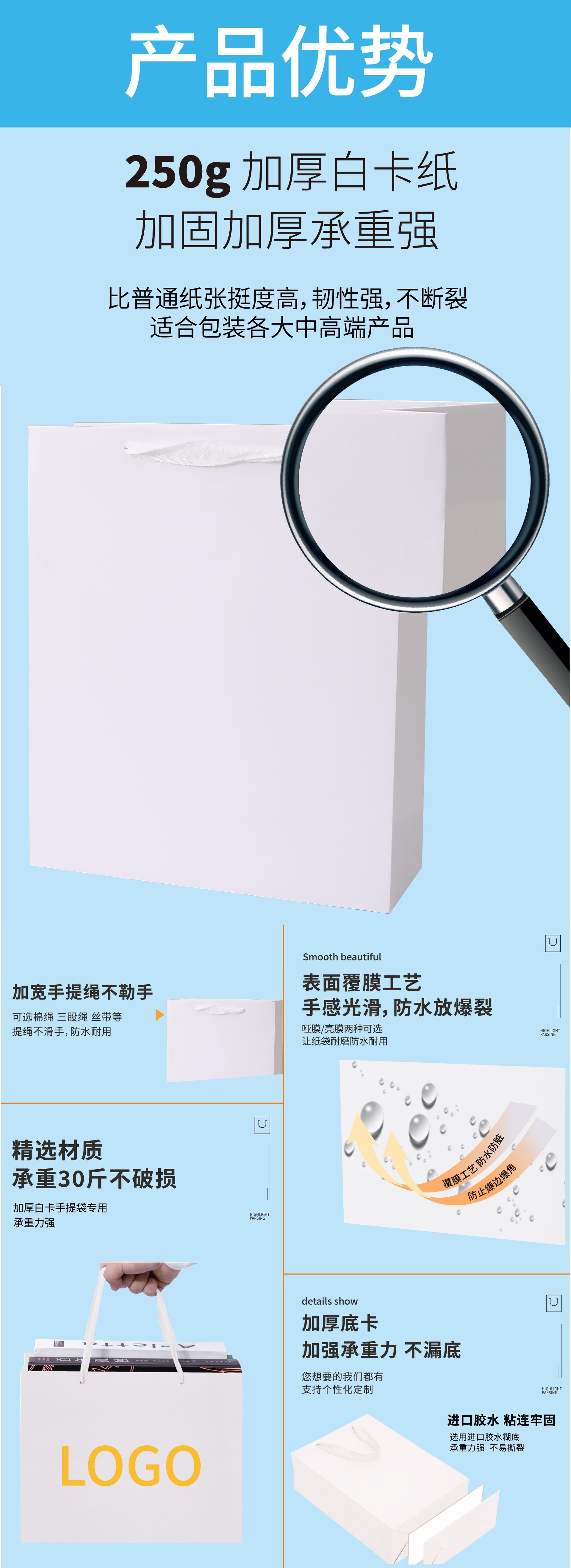 재고 크래프트 종이 가방 단색 선물 가방 흰색 판지 고급 의류 토트 백 기업 광고 가방 로고 인쇄