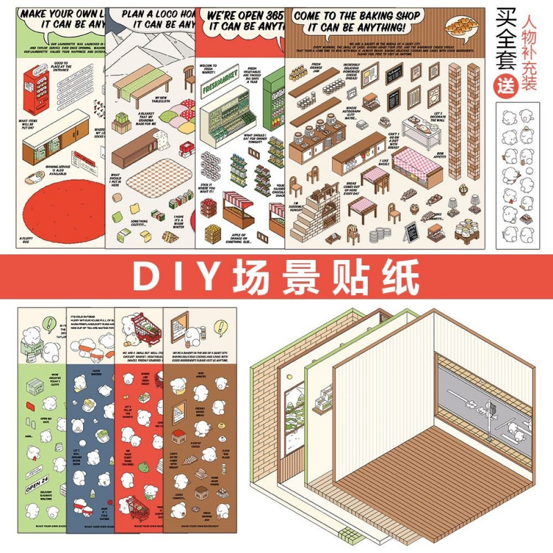 조경 스티커 컬렉션 3D 입체 오두막 미니어처 장면 스티커 어린이 DIY 핸드북 교육 장난감 스티커스토어 가기