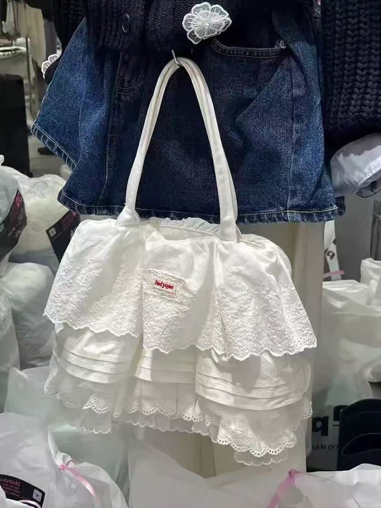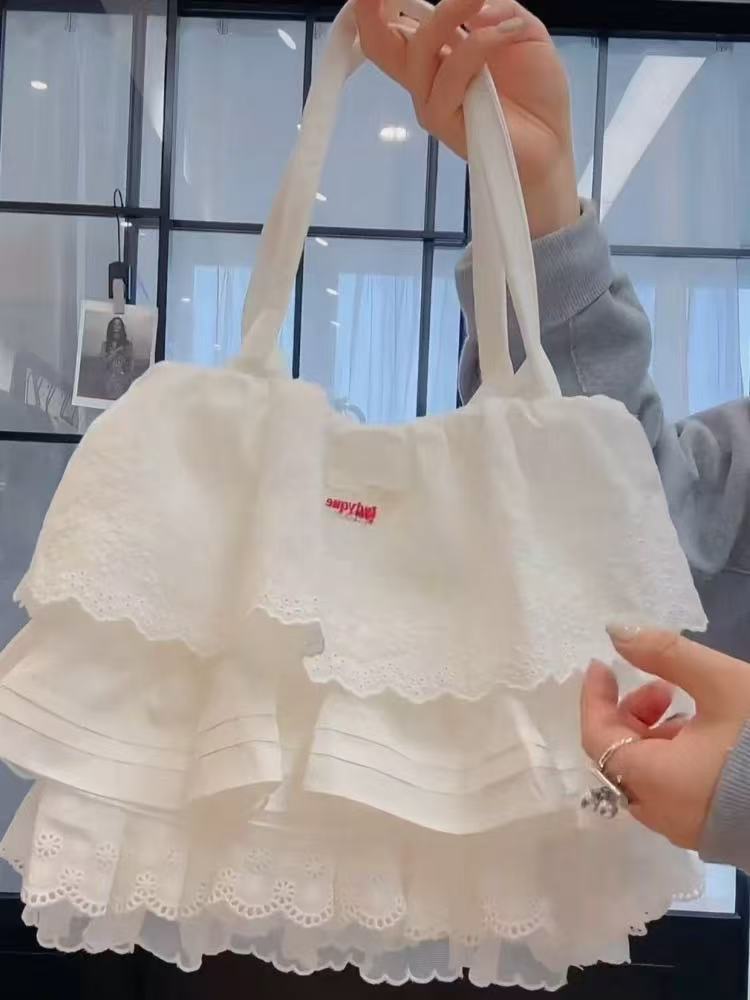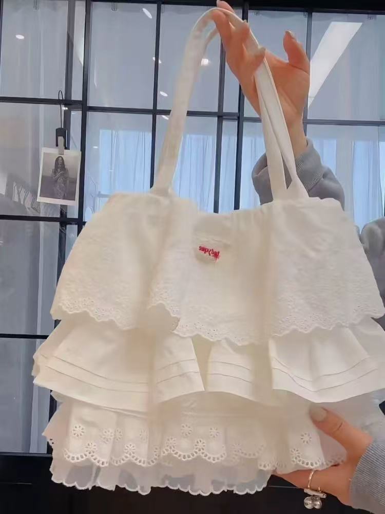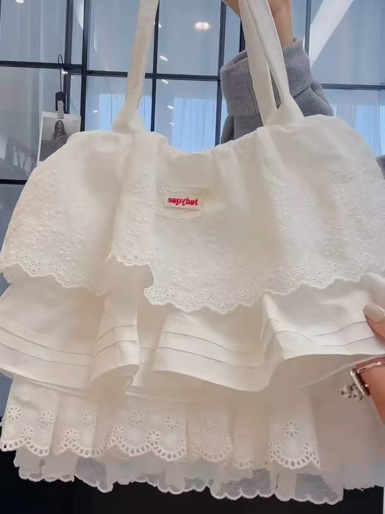 2026 신상 레이스 레이어드 버터플라이 레이스 스커트 원단 가방 숄더 핸드백 대용량 통근 토트백 여성용
