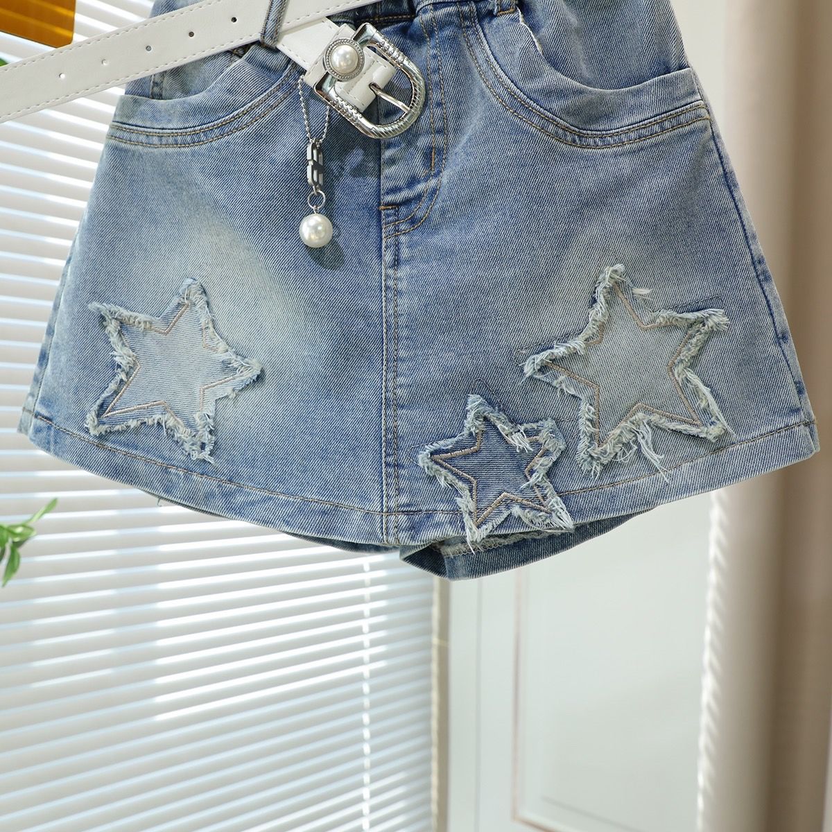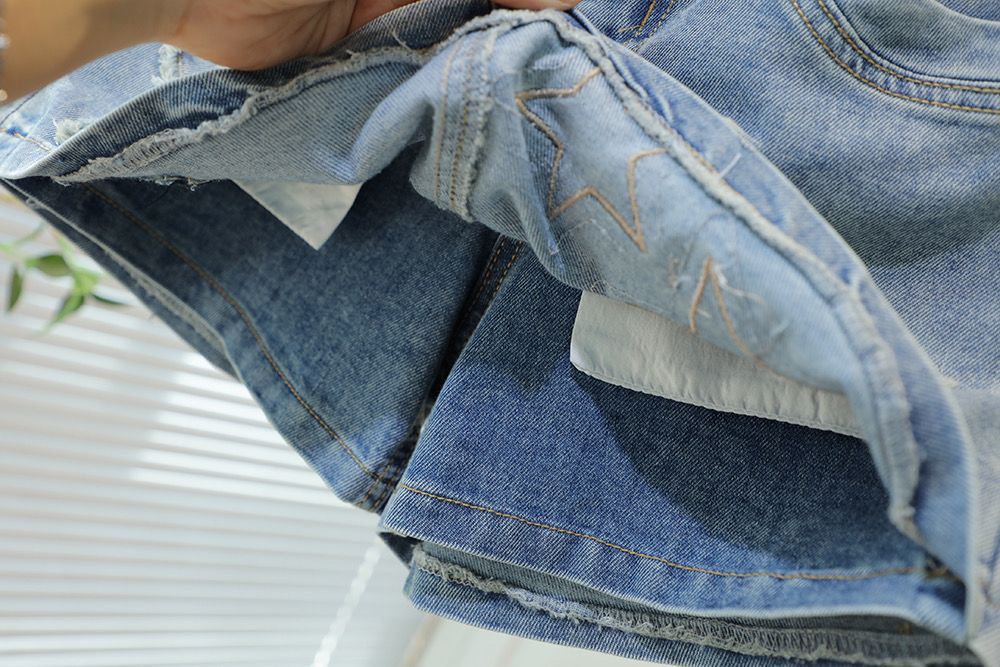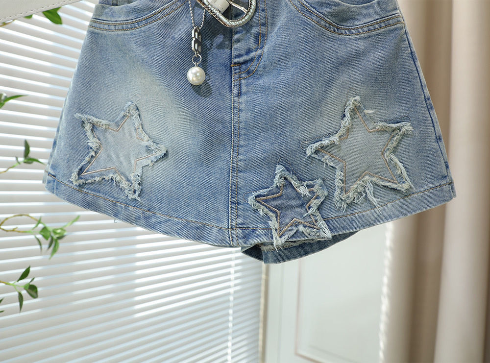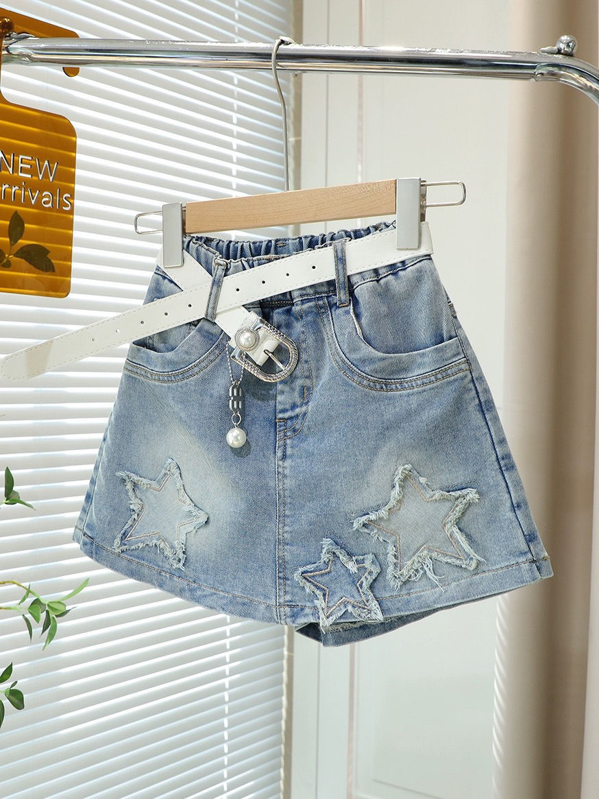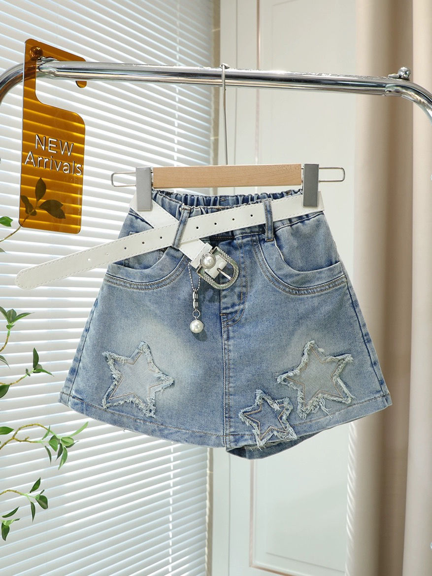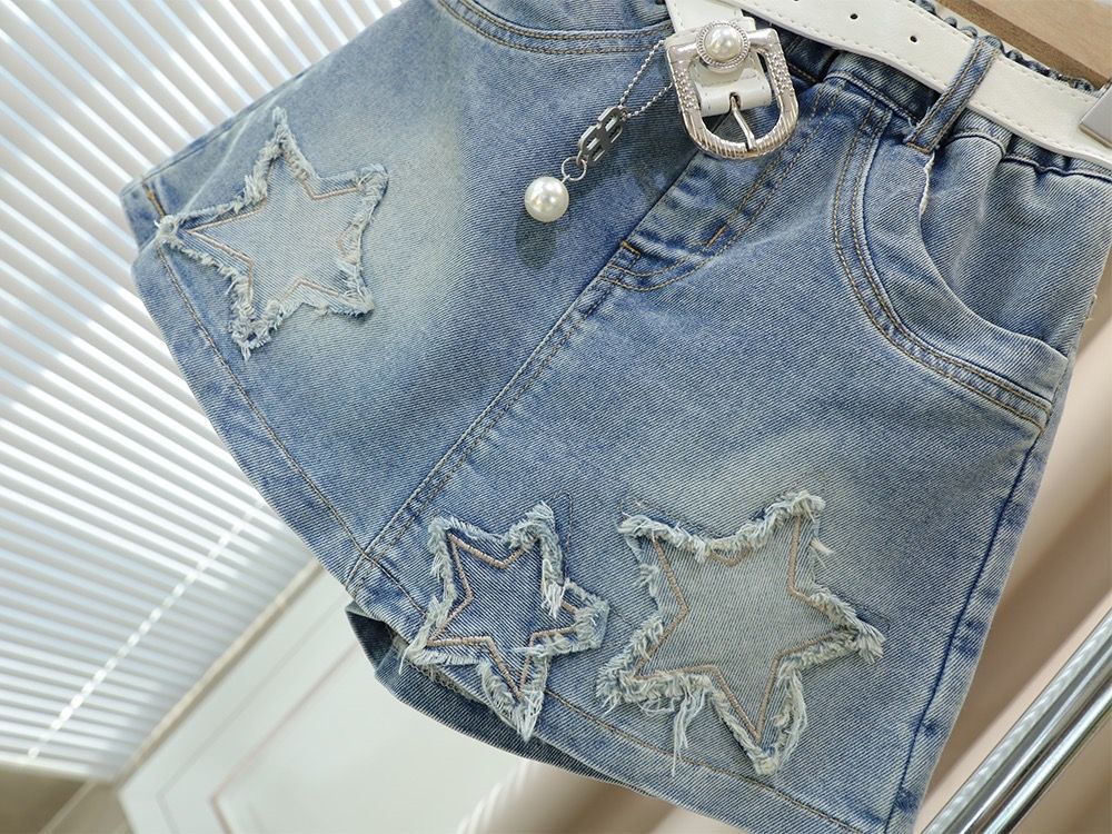 소녀 데님 반바지 여름 새로운 한국 스타일 어린이 유행 가짜 2 피스 컬로트 중대 어린이 세련된 올 매치 핫 바지스토어 가기