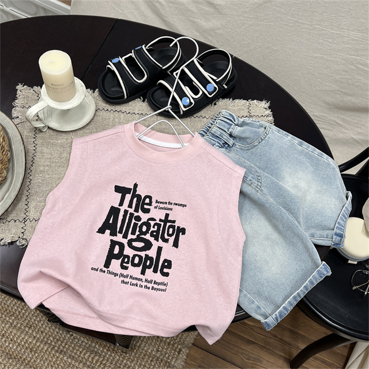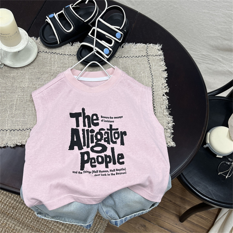 남학생 민소매 조끼 티셔츠 2025 여름 새로운 바닥 소년 서양식 어린이 캐주얼 인쇄 얇은 유행스토어 가기