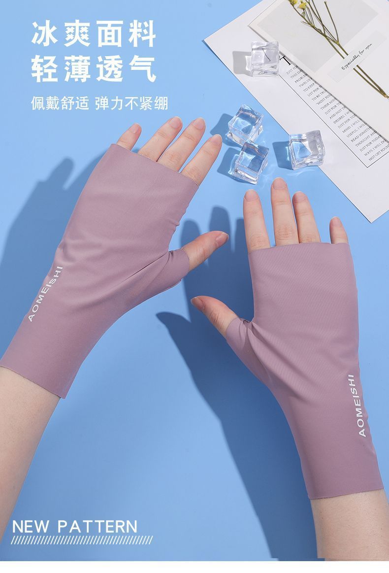 2023 새로운 자외선 차단제 장갑 여성 얇은 안티 자외선 미끄럼 통기성 얼음 실크 시원한 주행 전차 타기스토어 가기
