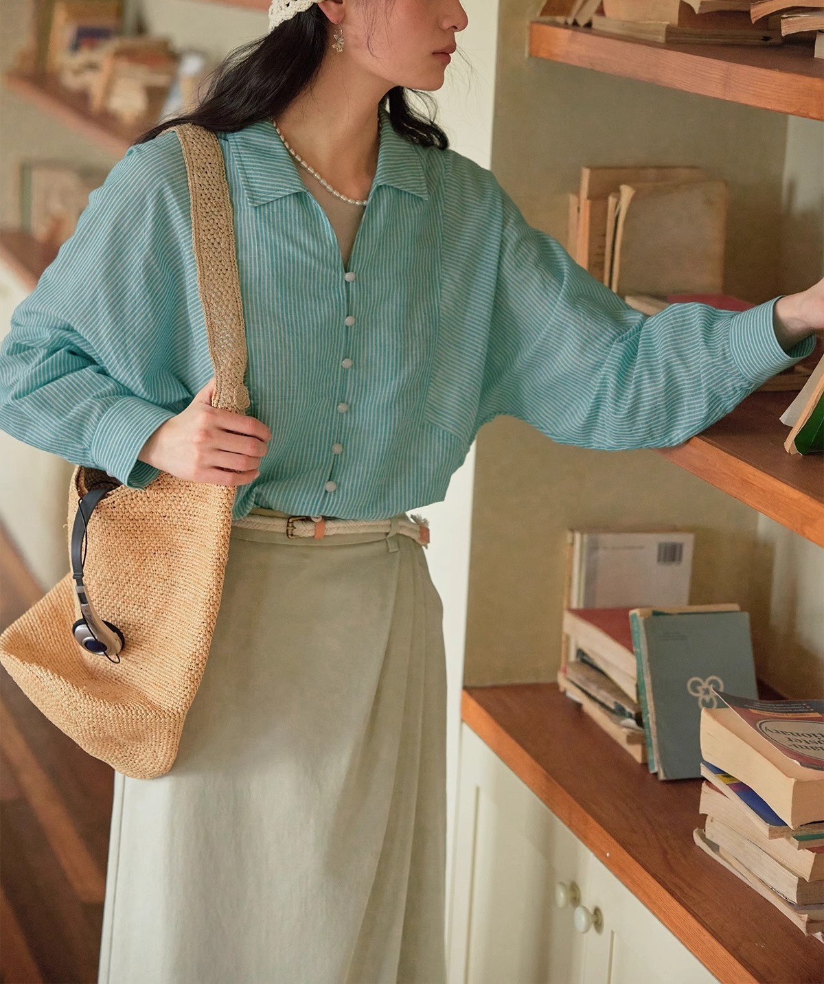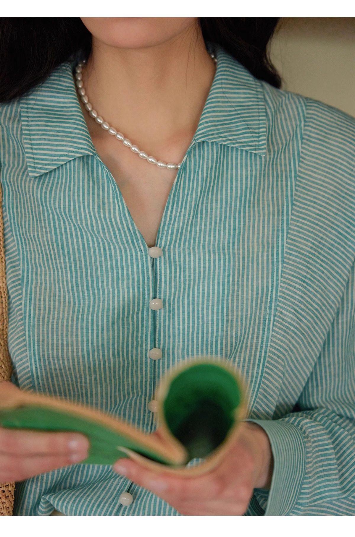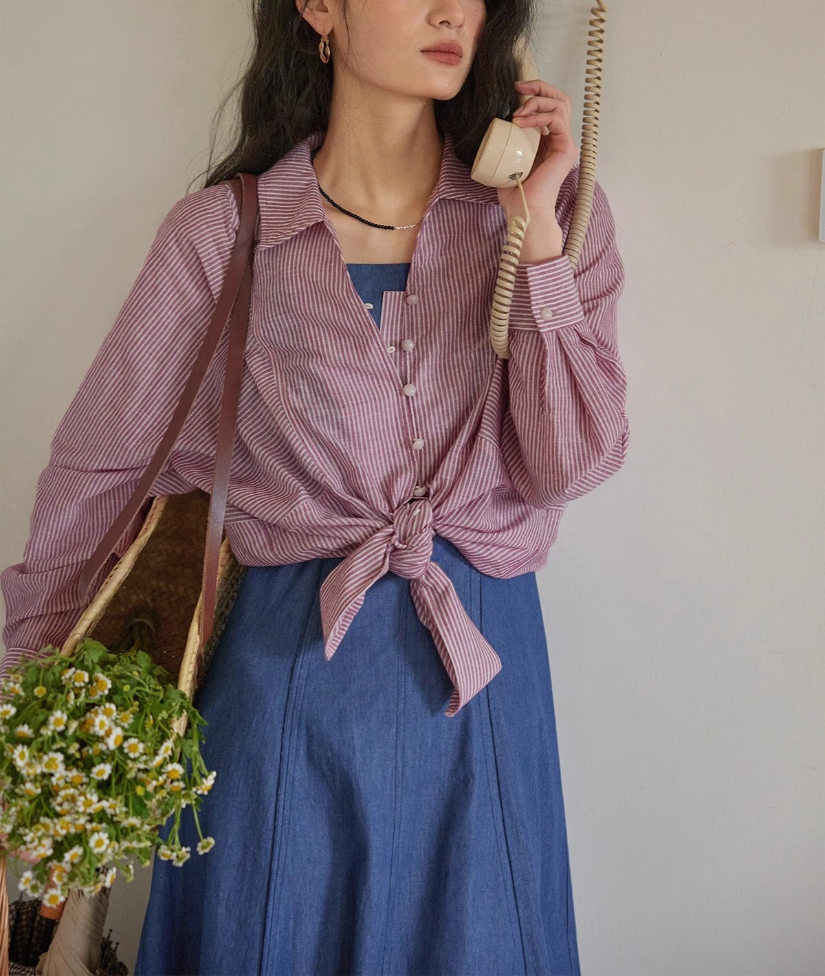 솔리거 프렌치 스트라이프 얇은 자외선 차단 셔츠 여성용 슬림핏 루즈핏 100% 순면 상의스토어 가기