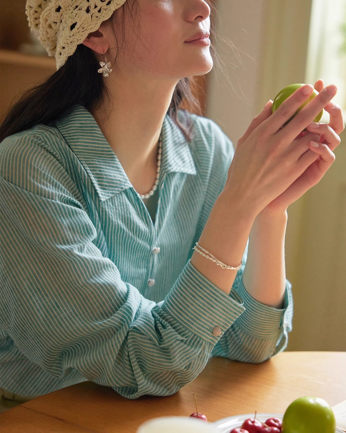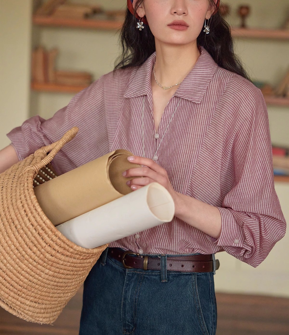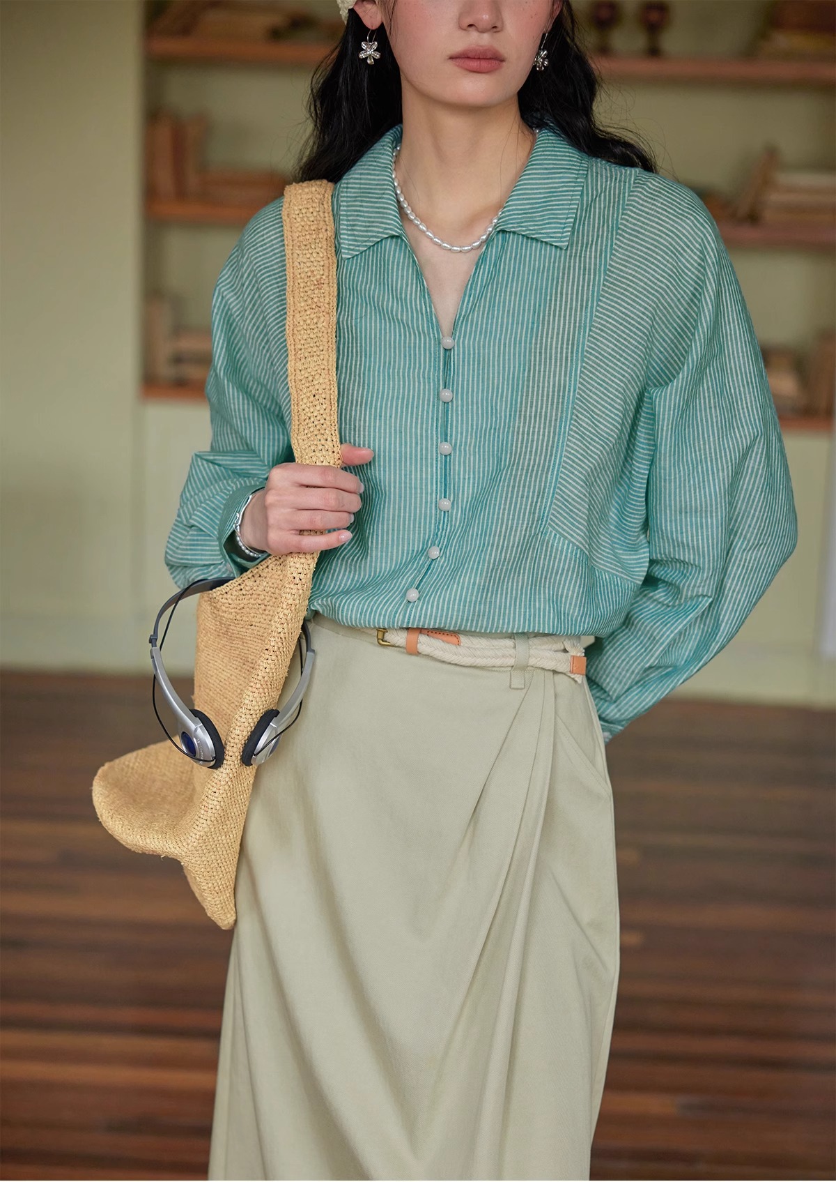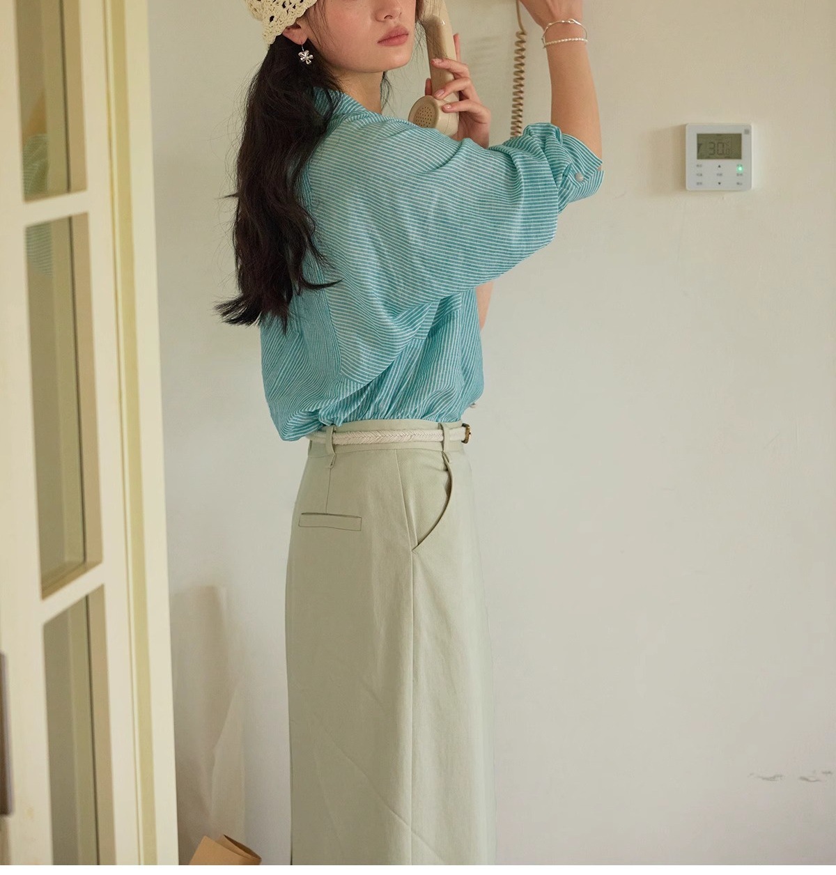솔리거 프렌치 스트라이프 얇은 자외선 차단 셔츠 여성용 슬림핏 루즈핏 100% 순면 상의스토어 가기