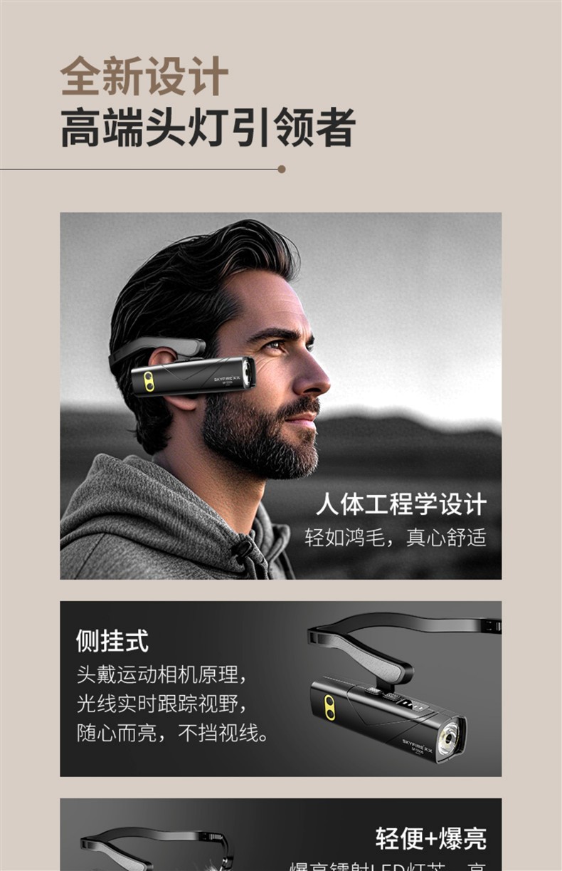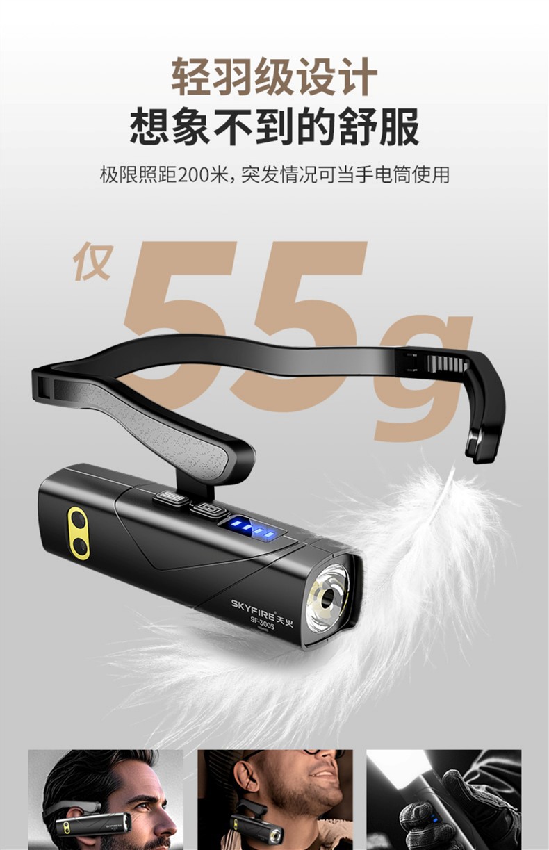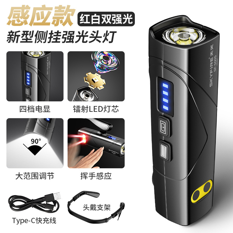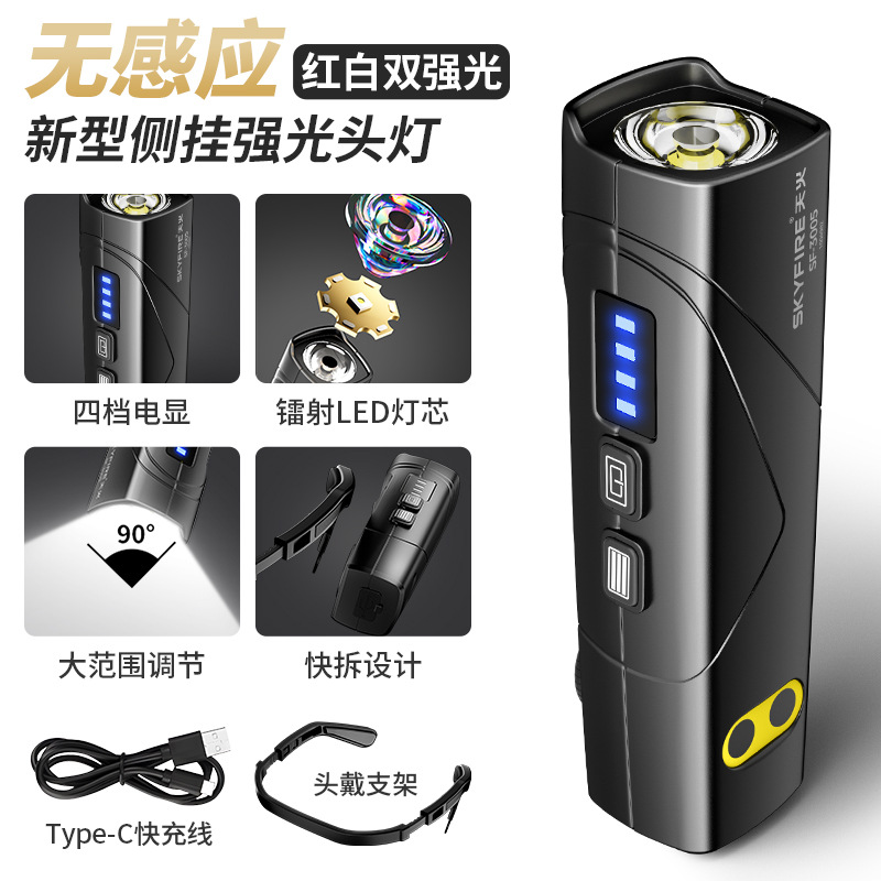 Skyfire 헤드 라이트 2025 강한 빛 슈퍼 밝은 충전식 헤드 장착형 조명 야간 낚시 특수 야외 등산 손전등