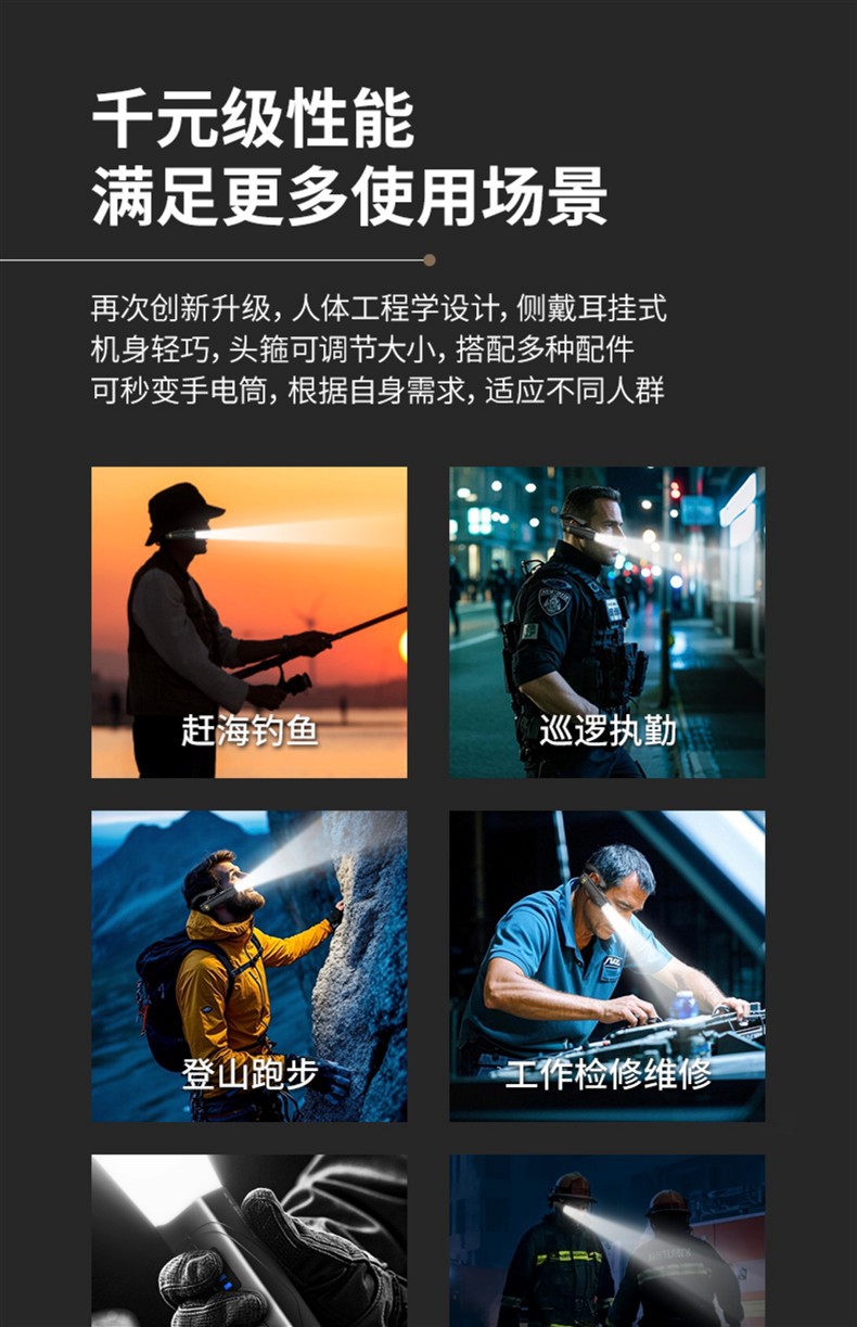 • 유도 모델 [빨간색과 흰색 이중 강한 빛] 1000mAh 슈퍼 리튬 배터리 초경량 헤드라이트 대형 투광 조명