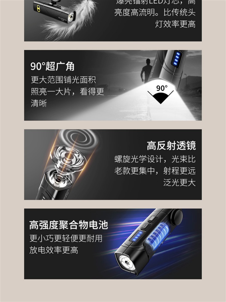 • 무감각 [빨간색과 흰색 이중 강한 빛] 1000mAh 슈퍼 리튬 배터리 초경량 헤드라이트 대형 투광 조명