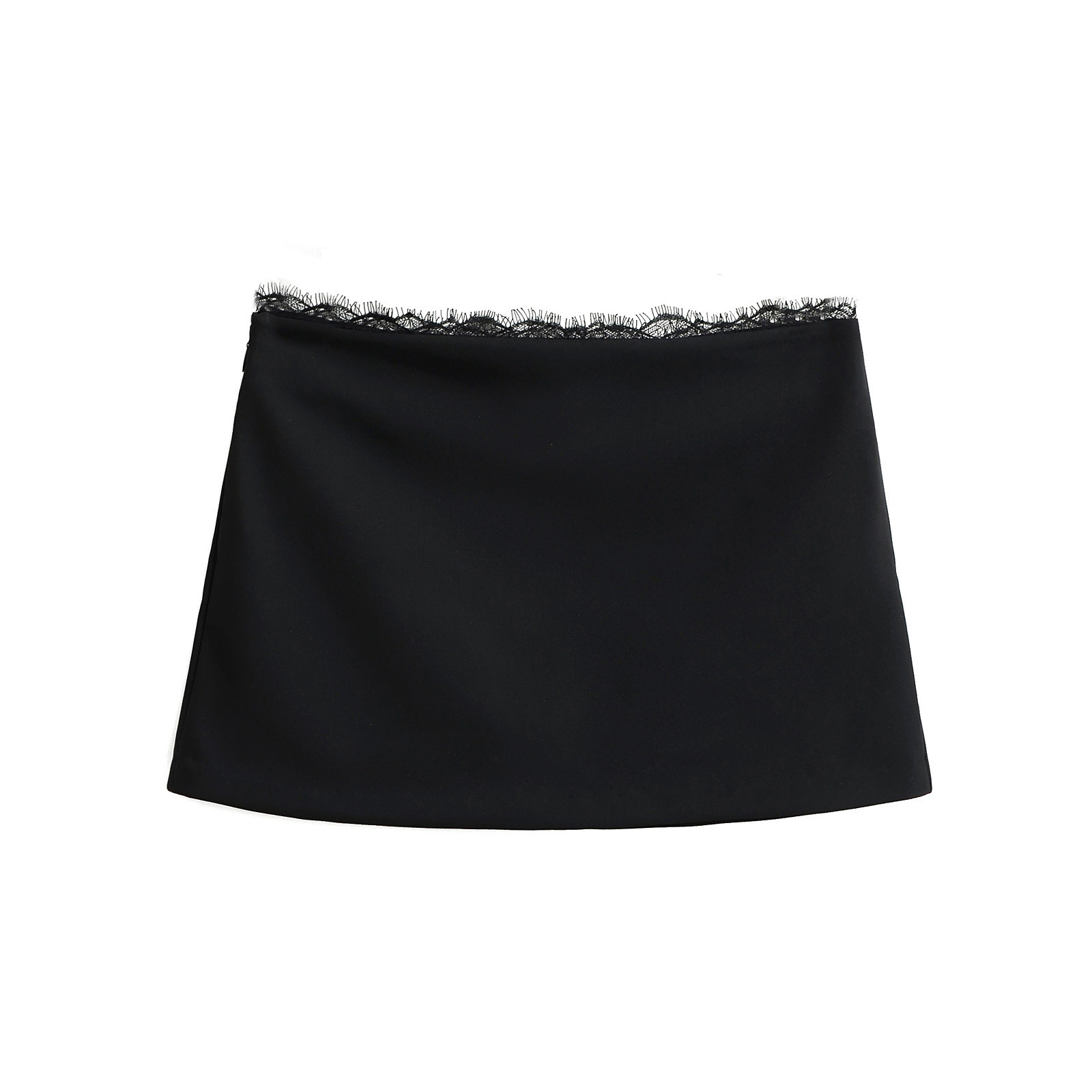 2025 유럽과 미국의 여름 신작 여성 블랙 레이스 스커트 캐주얼 짧은 스커트 엉덩이를 덮는 미니 스커트 노출 방지