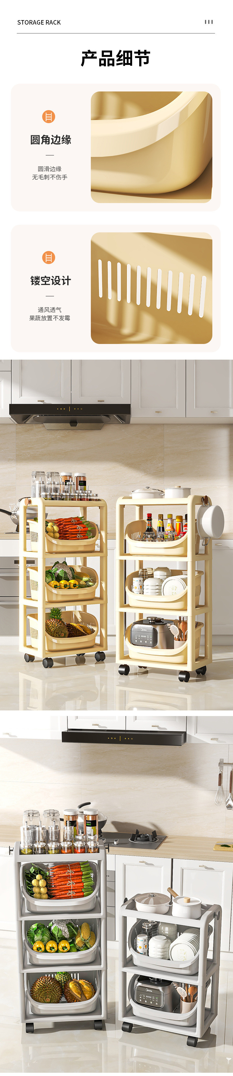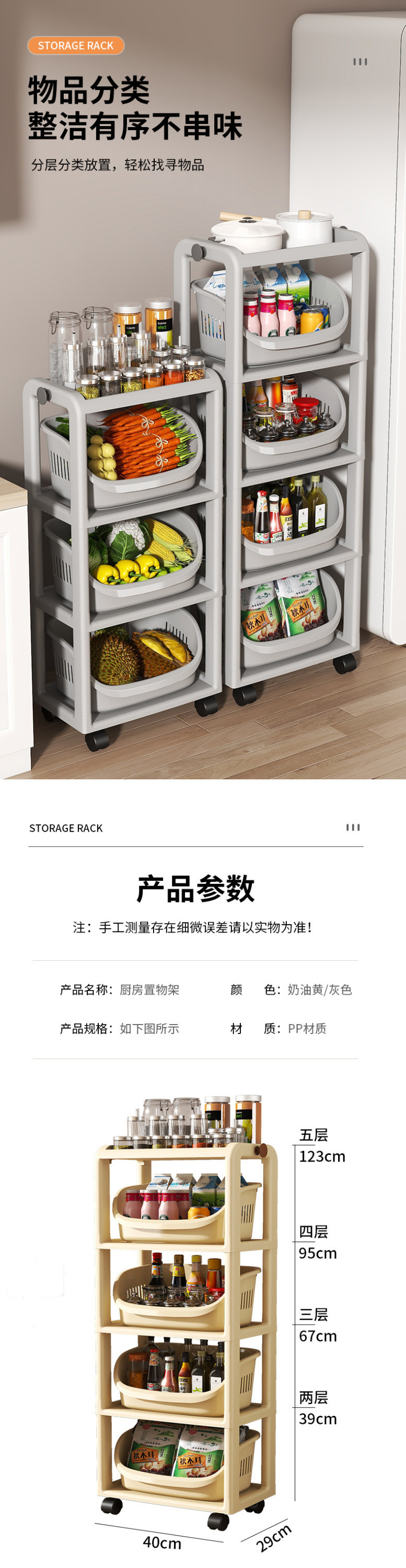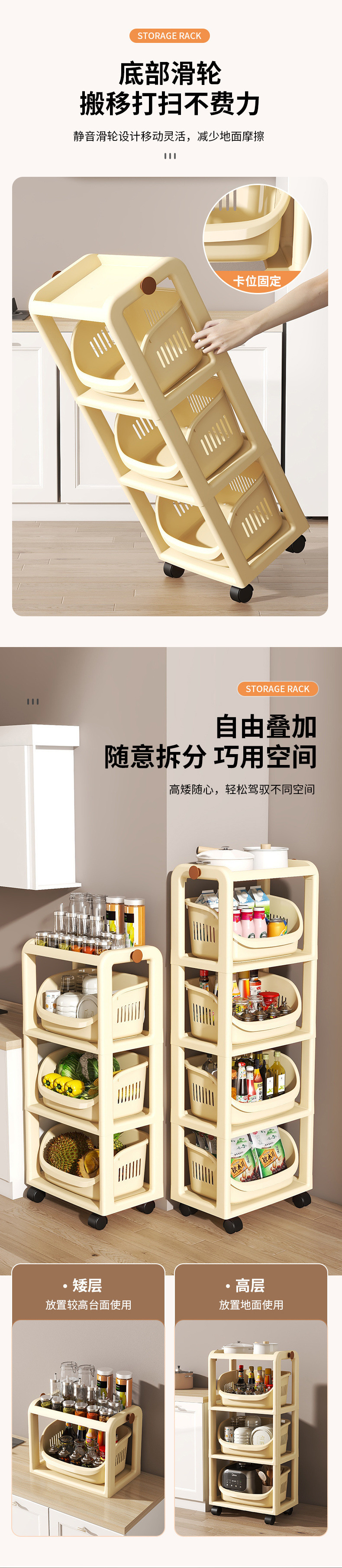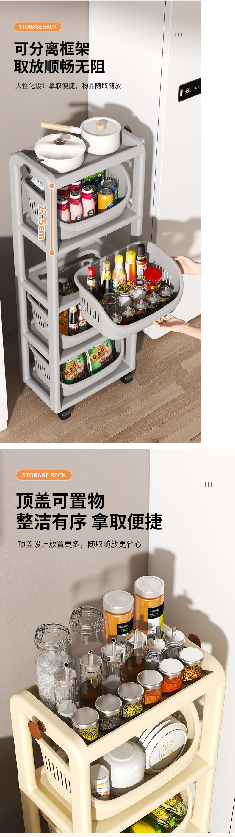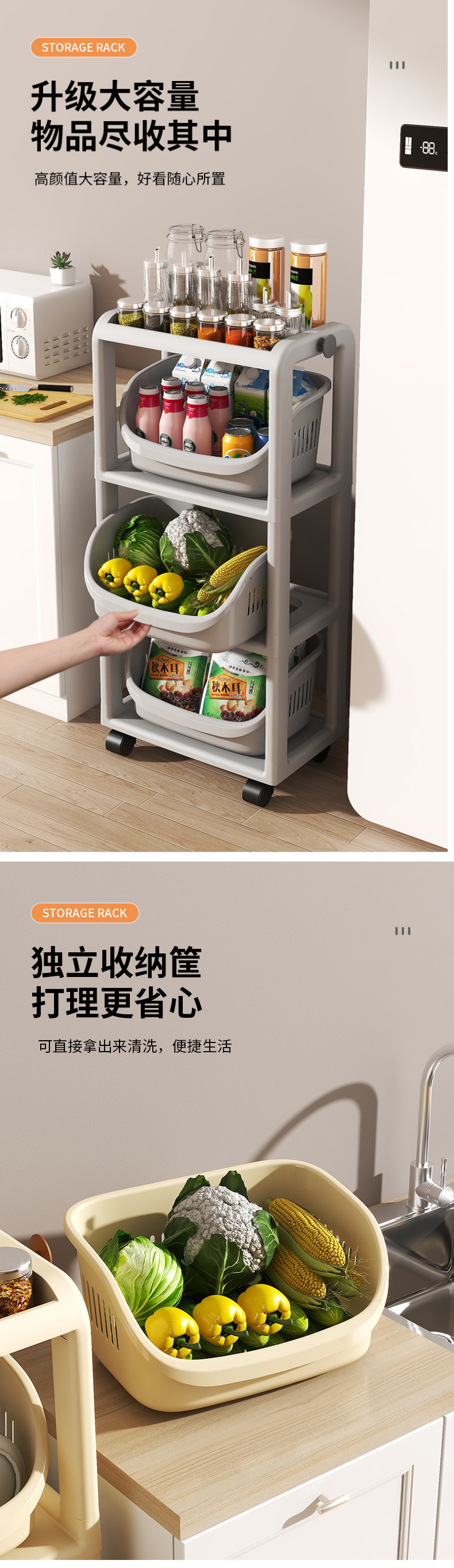 주방 수납 선반, 바닥에서 천장까지 이어지는 다층 수납 선반, 과일 및 야채 바구니, 야채 바구니, 이동식 스낵 트롤리 수납 바구니