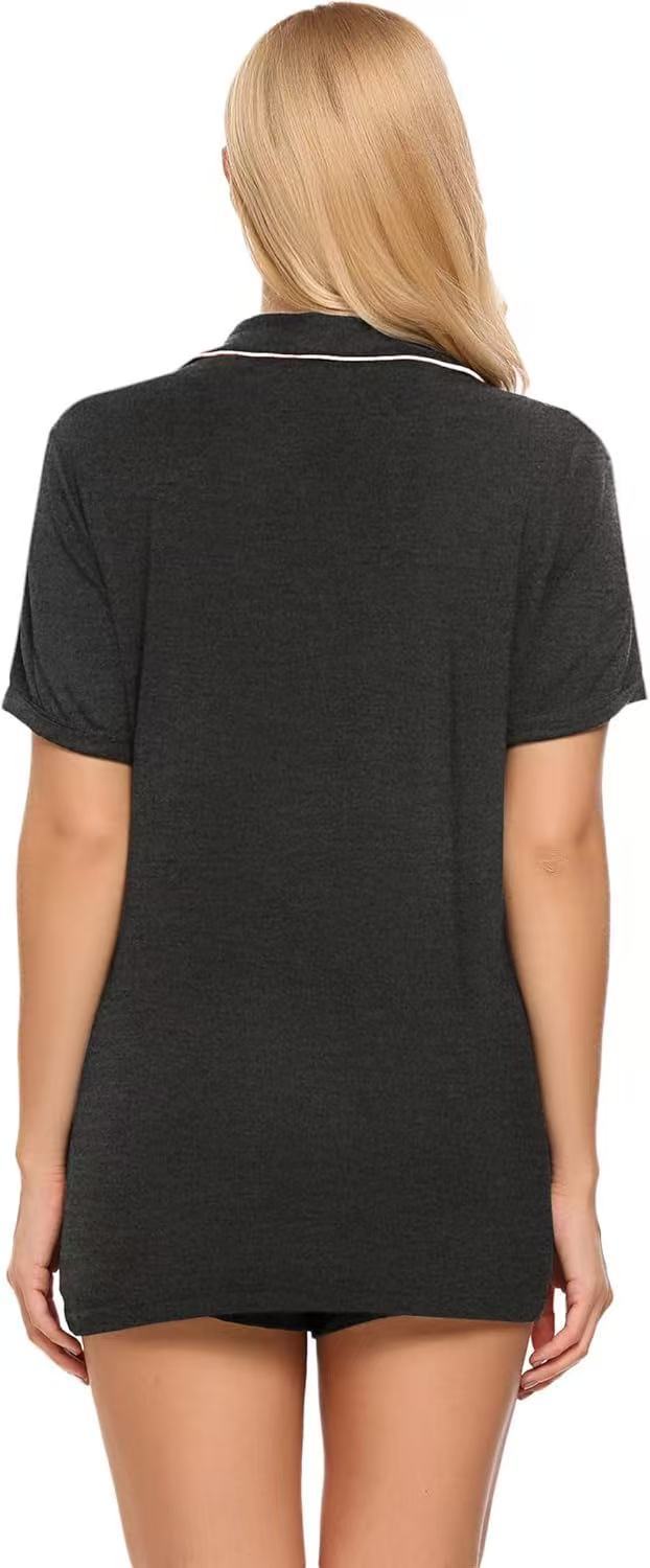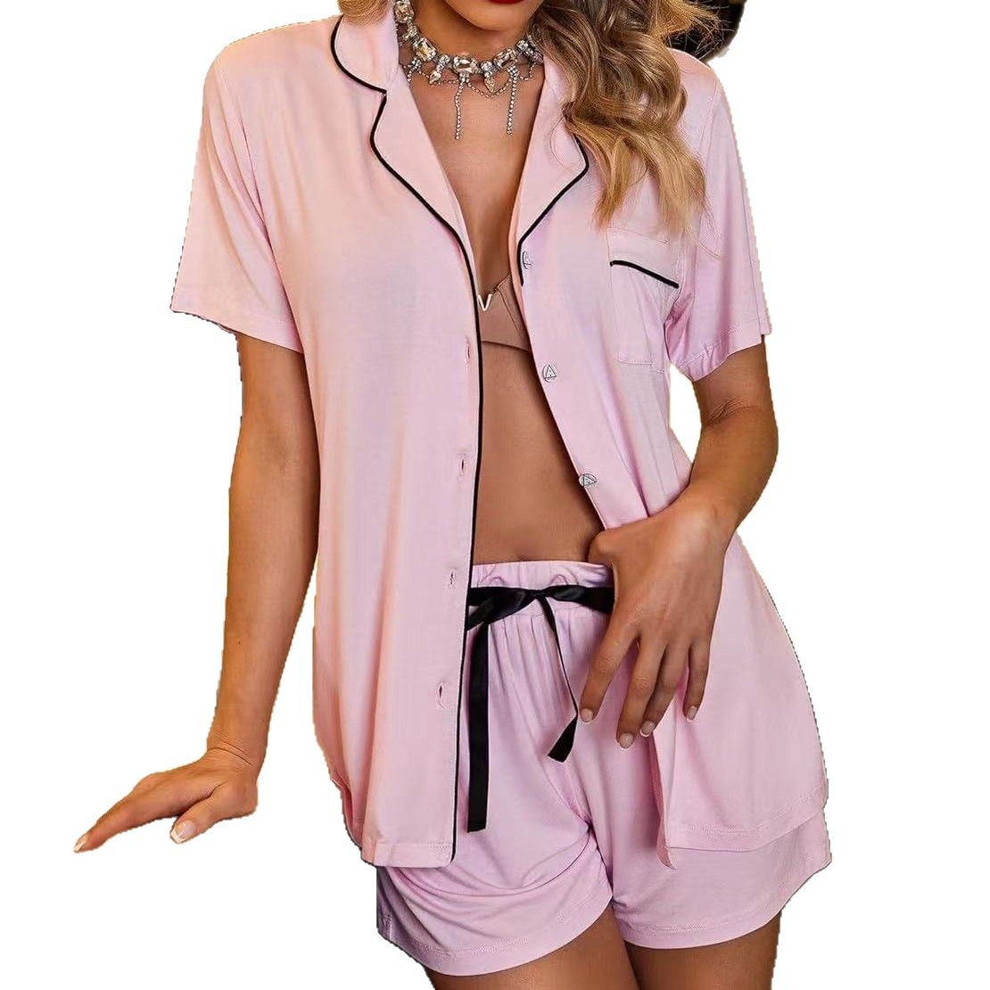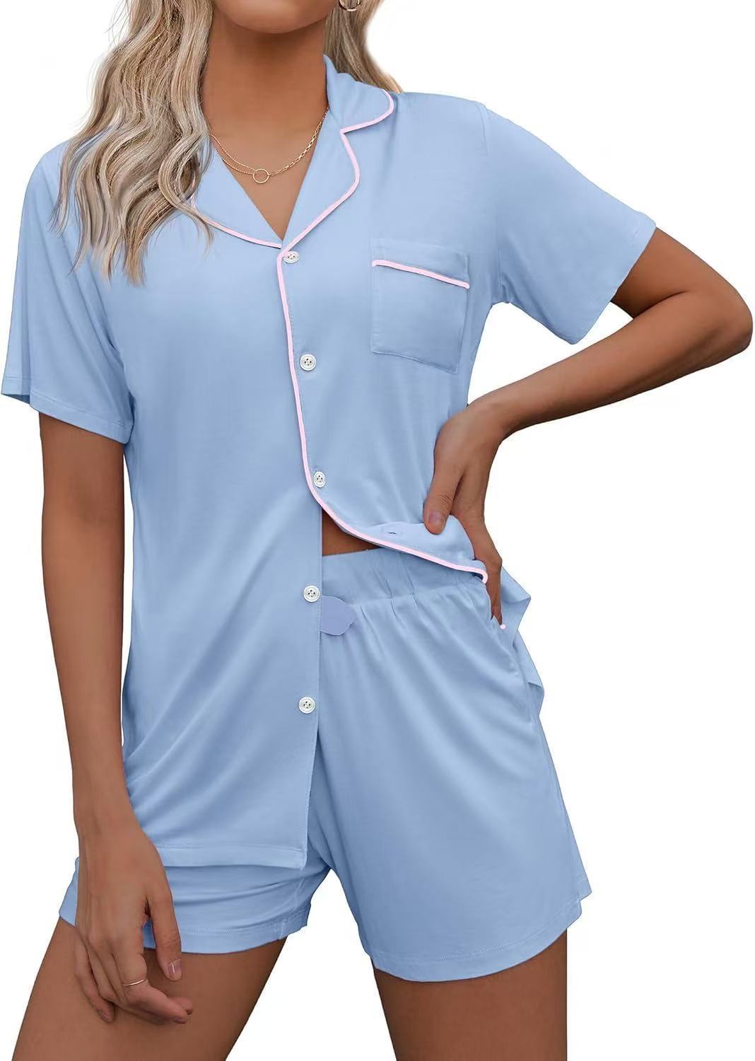 유럽 및 미국 여성용 크로스보더 잠옷 세트 반팔 잠옷 가디건 버튼형 잠옷 투피스 세트 공장 직송 시원함스토어 가기