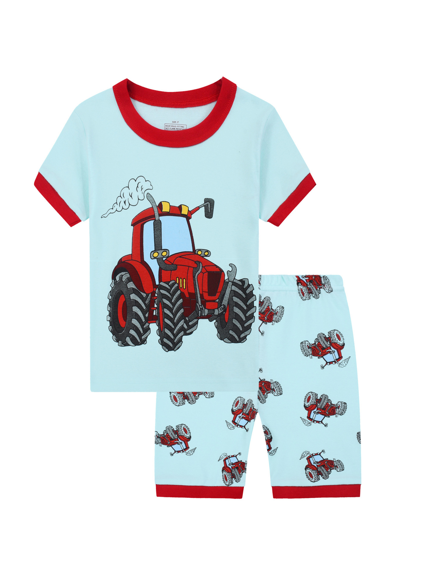 유럽과 미국의 아동복 홈 의류 파자마 소년 소녀 반팔 반바지 만화 자동차 어린이 여름 크로스스토어 가기