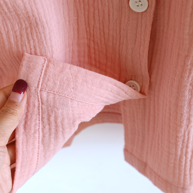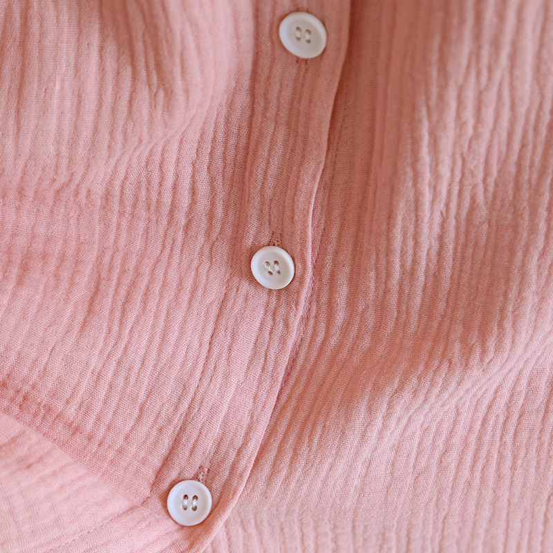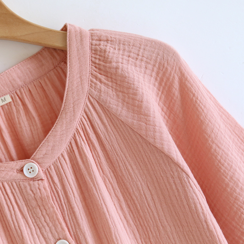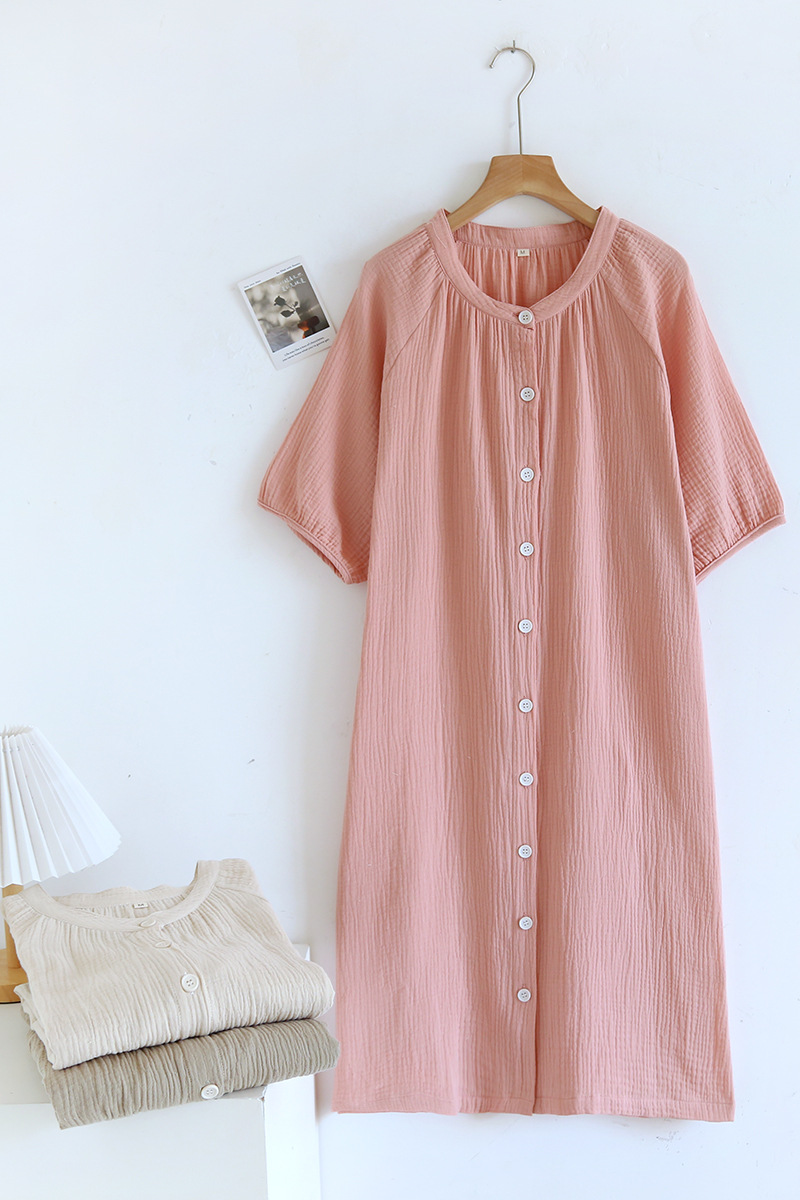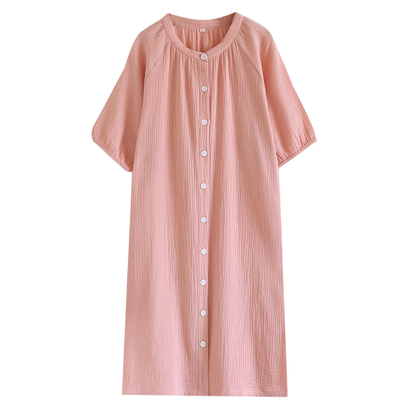 日系绉布纯棉睡裙女宽松家居服夏季薄款双层纱布家居裙开衫长裙