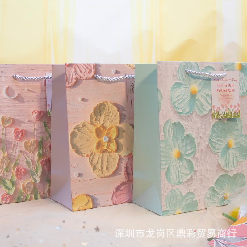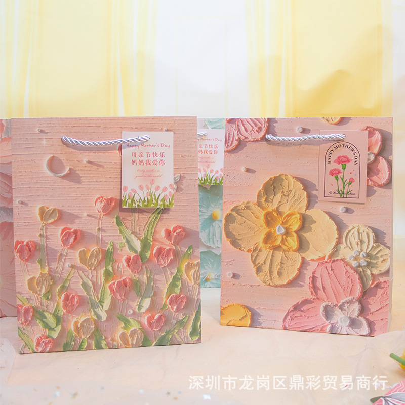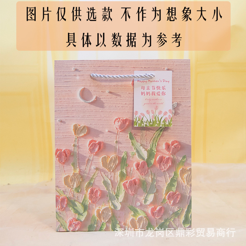 어머니의 날 고급 유화 선물 가방 튤립 꽃 축제 절묘한 포장 가방 현장 도매 휴대용 종이 가방스토어 가기
