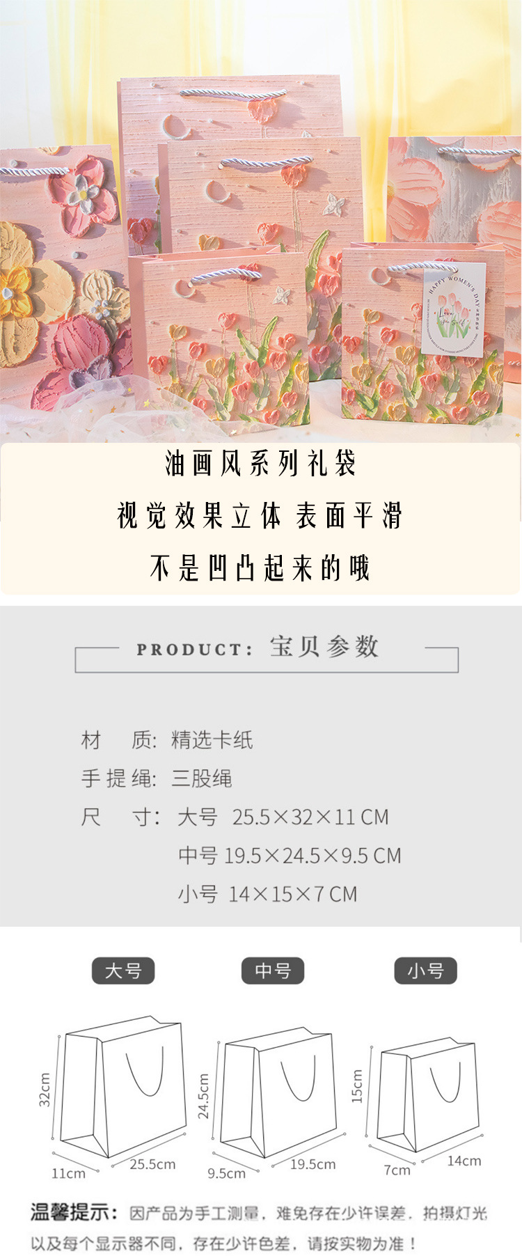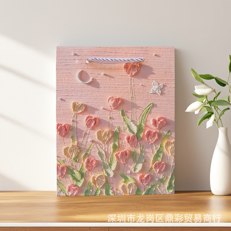 • 튤립 꽃-유화 선물 가방, 흰색 판지, 중간 크기 195*95*245mm