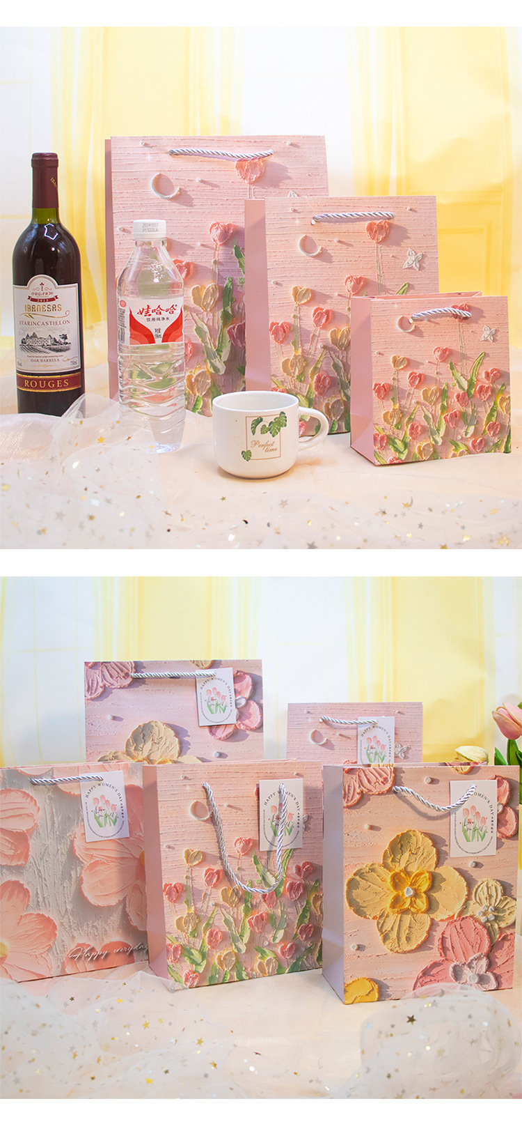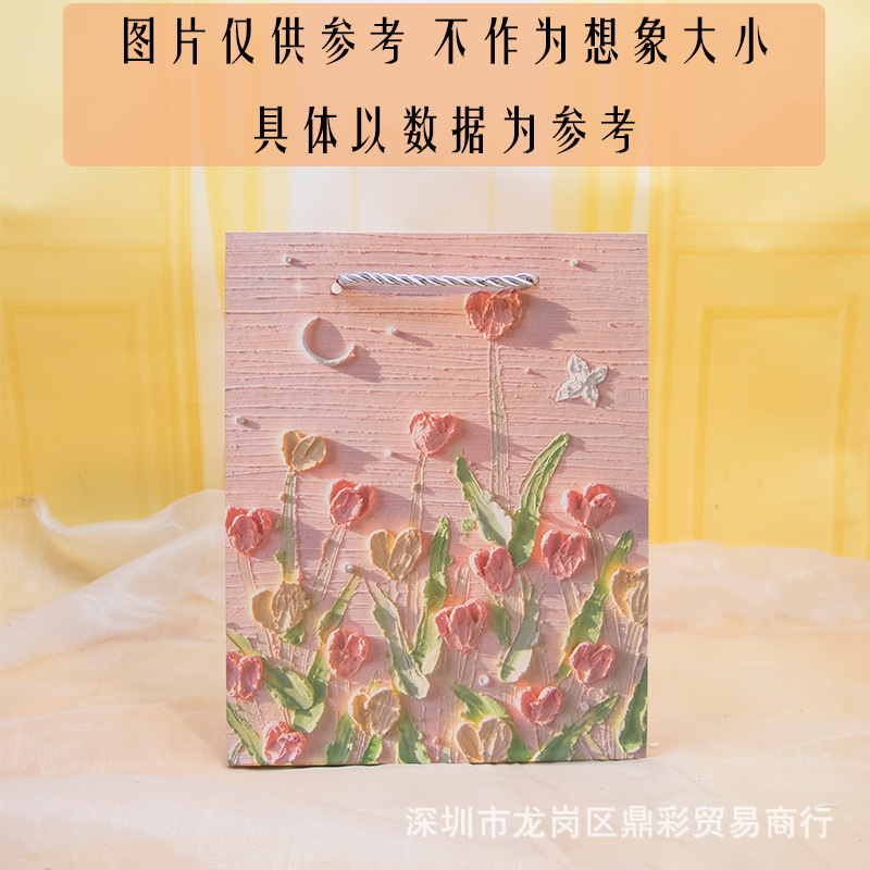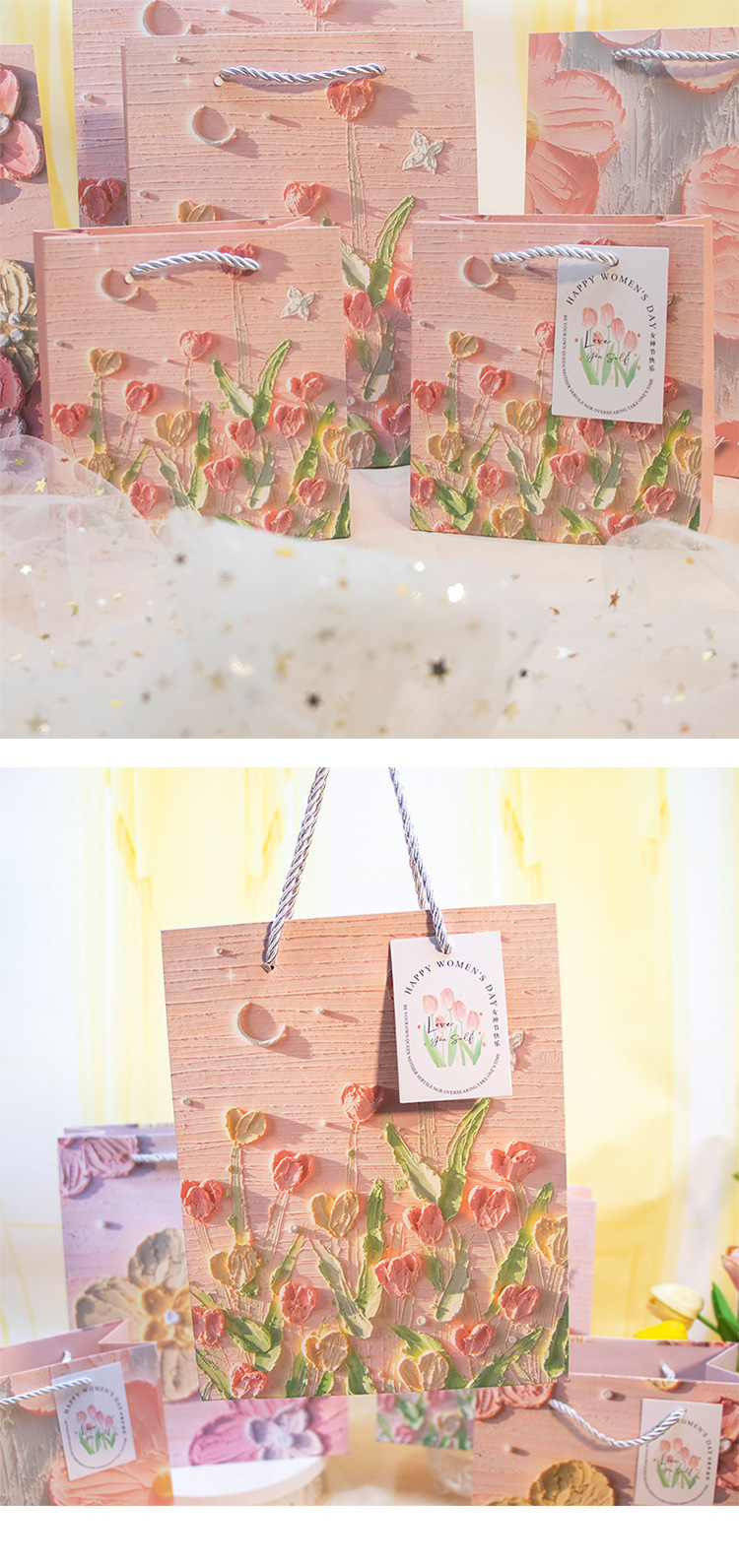 어머니의 날 고급 유화 선물 가방 튤립 꽃 축제 절묘한 포장 가방 현장 도매 휴대용 종이 가방