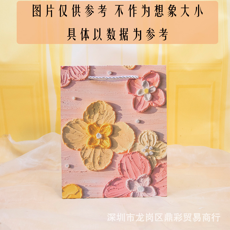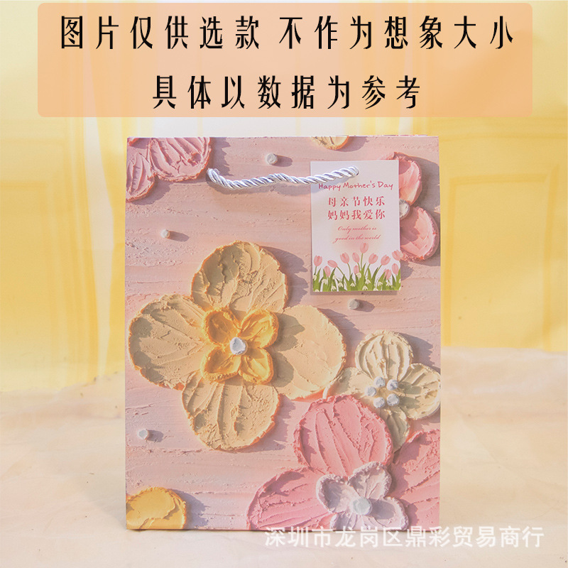 • 사랑스러운 핑크 꽃 - 유화 선물 가방 + 어머니날 태그, 흰색 판지, 작은 크기 길이 140*70*높이 150mm