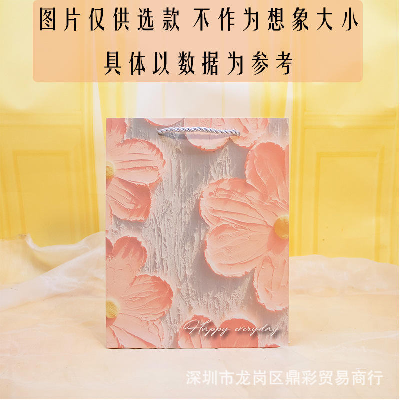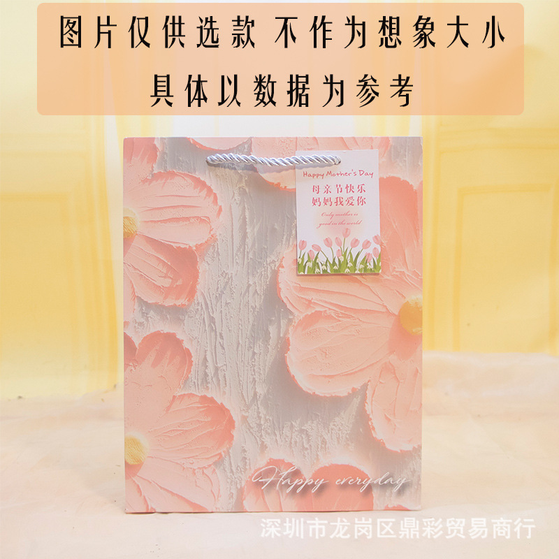 • 사랑스러운 핑크 꽃 - 유화 선물 가방 + 어머니날 태그, 흰색 판지, 중간 크기 195*95*245mm