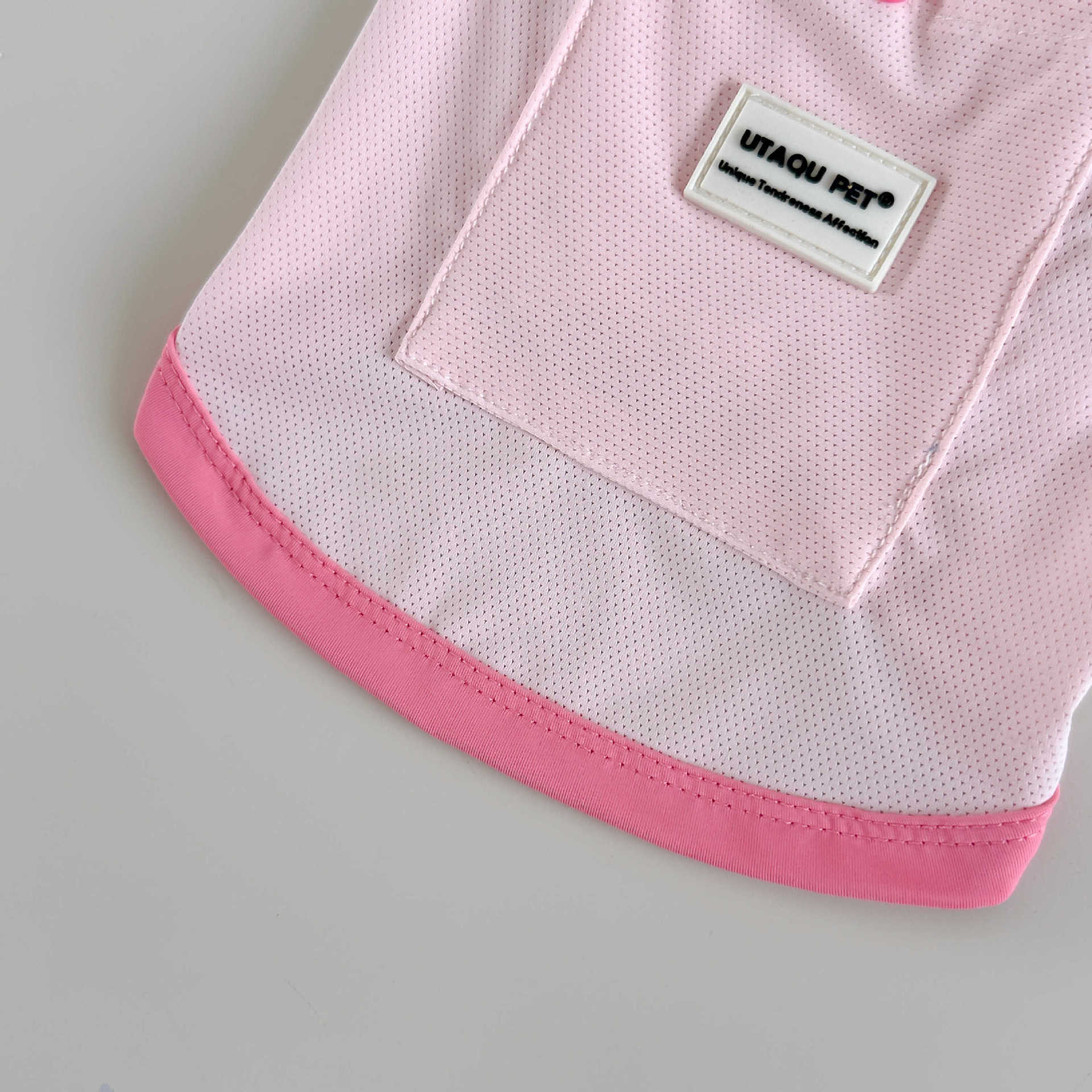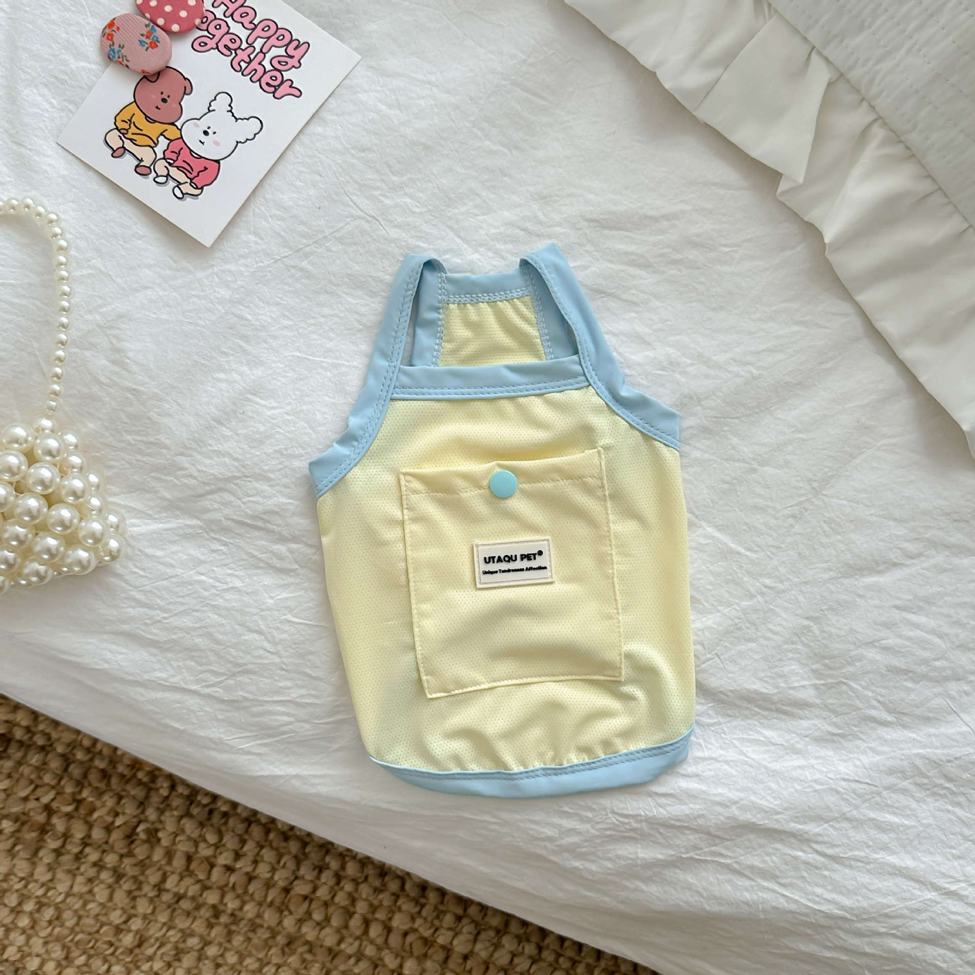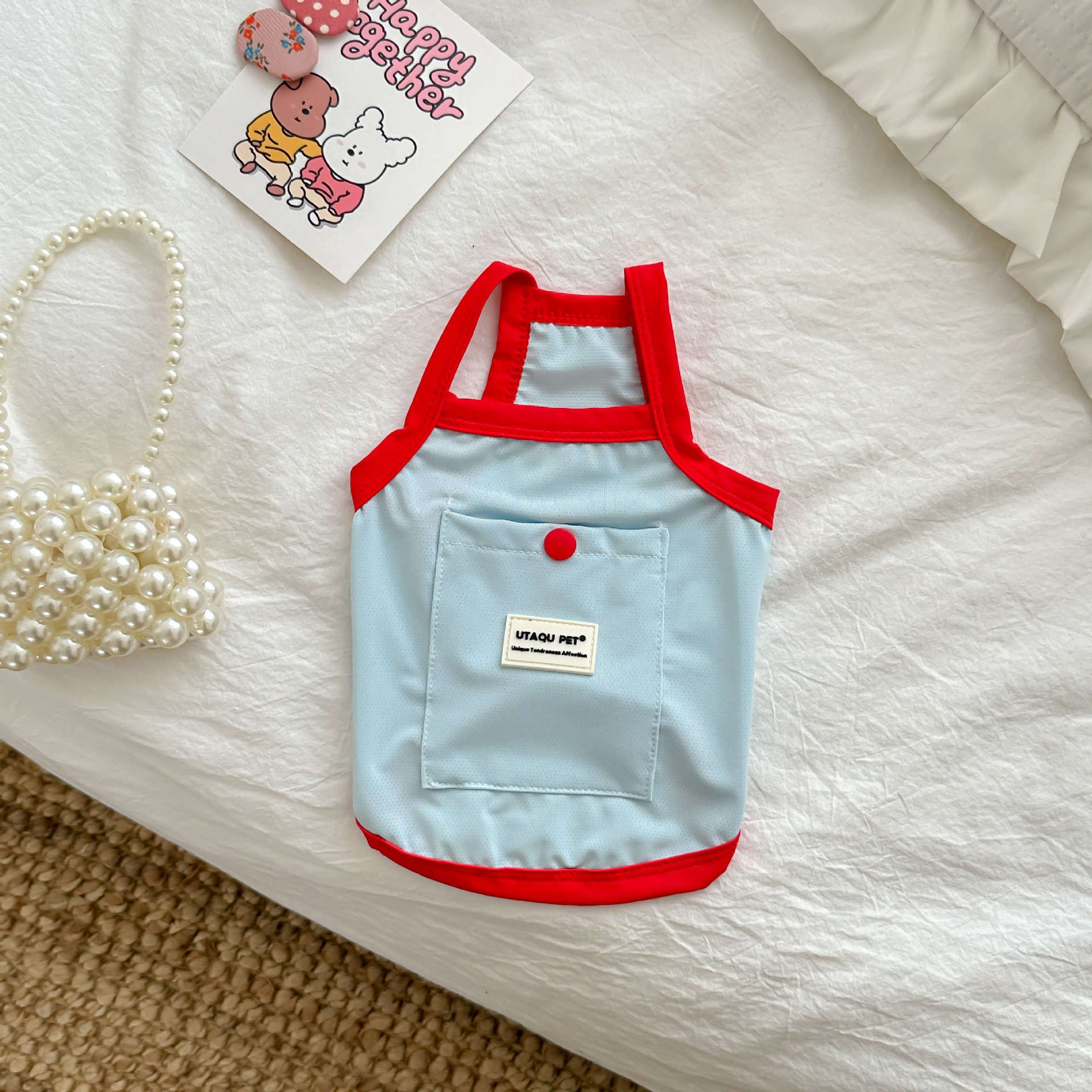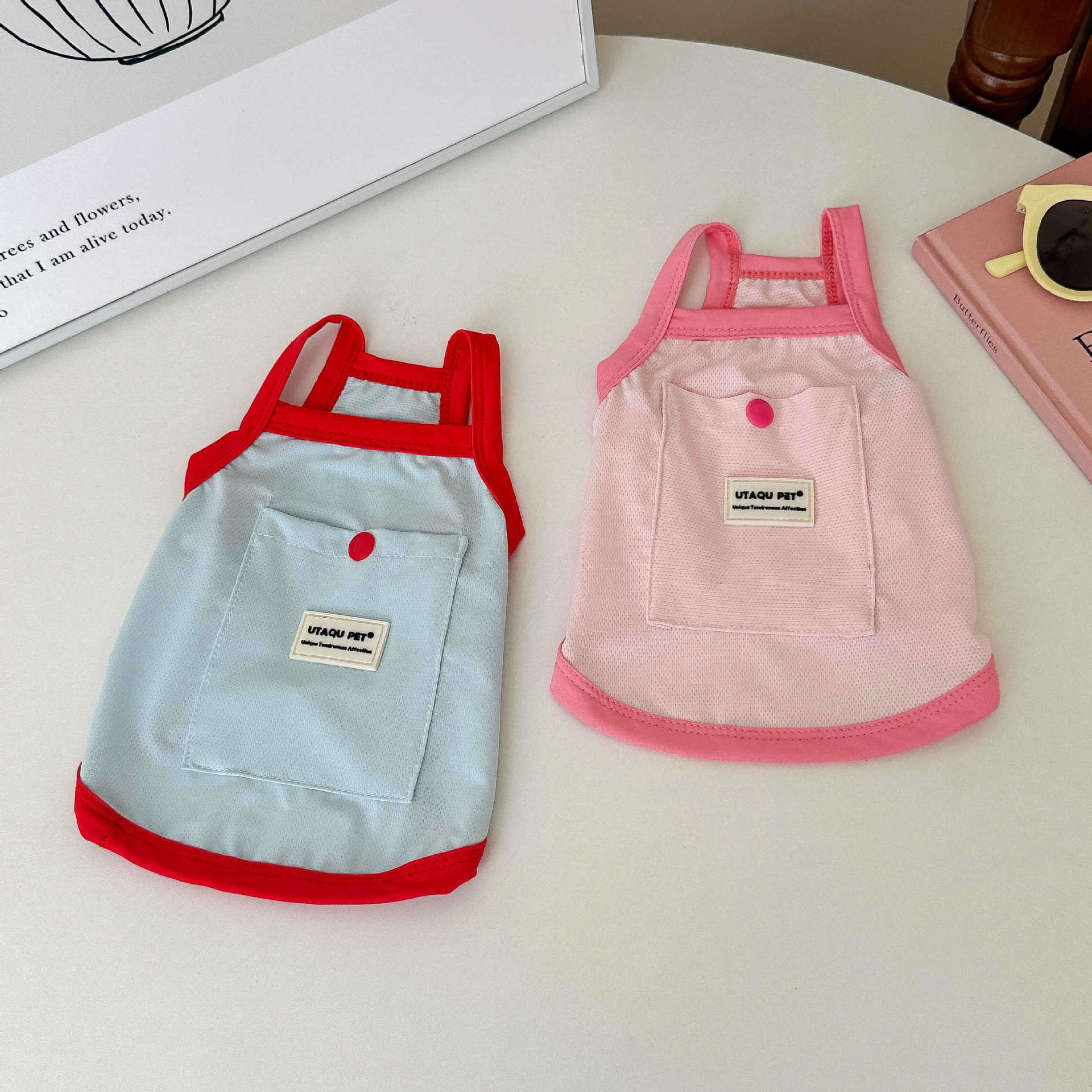 선 스크린 냉각 블루 컬러 블록 네 다리 외출 옷 작은 개와 고양이 여름 얇은 통기성 애완견 옷스토어 가기