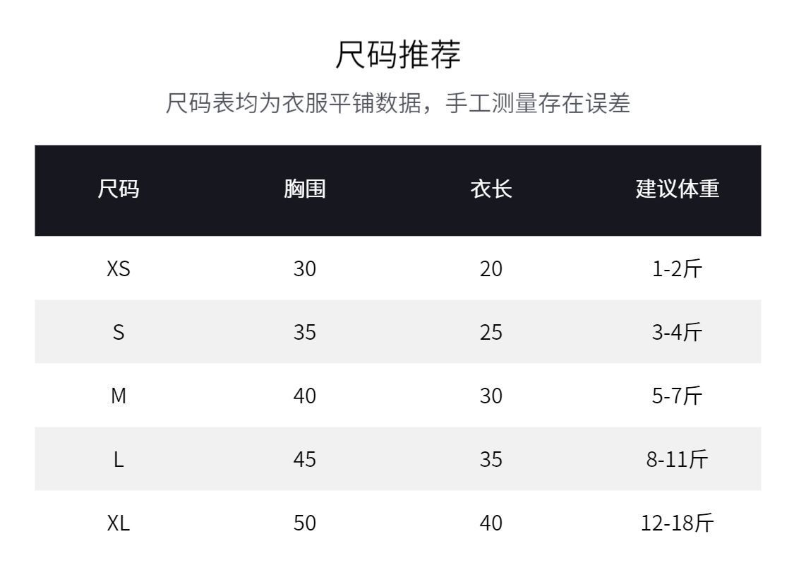• XS 등기장 20, 가슴둘레 30, 추천 0.5-1.0kg