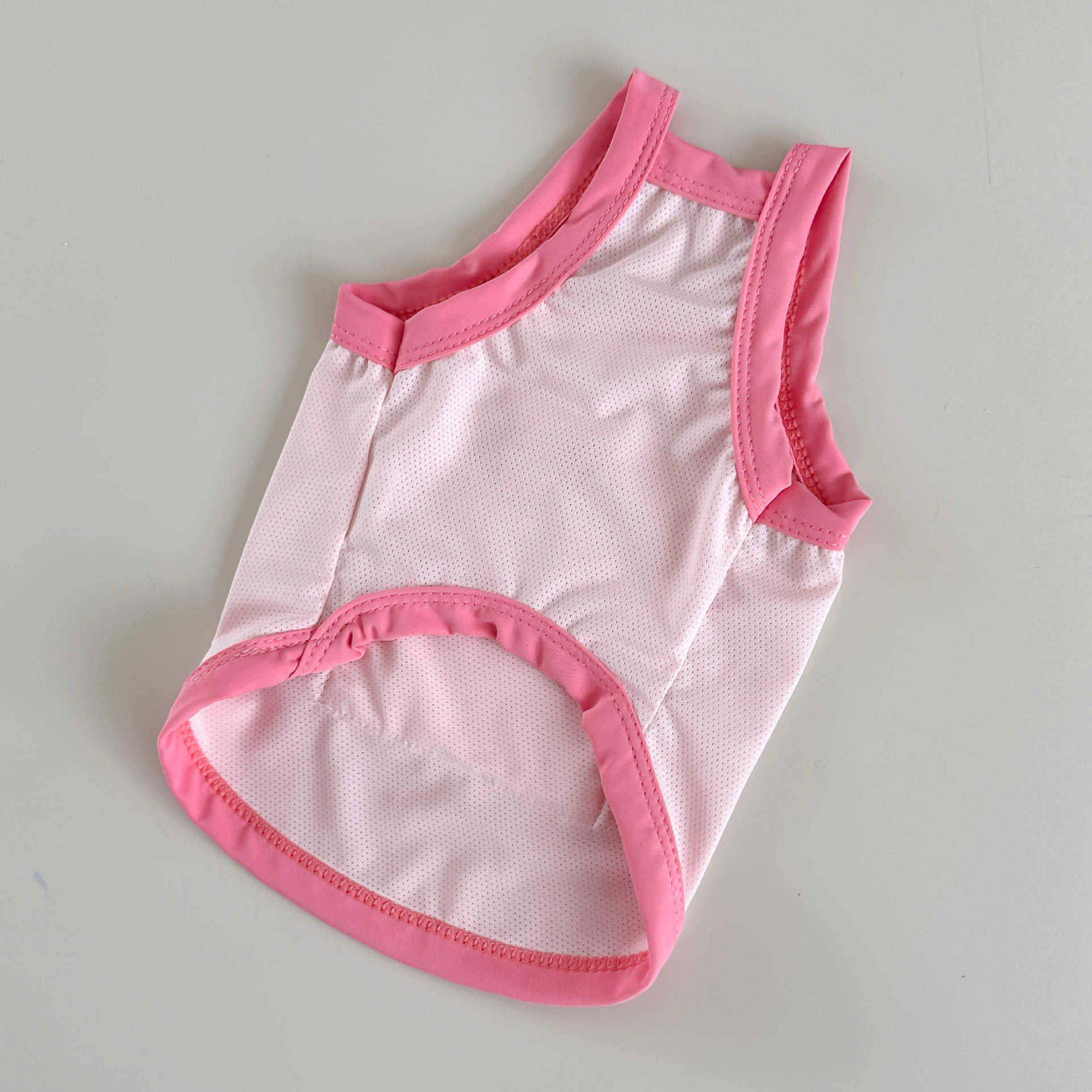 선 스크린 냉각 블루 컬러 블록 네 다리 외출 옷 작은 개와 고양이 여름 얇은 통기성 애완견 옷