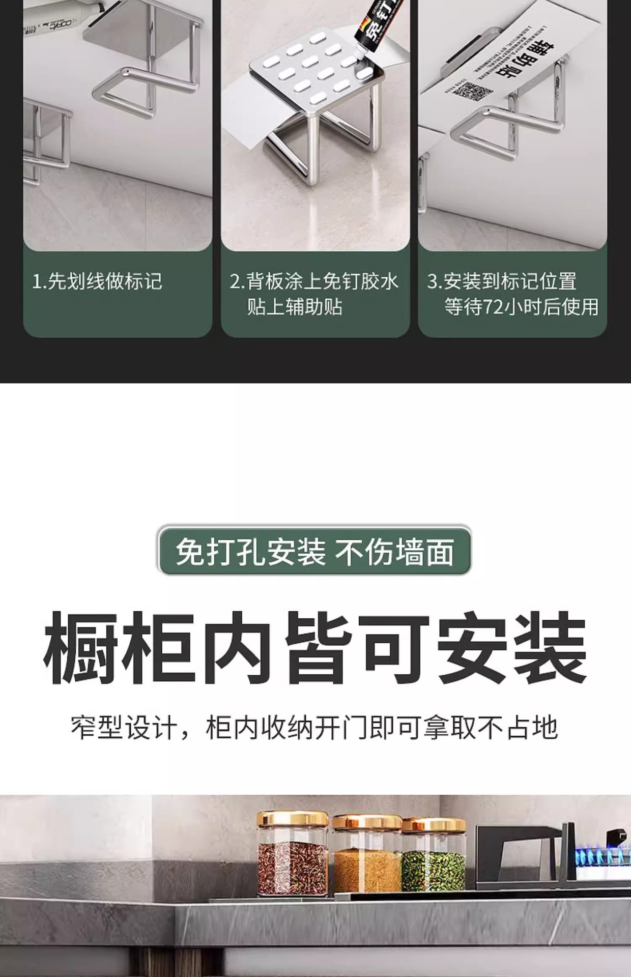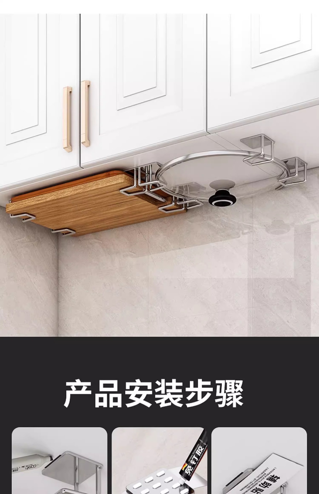 • 밝은 빛●3쌍세트 [도마와 냄비뚜껑 수납] 네일프리 접착제 포함