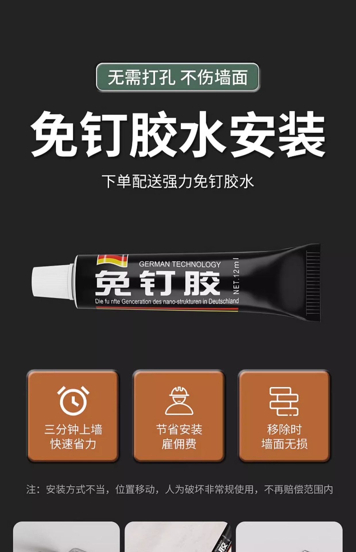 • 밝은 빛●1쌍[도마 및 냄비뚜껑 보관] 네일프리 접착제 포함