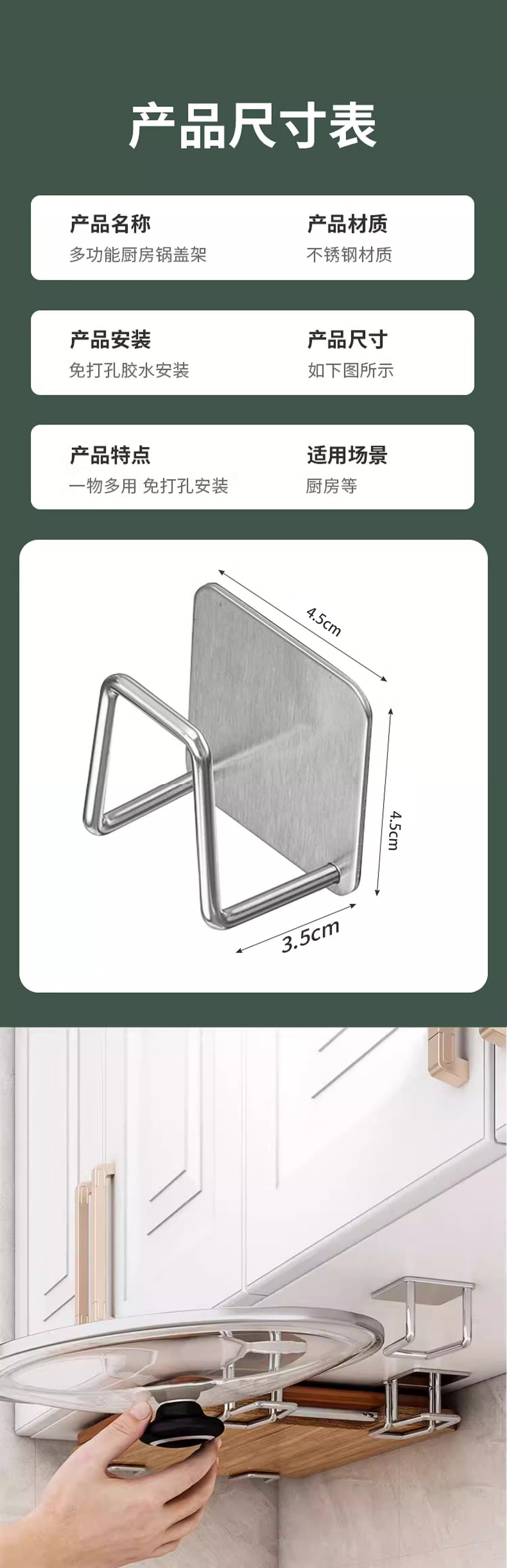 • 야헤이●4쌍 세트 [도마 및 냄비 뚜껑 보관] 무료 네일 접착제 포함