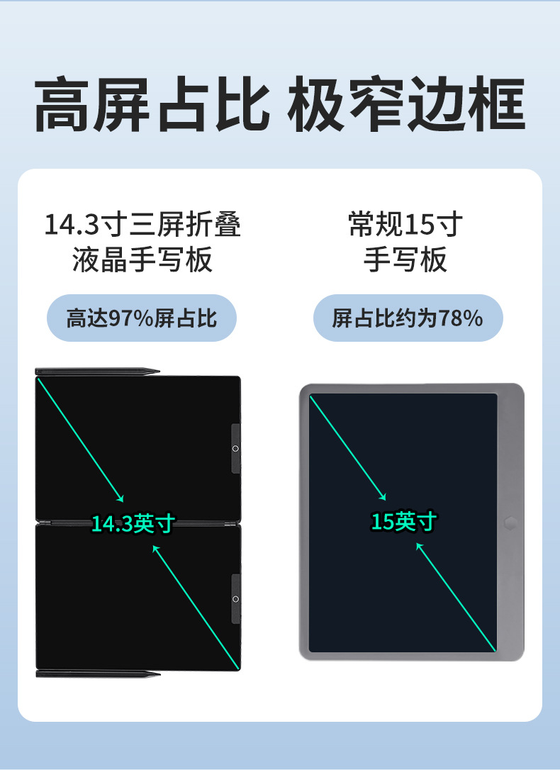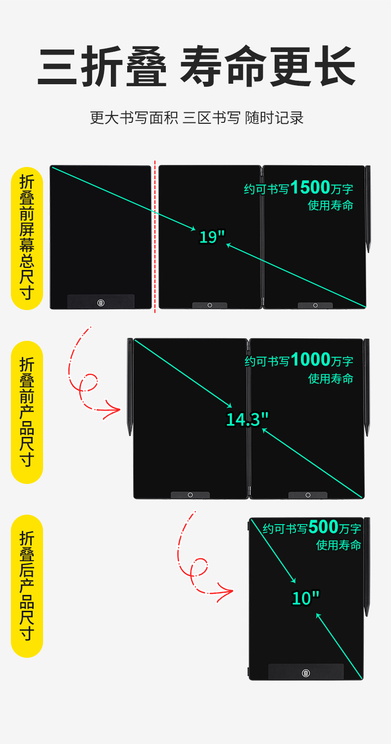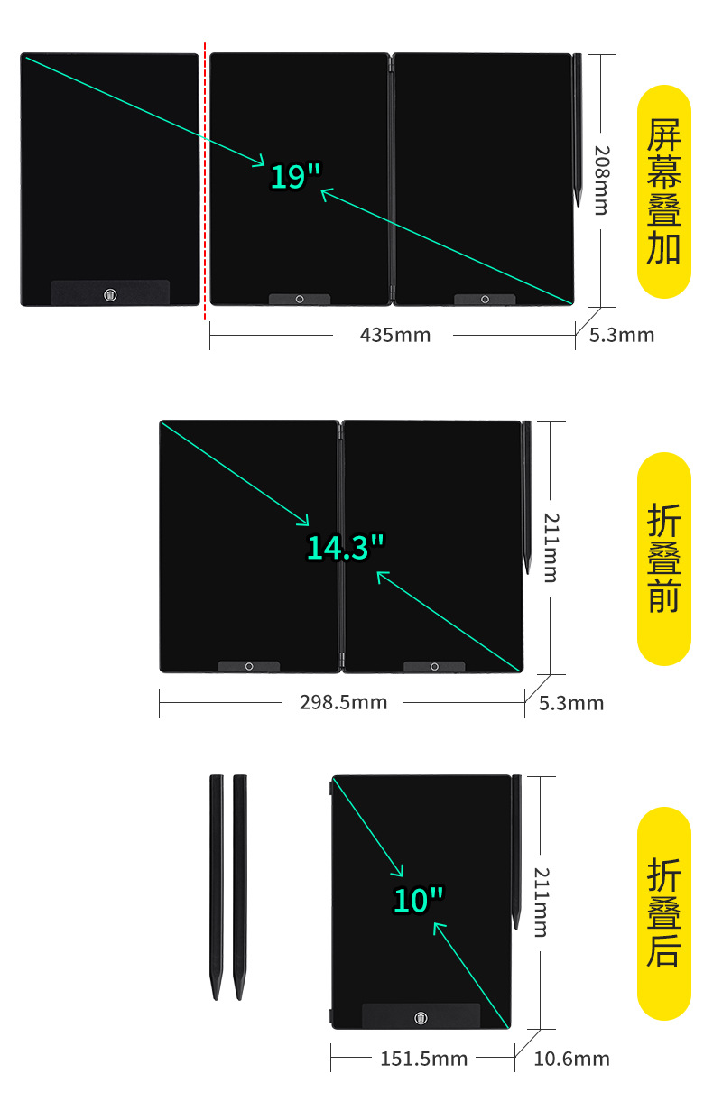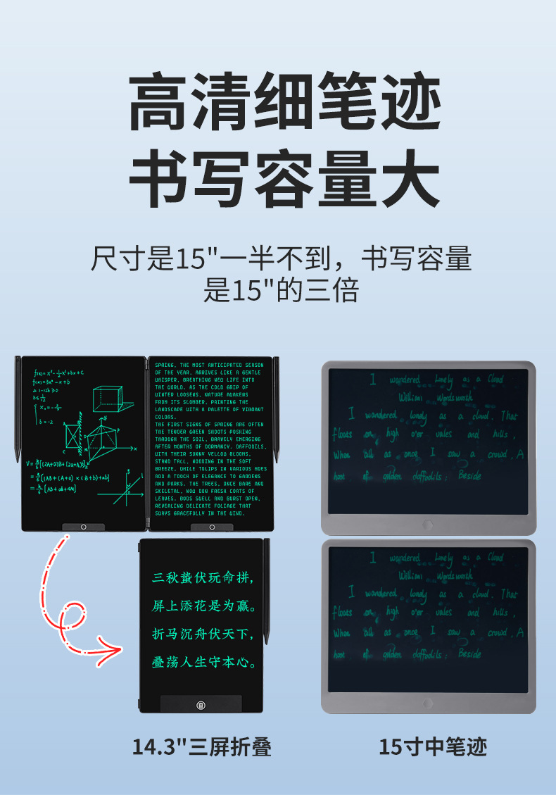 14.3인치 접이식 3화면 미세 필기 LCD 필기판 전자칠판 사무용 전자 화면 칠판스토어 가기