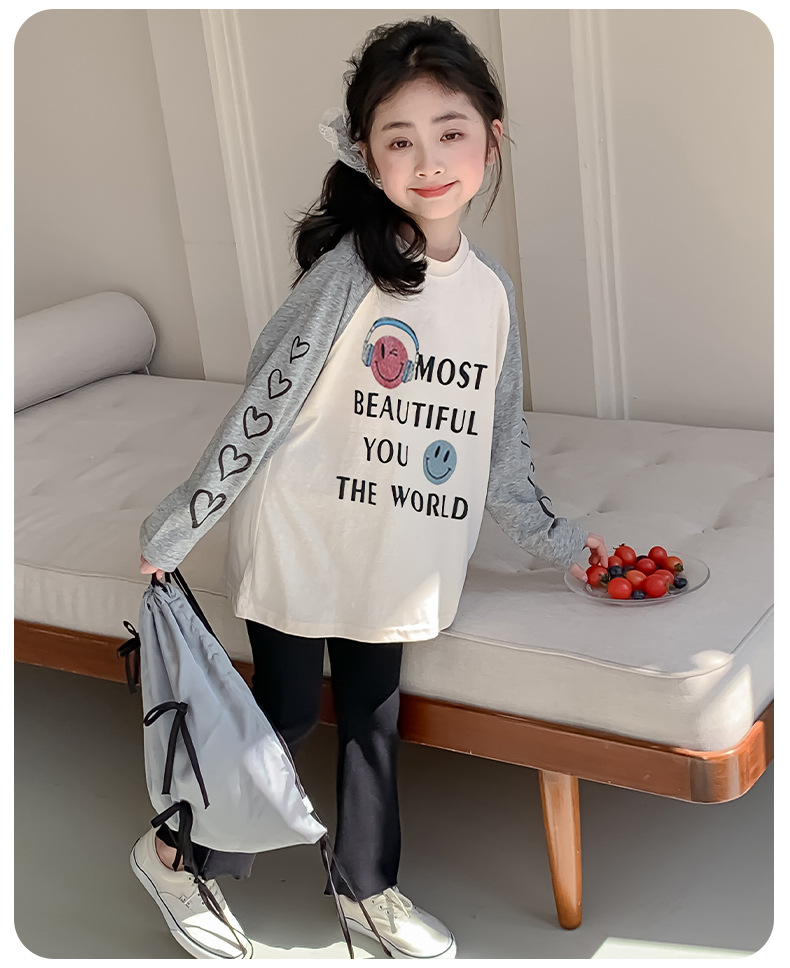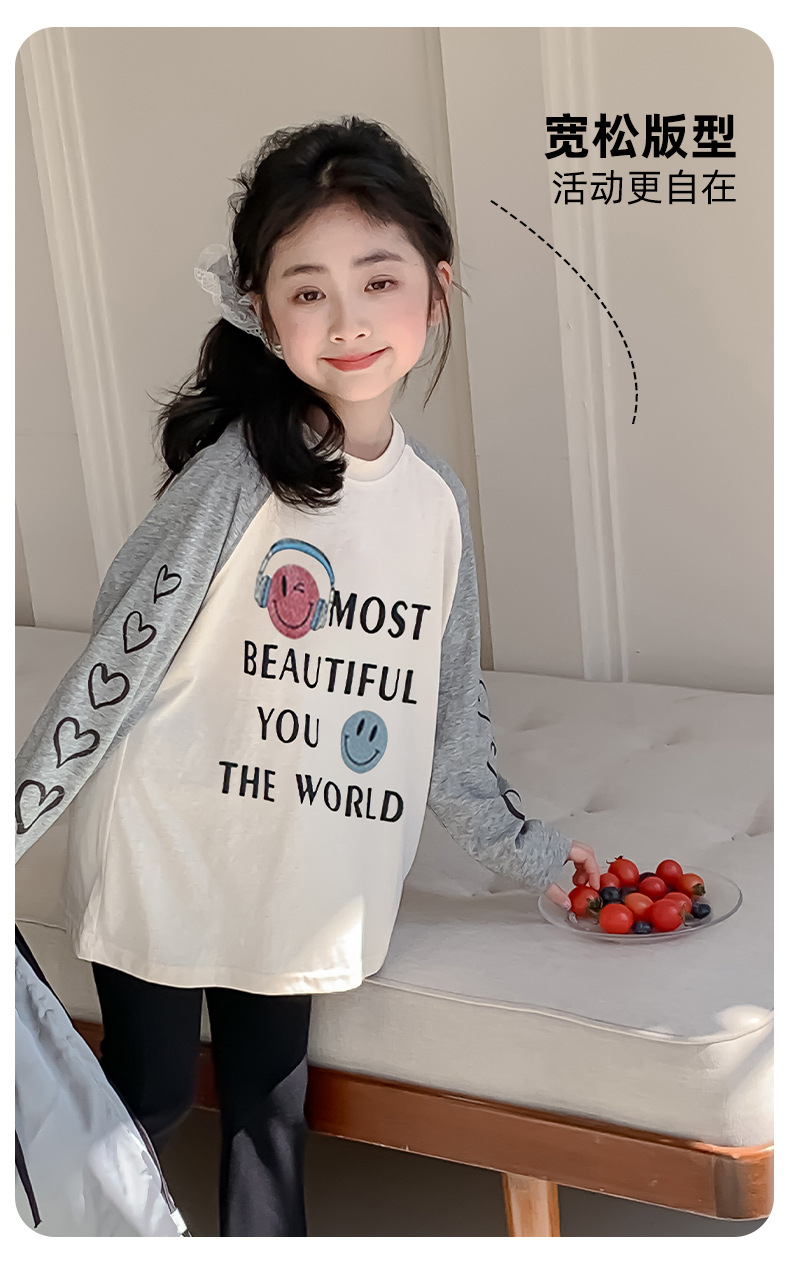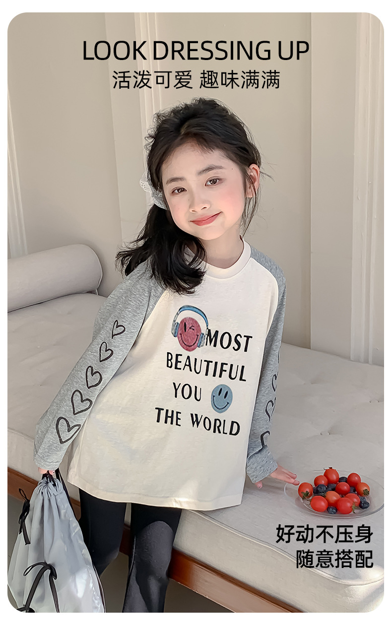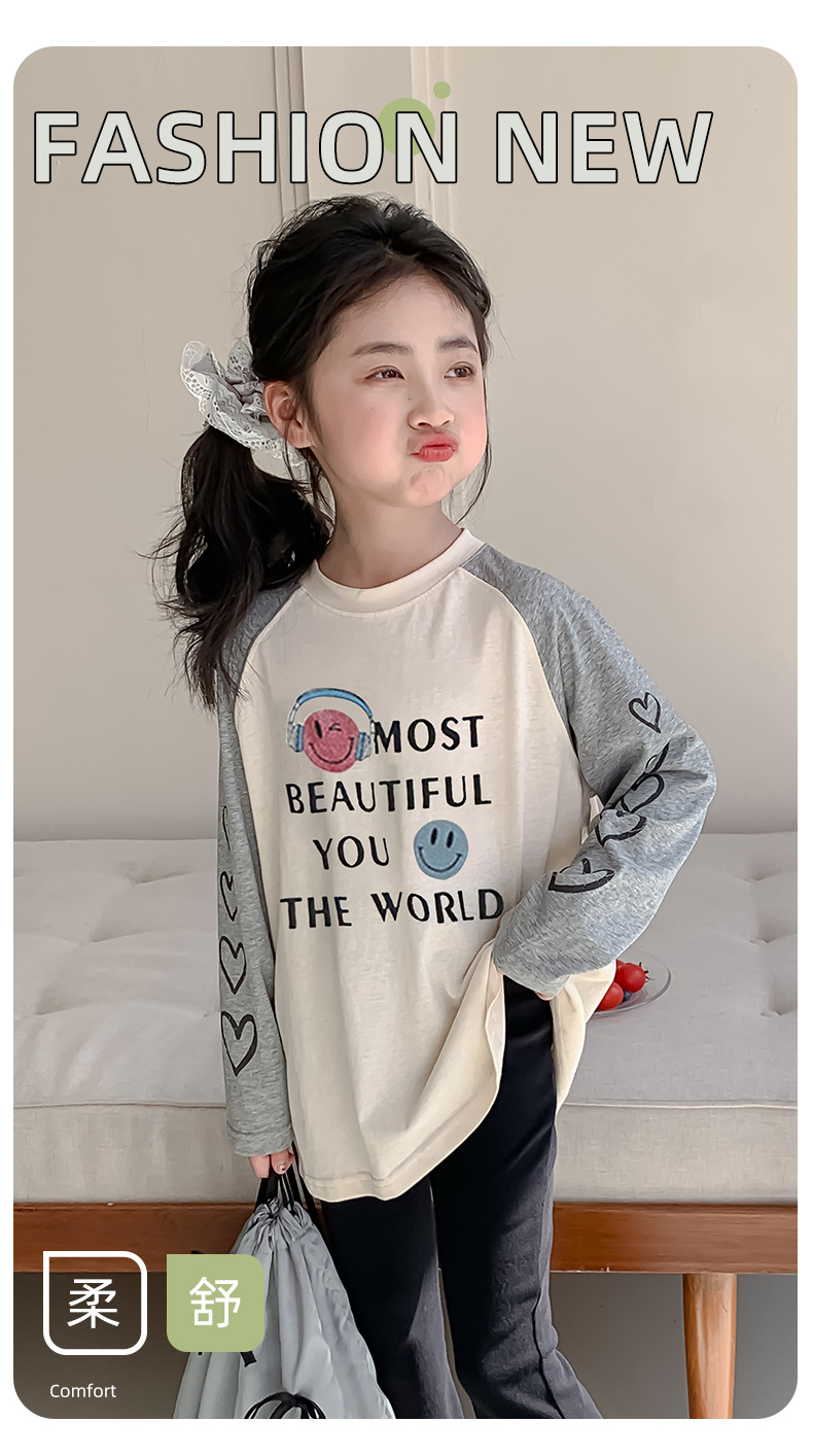 소녀 봄 긴팔 티셔츠 2025 큰 어린이 새 한국 편지 인쇄 느슨한 아동면 티셔츠 도매스토어 가기