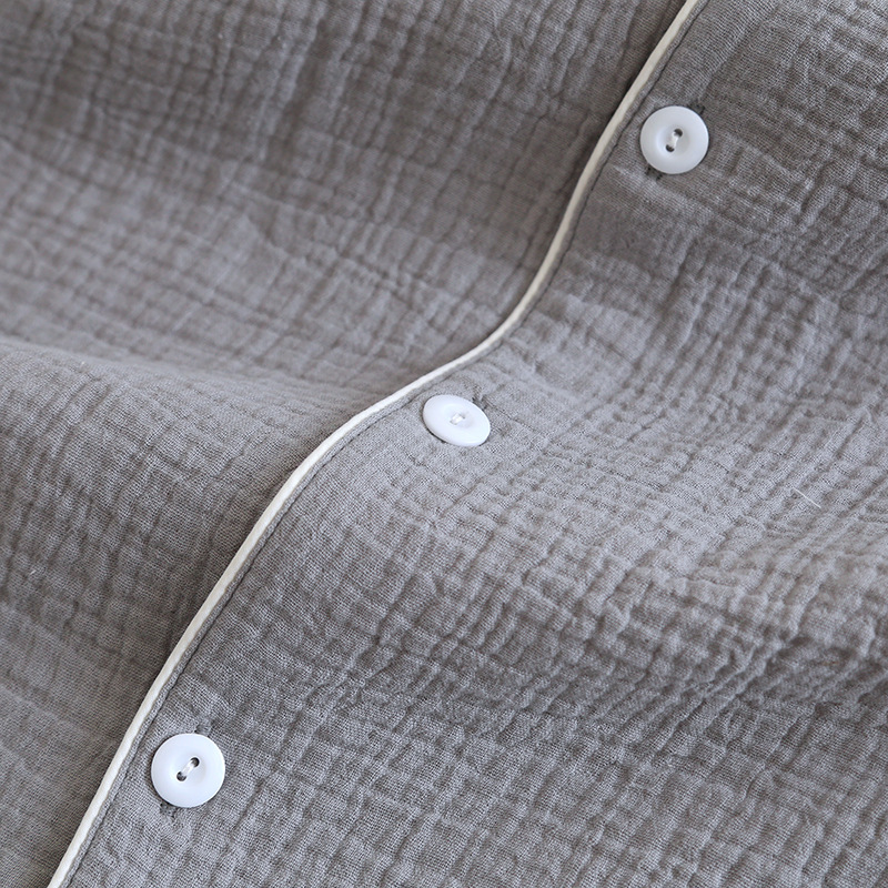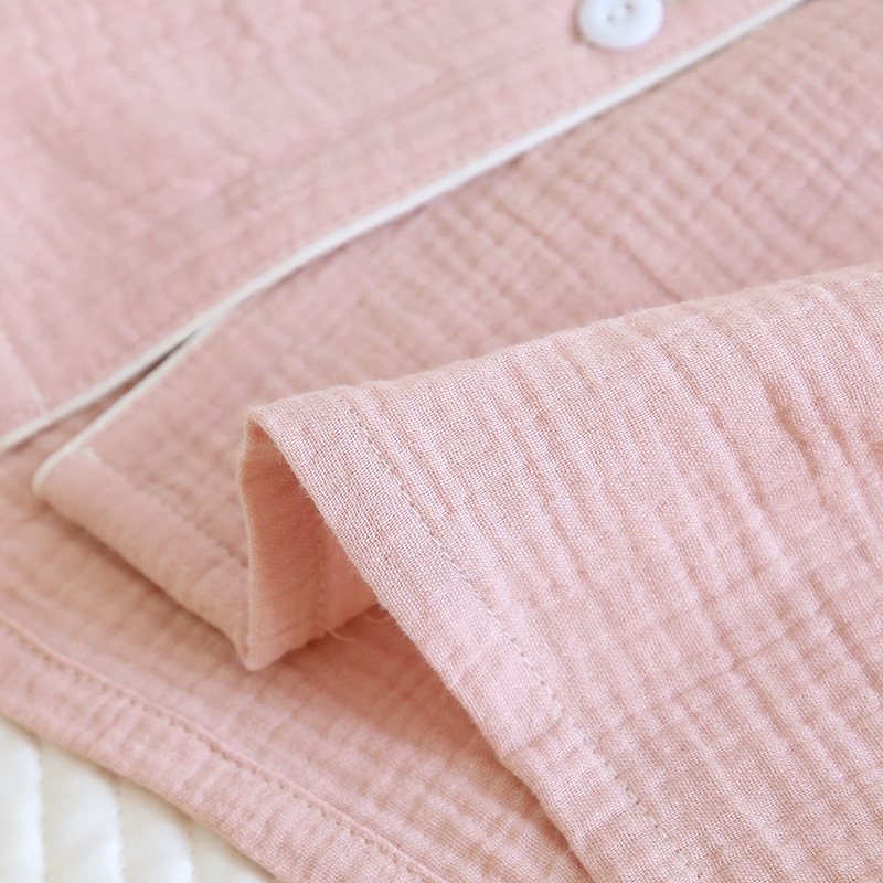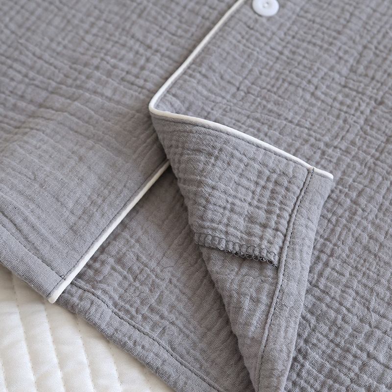 솔리드 컬러 심플 스타일 커플 크레페 순수 코튼 잠옷 여성과 남성 봄, 가을 여름 순수 코튼 더블 레이어 거즈 홈 투피스 세트